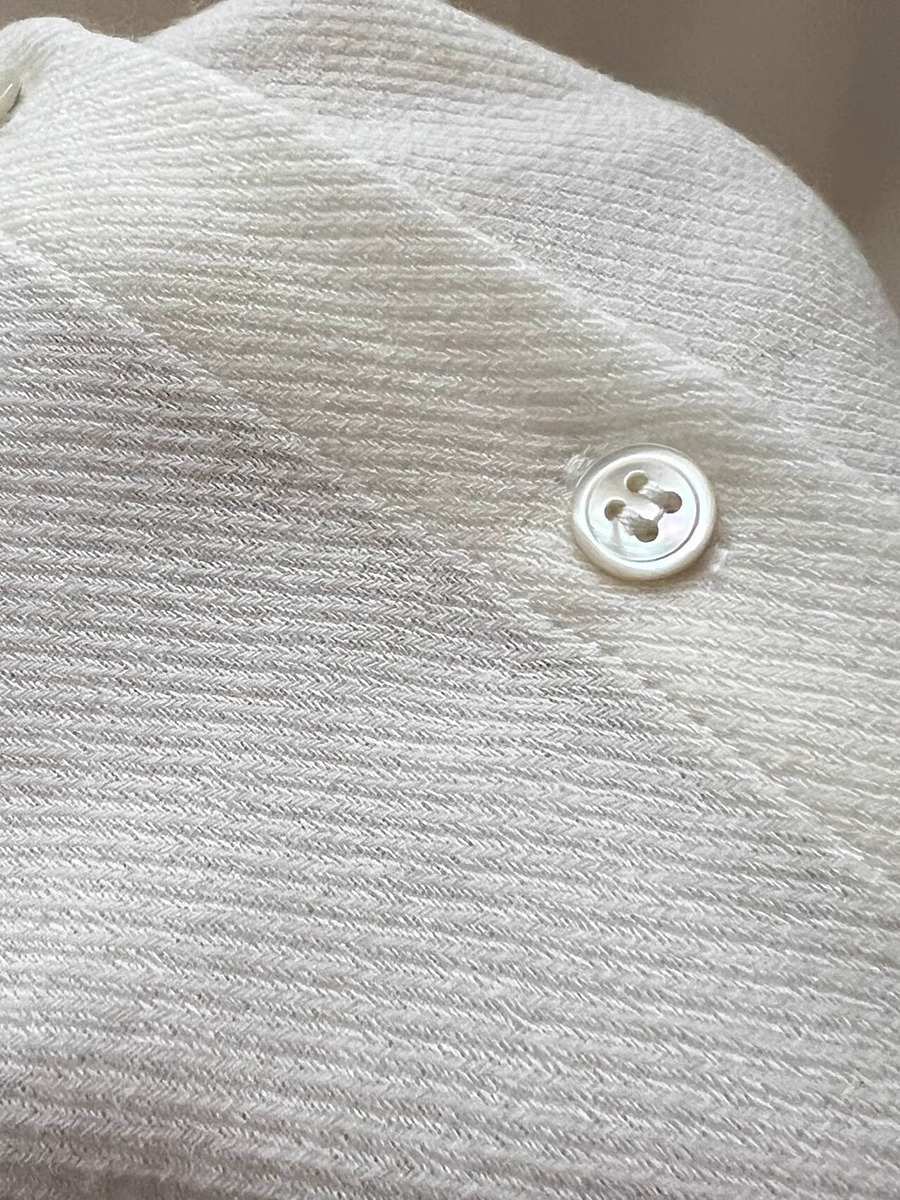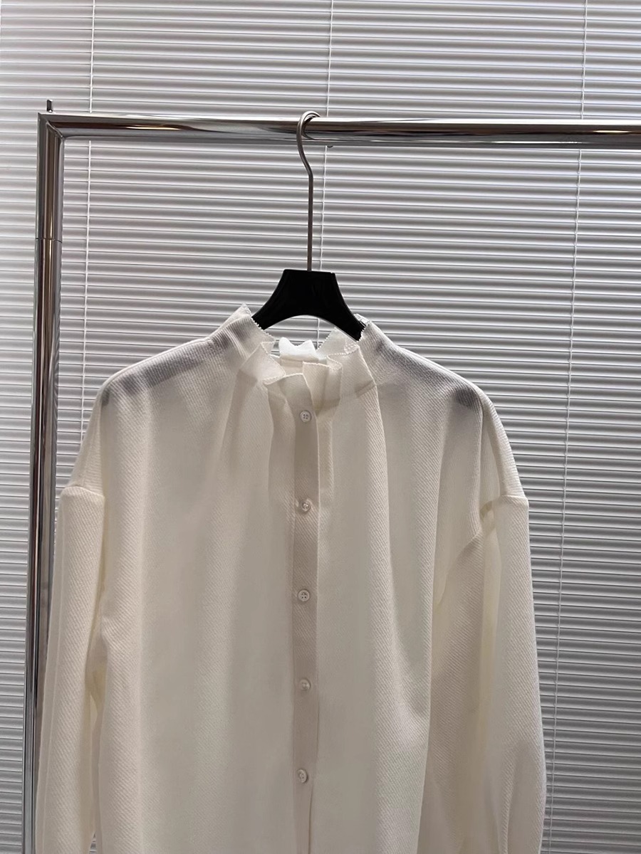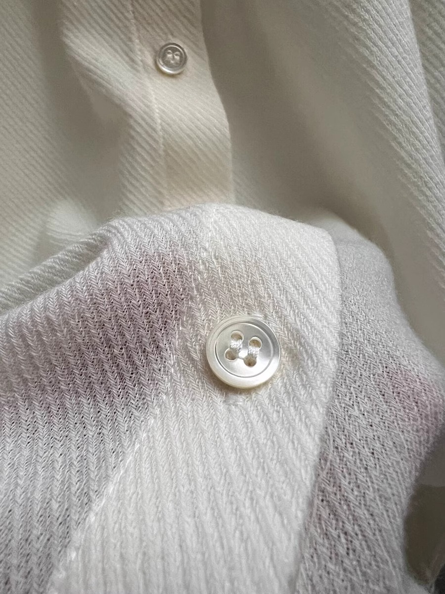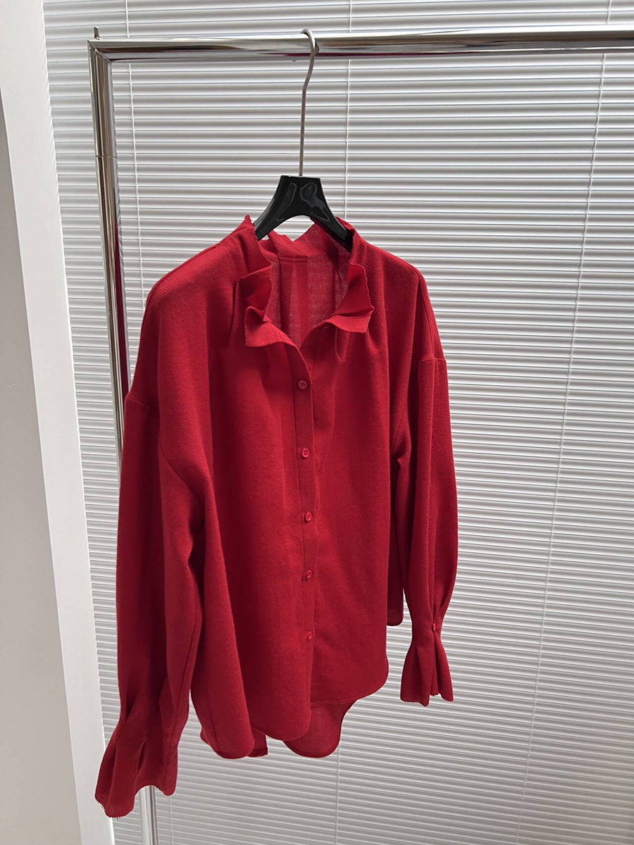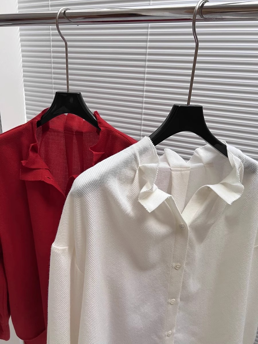 재고 25 년 동안 프랑스 부드러운 피부 친화적 인 양모 회전 3 차원 주름 꽃잎 칼라 진주 버클 셔츠