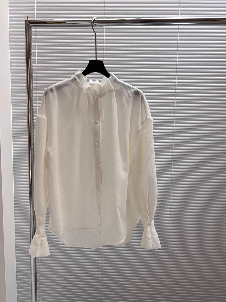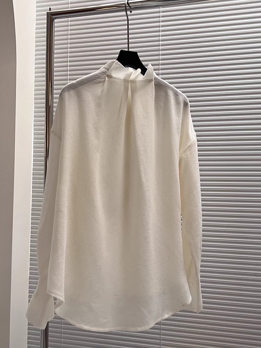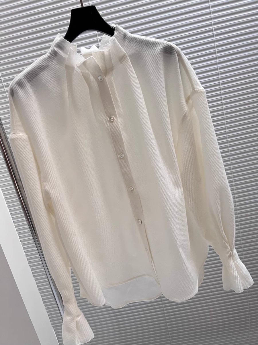 재고 25 년 동안 프랑스 부드러운 피부 친화적 인 양모 회전 3 차원 주름 꽃잎 칼라 진주 버클 셔츠스토어 가기