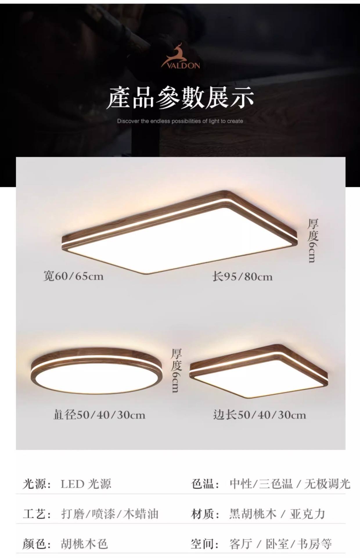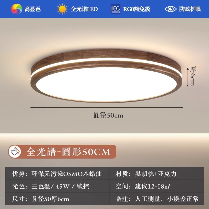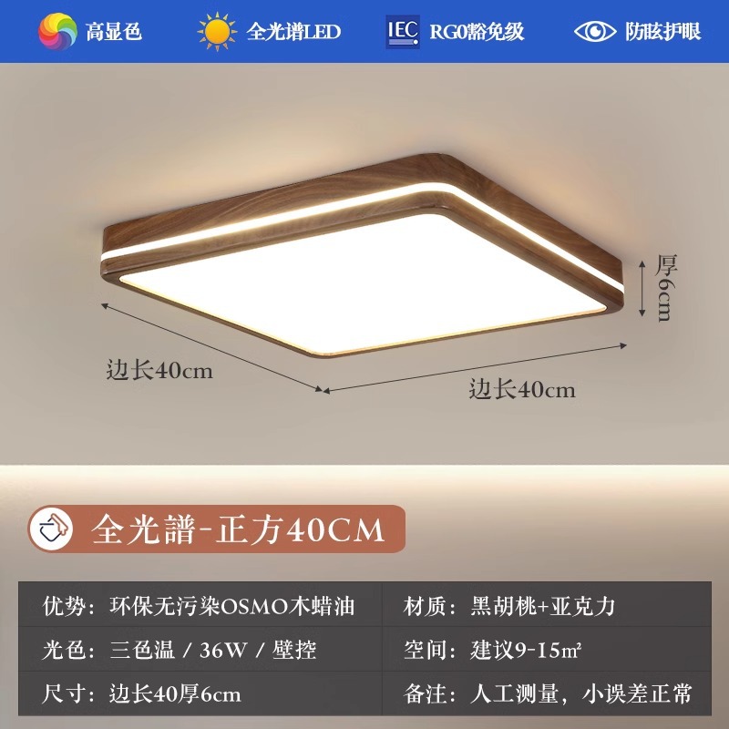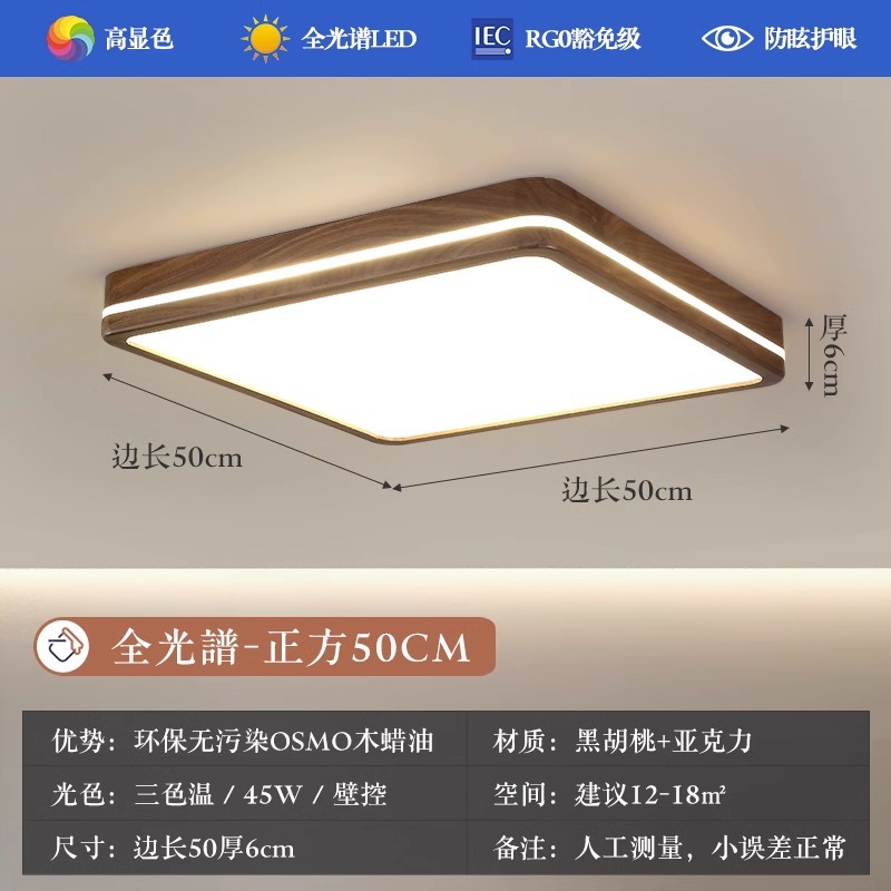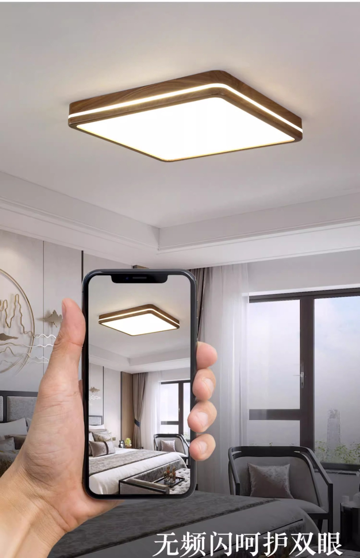거실 램프 간단한 직사각형 홀 램프 전체 스펙트럼 중국 눈 보호 램프 호두 침실 램프 단단한 나무 천장 램프스토어 가기