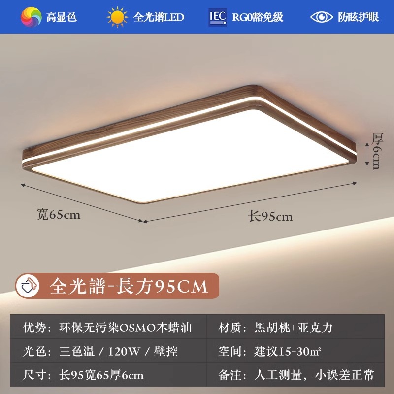 거실 램프 간단한 직사각형 홀 램프 전체 스펙트럼 중국 눈 보호 램프 호두 침실 램프 단단한 나무 천장 램프