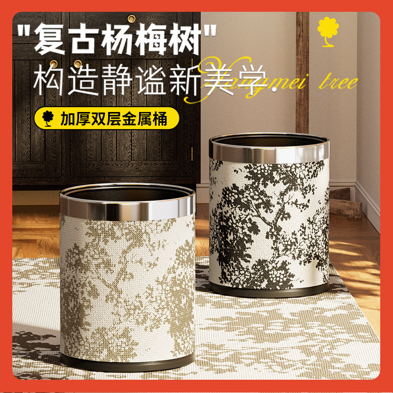 ♂ 새로운 꽃 양메이 나무 가죽 쓰레기통 중국 스타일 대용량 두꺼운 가정용 이중 쓰레기통스토어 가기