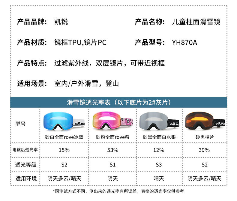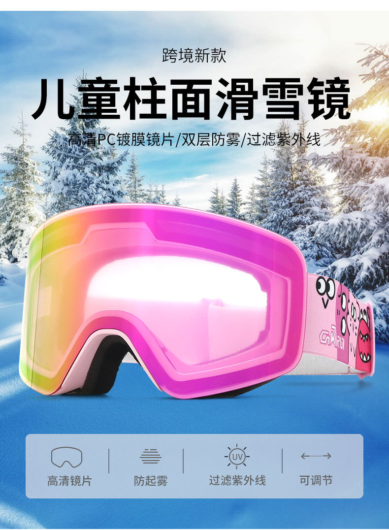 공장 도매 어린이 스키 고글 대형 원통형 양면 안개 방지 5-14 세 스키 고글 야외 장비 사용자 정의