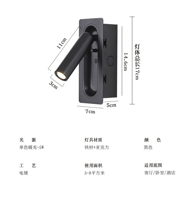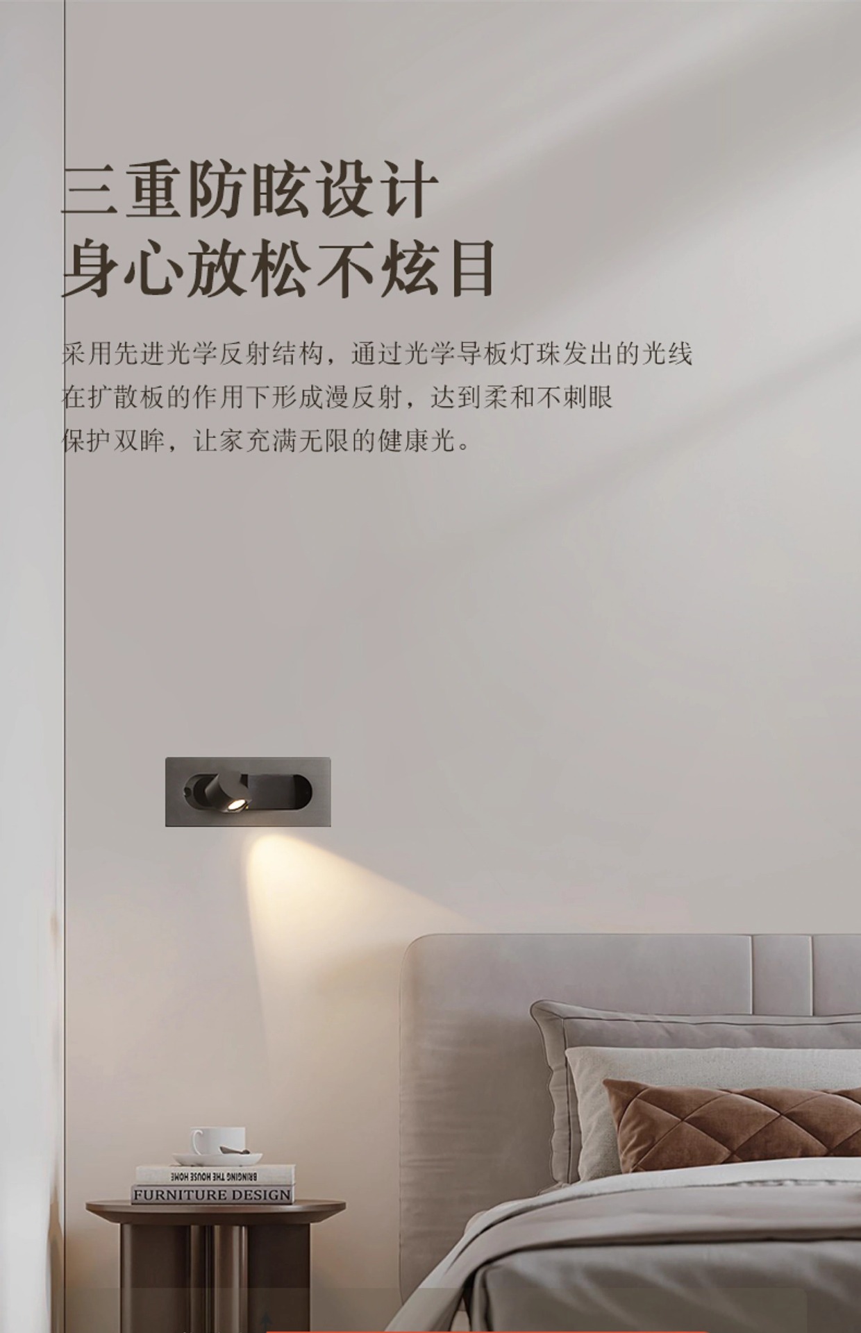 침실 침대 옆 벽 램프 미니멀리스트 거실 소파 임베디드 회전 광원 개인화 된 연구 배경 벽 독서 램프