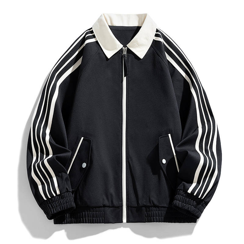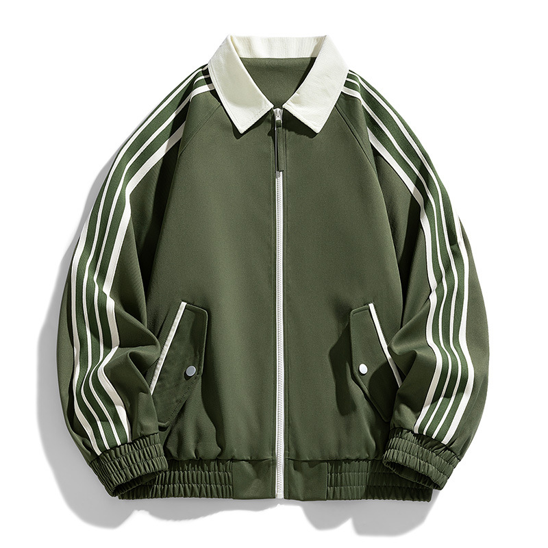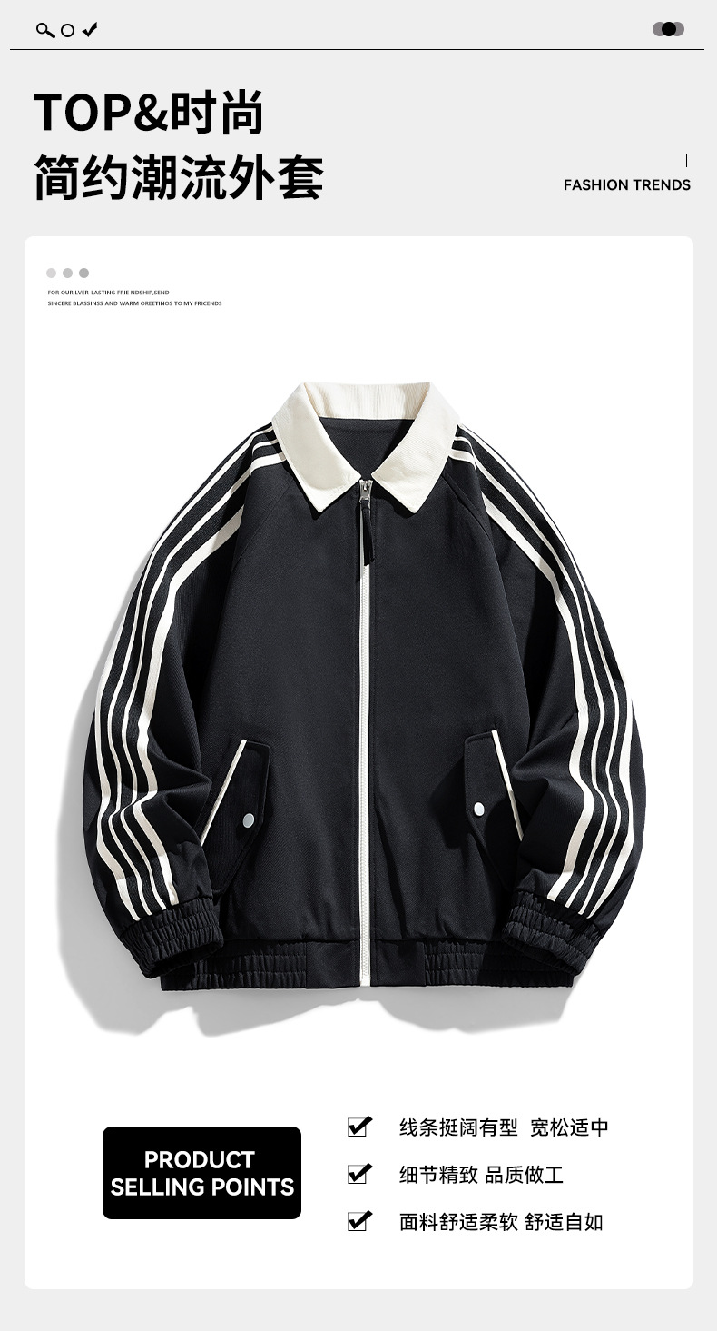 재킷 남자의 봄과 가을 새로운 플러스 비료 플러스 느슨한 스포츠 최고 지방 플러스 사이즈 미국 스트라이프 플록 클립 극복스토어 가기