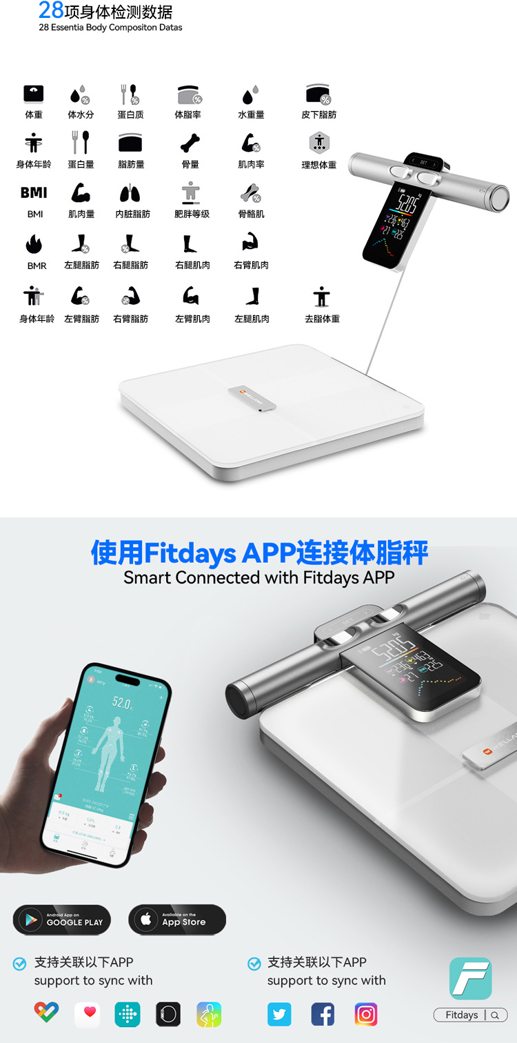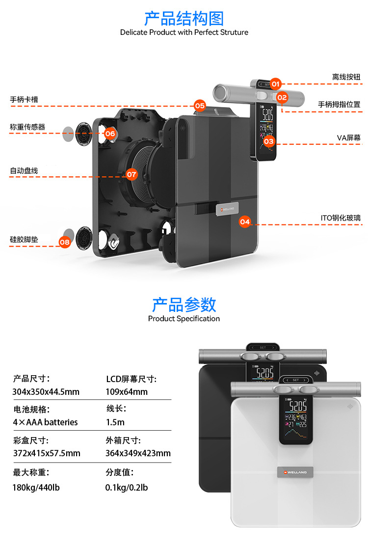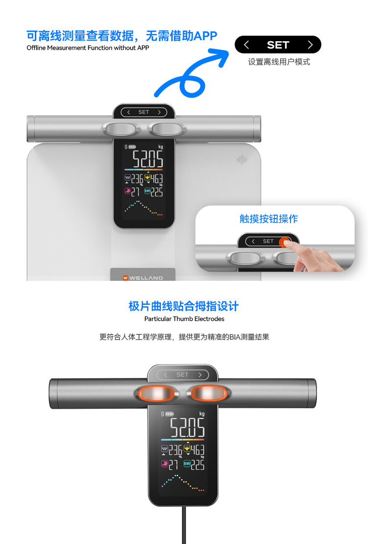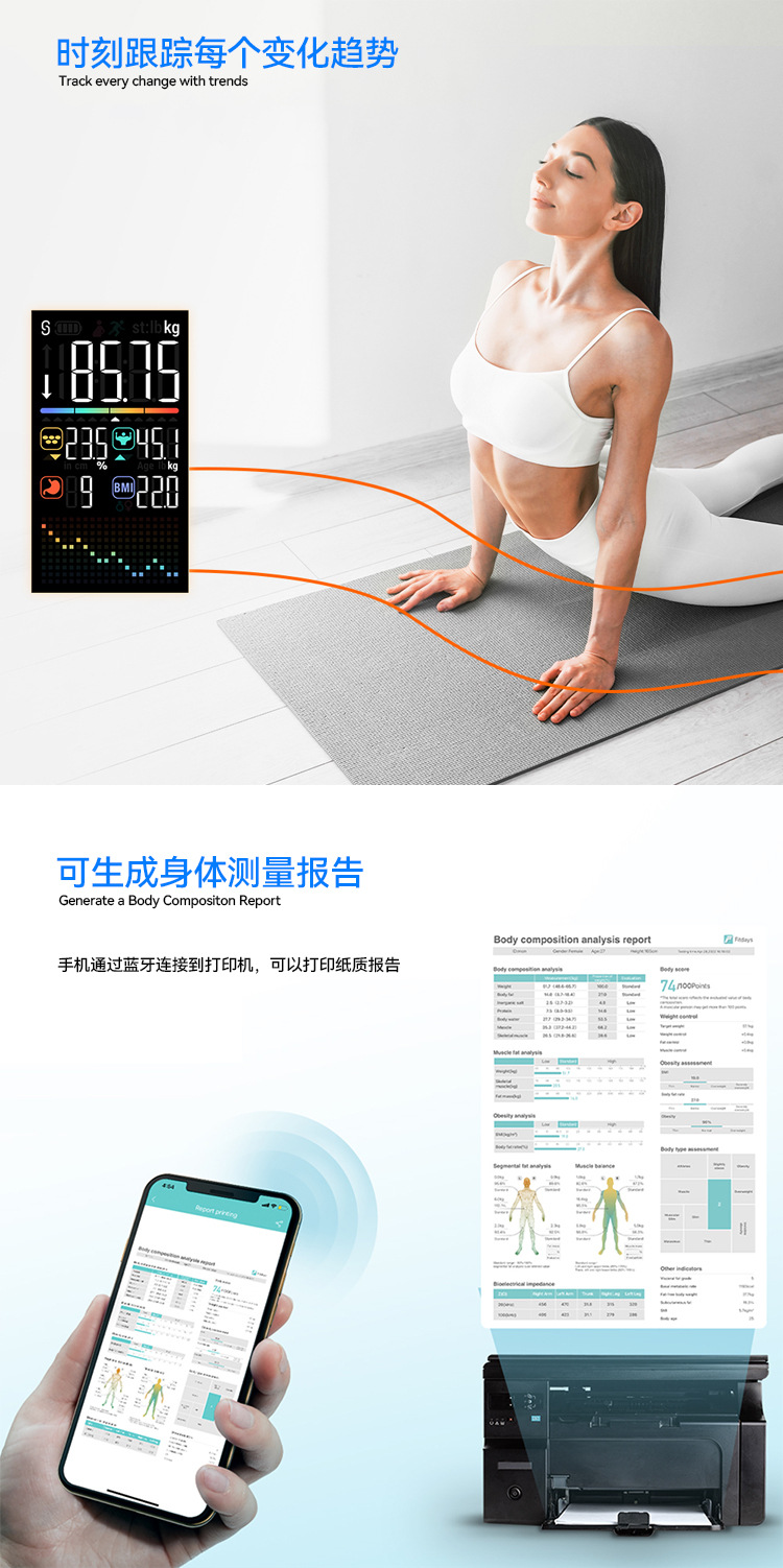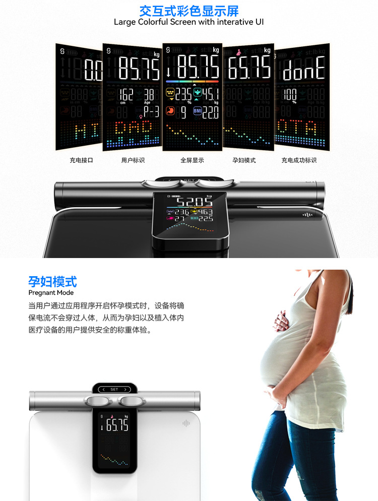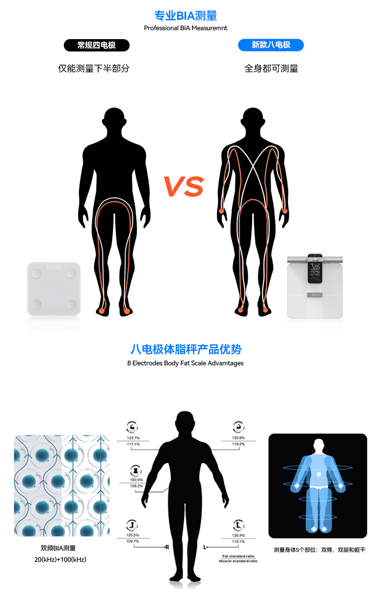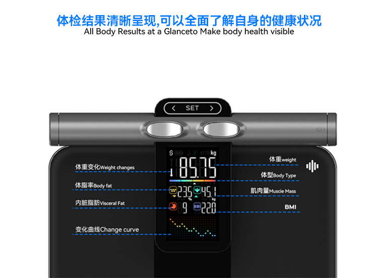 우물과 새로운 VA 컬러 스크린 8 전극 체지방 스케일 새로운 지방 측정 체지방 스케일 블루투스 지능형 계량 규모