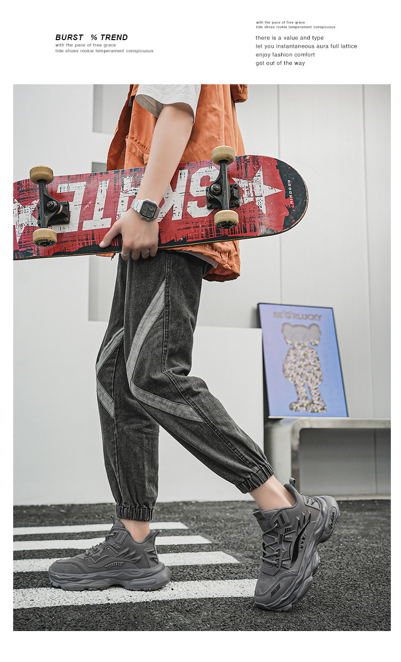 패션 가을과 겨울 새로운 가죽 하이 탑 두꺼운 바닥 올 매치 홍콩 스타일 남성 운동화 편안한 경량 남성 메카 캐주얼 신발스토어 가기