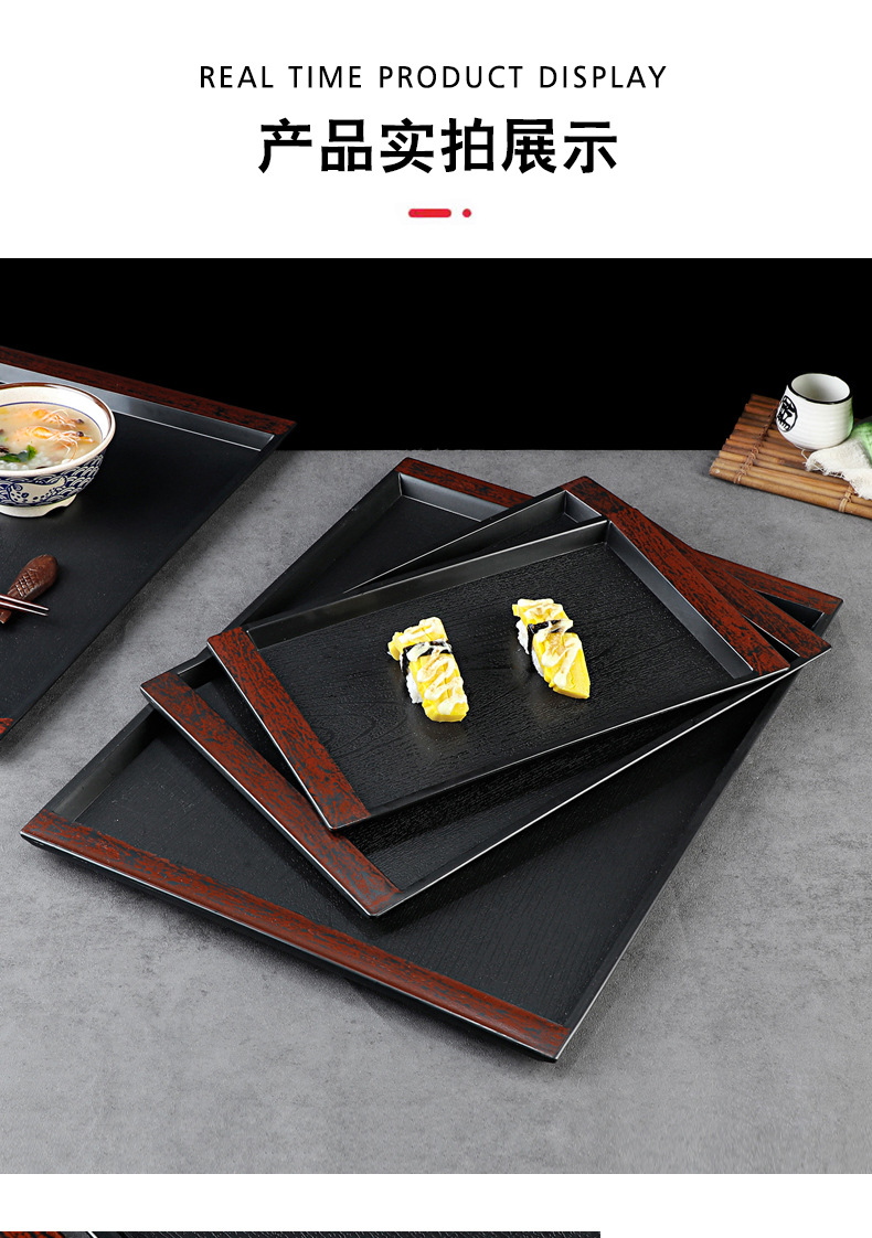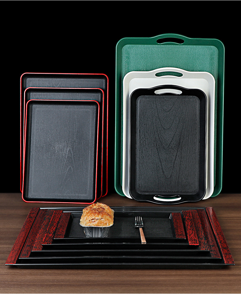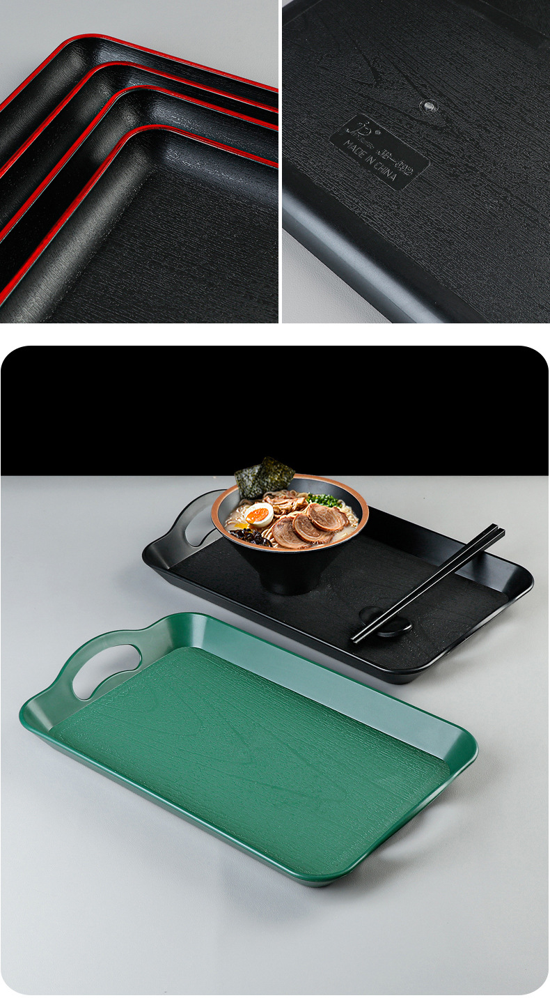 플라스틱 트레이 직사각형 레스토랑 미끄럼 방지 휴대용 디너 플레이트 일본식 상업용 대형 바이노럴 트레이 핸들