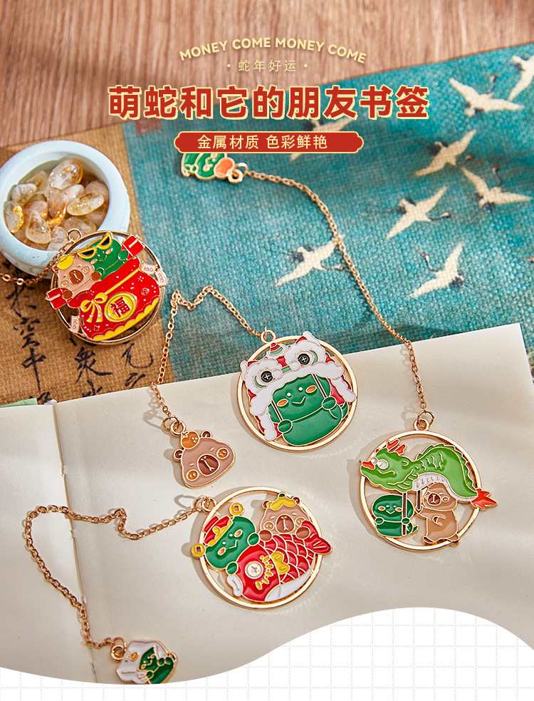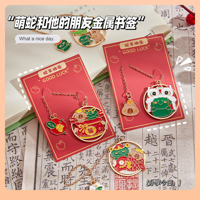 ✅맹뱀과 그 친구들 아연 합금 북마크 2025 년 뱀 봄 축제 새로운 귀여운 만화 학생 절묘한 선물