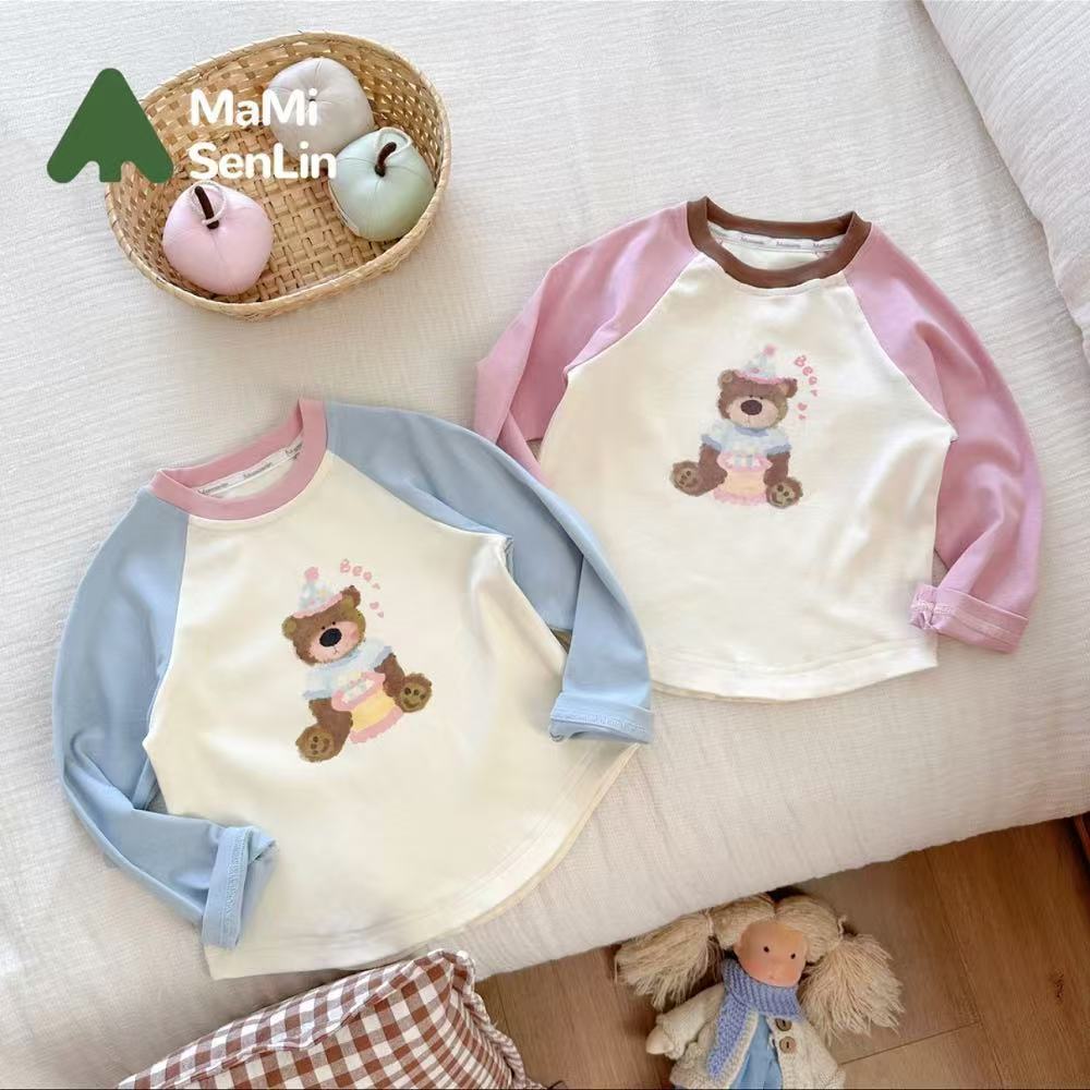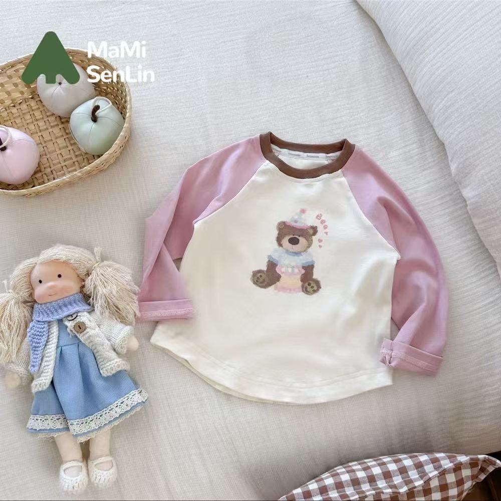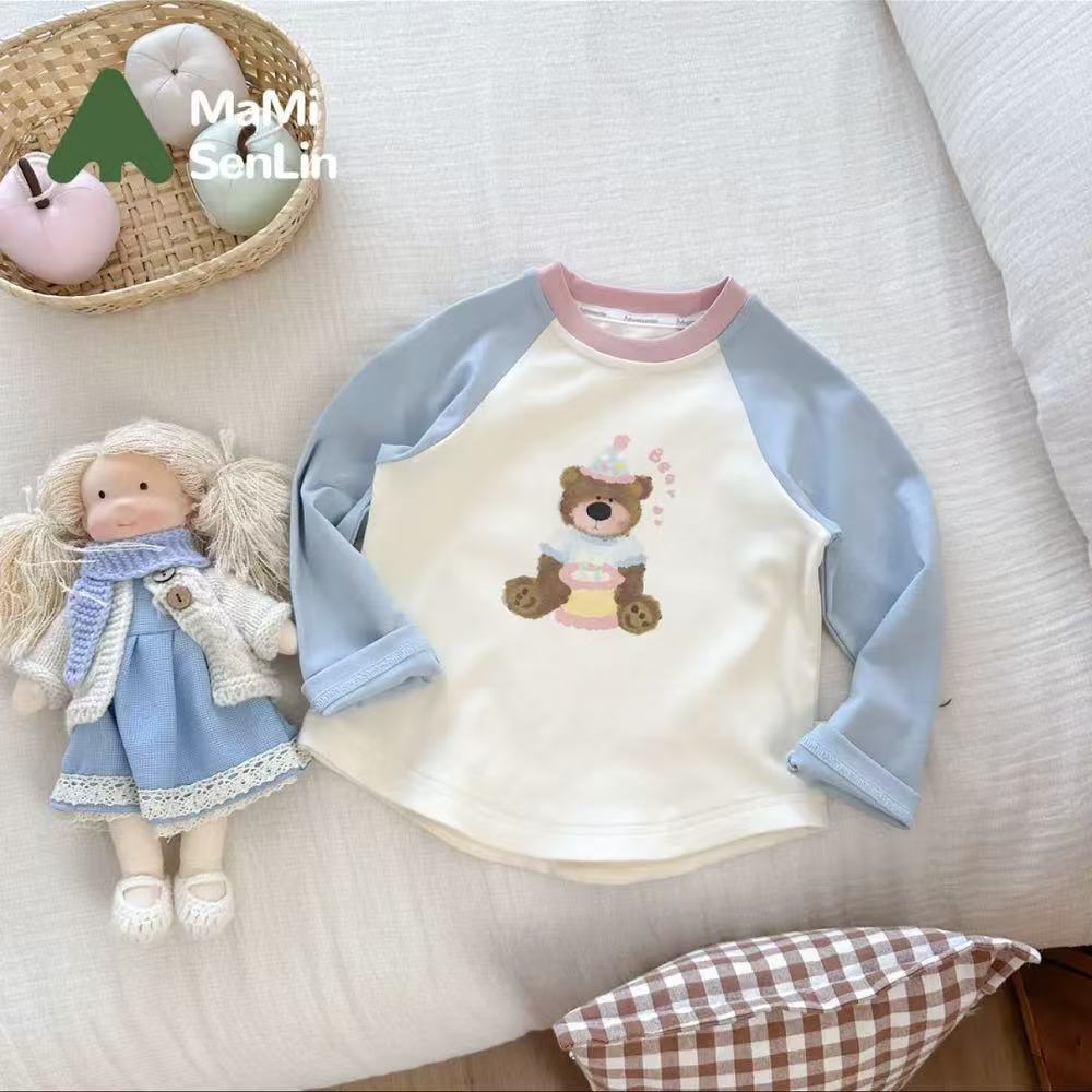 100 면 어린이 긴팔 티셔츠 봄 · 가을 최고 남녀 아동복 한국식 올매치 콘트라스트 컬러 베이비베이스 셔츠스토어 가기