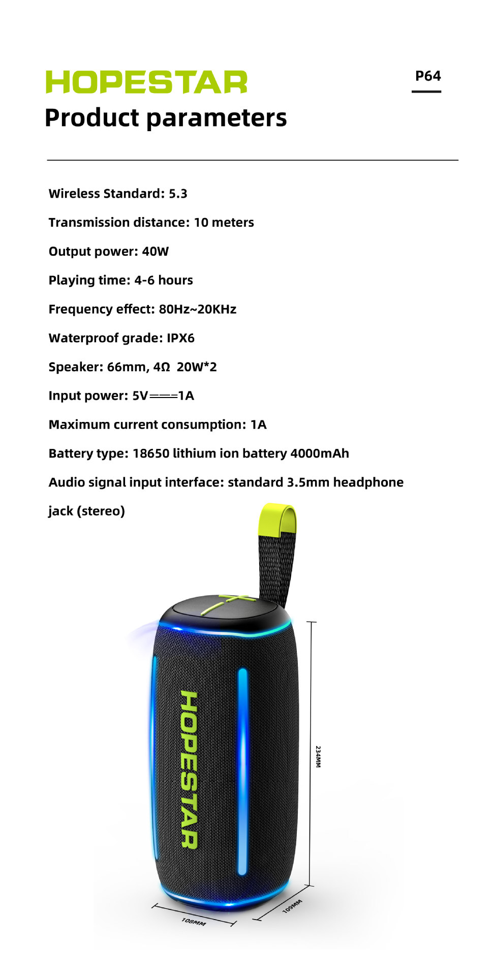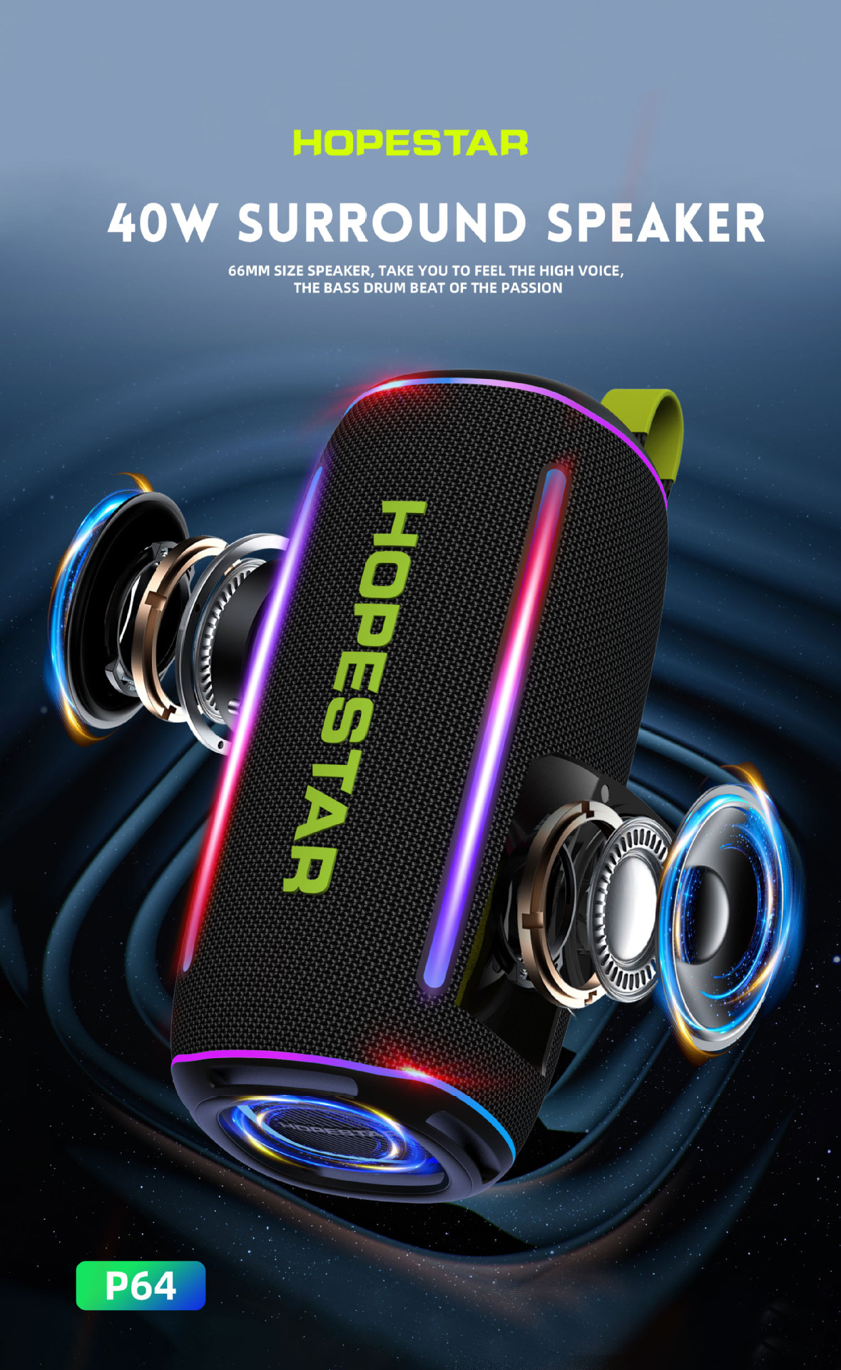 HOPESTAR-P64 야외 휴대용 블루투스 스피커 스포츠 타고 방수 높은 전원 서브 우퍼 듀얼 스피커스토어 가기