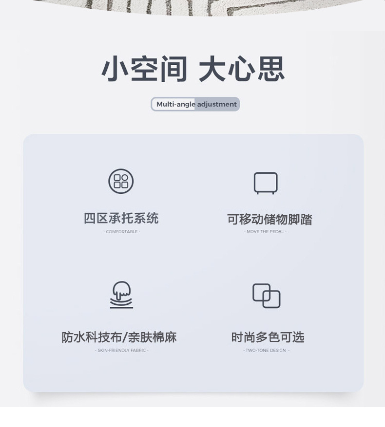 • (피부친화적인 면과 린넨) 레이크블루 소파의자+페달