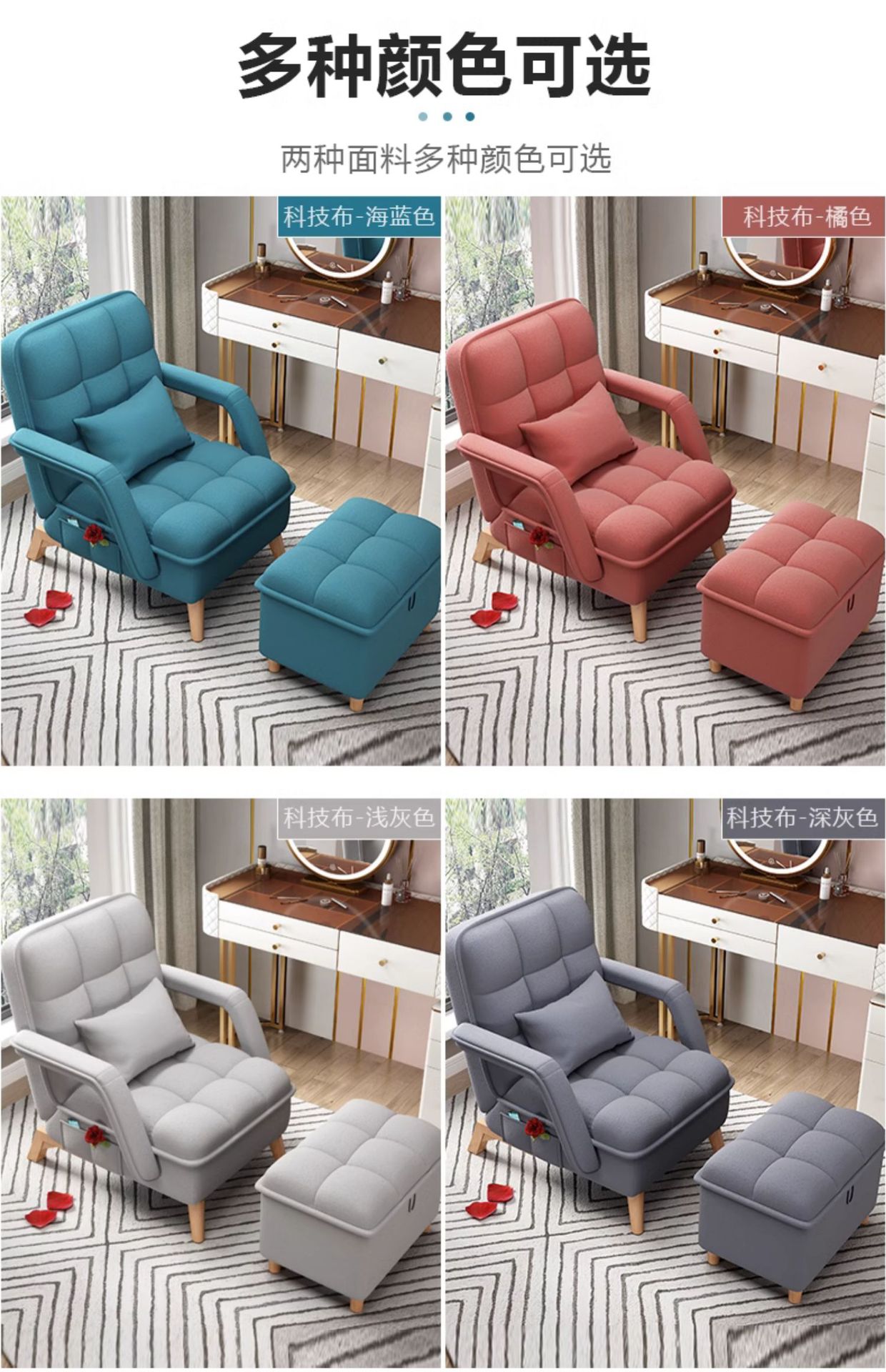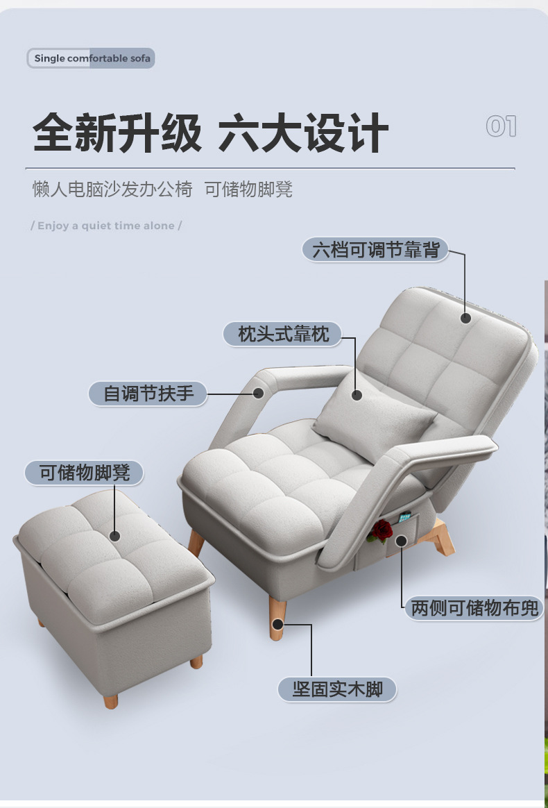 노인 게으른 사무실 싱글 소파 시트르블 수납 의자 레코더 점심 휴식 접이식 홈 의자