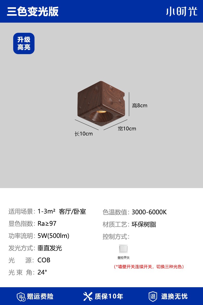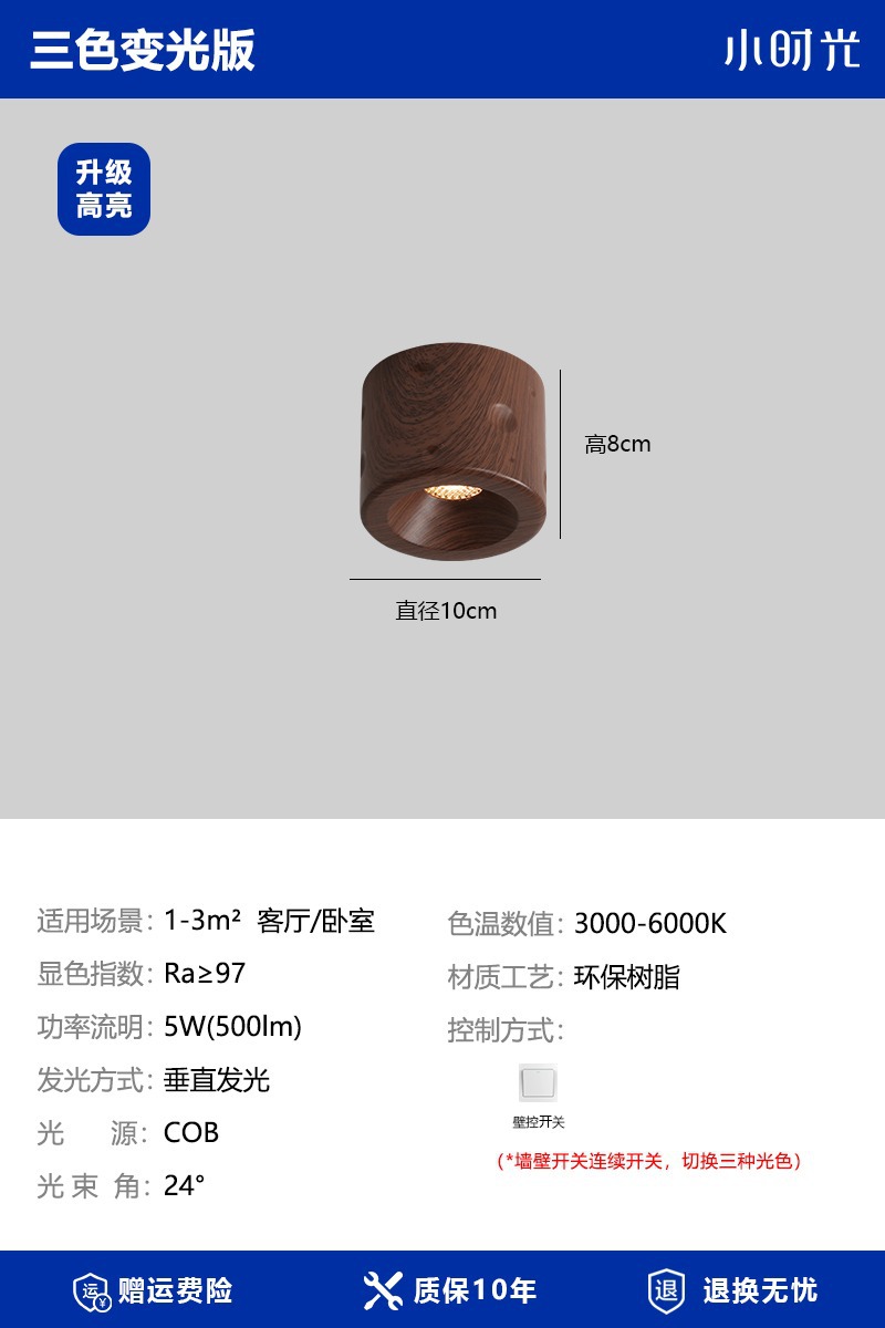 • 월넛색상 - 원형 10cm - 3색조광 - 5W