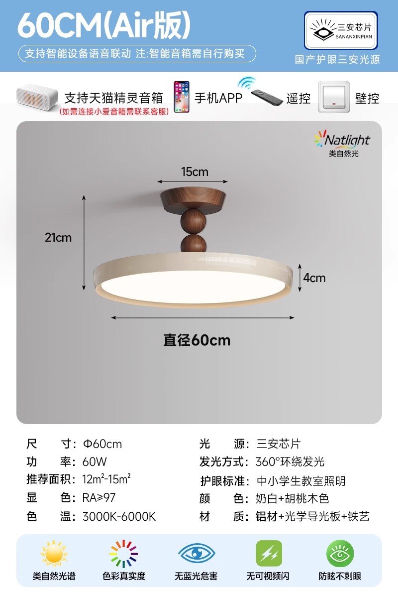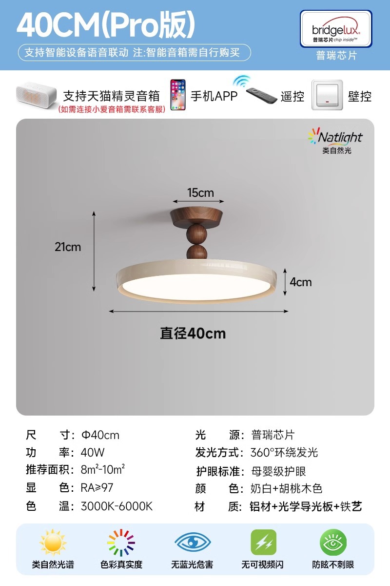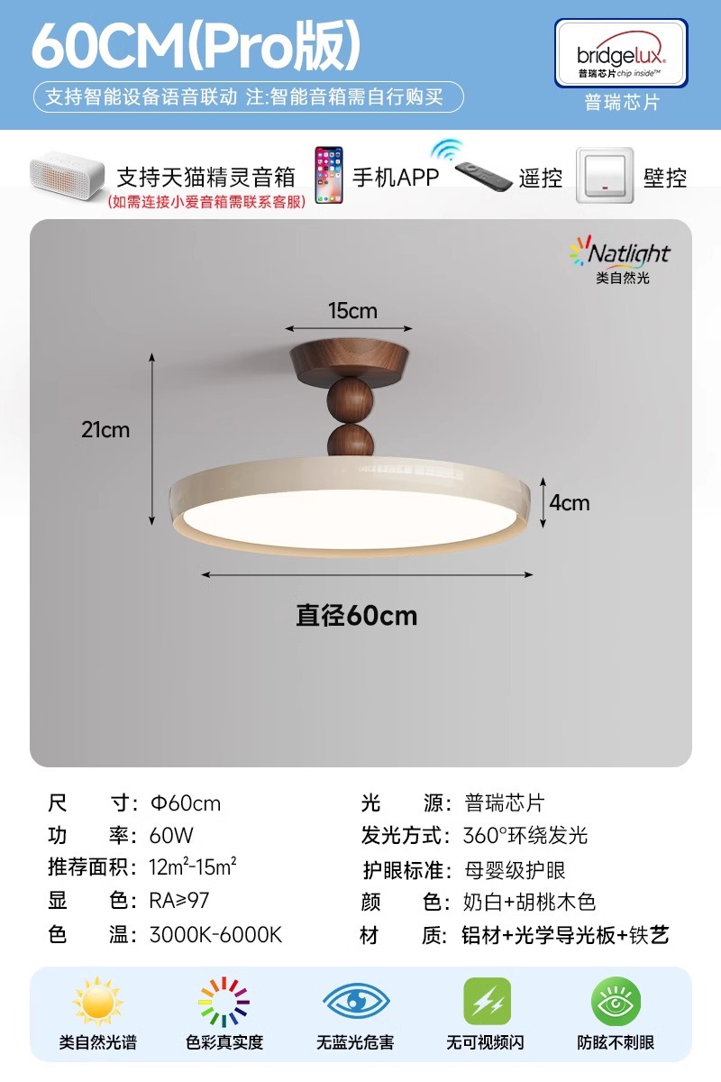 침실 연구 천장 램프 골동품 호두 컬러 풀 스펙트럼 눈 보호 부동 빛 독특한 빈티지 룸 램프스토어 가기