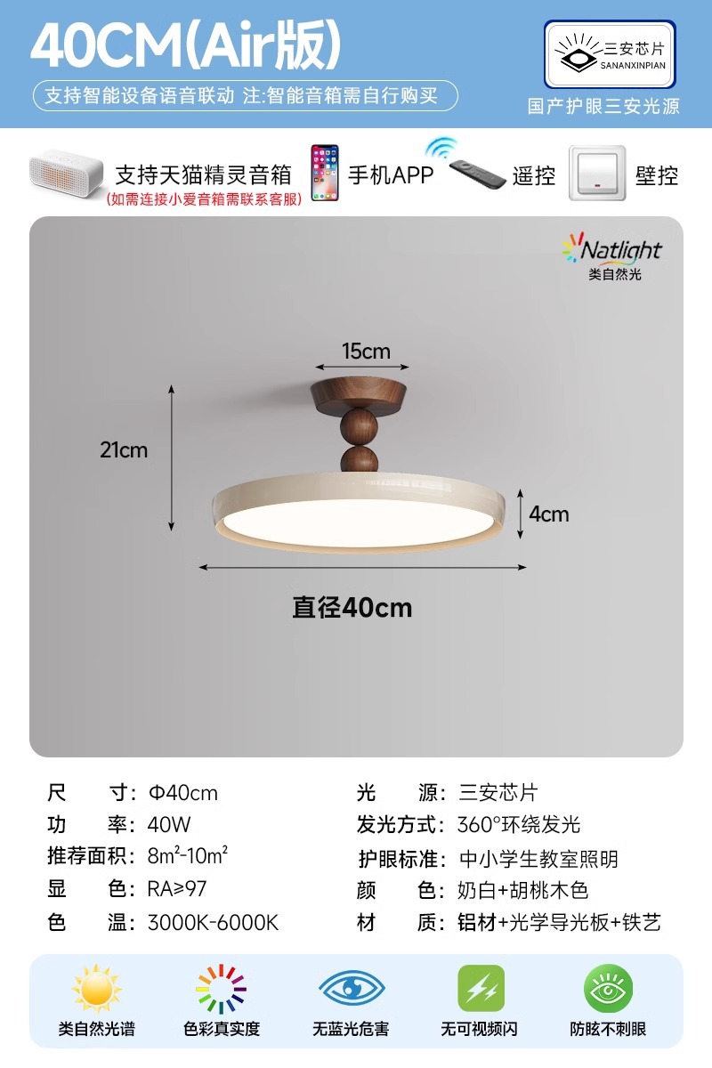 침실 연구 천장 램프 골동품 호두 컬러 풀 스펙트럼 눈 보호 부동 빛 독특한 빈티지 룸 램프