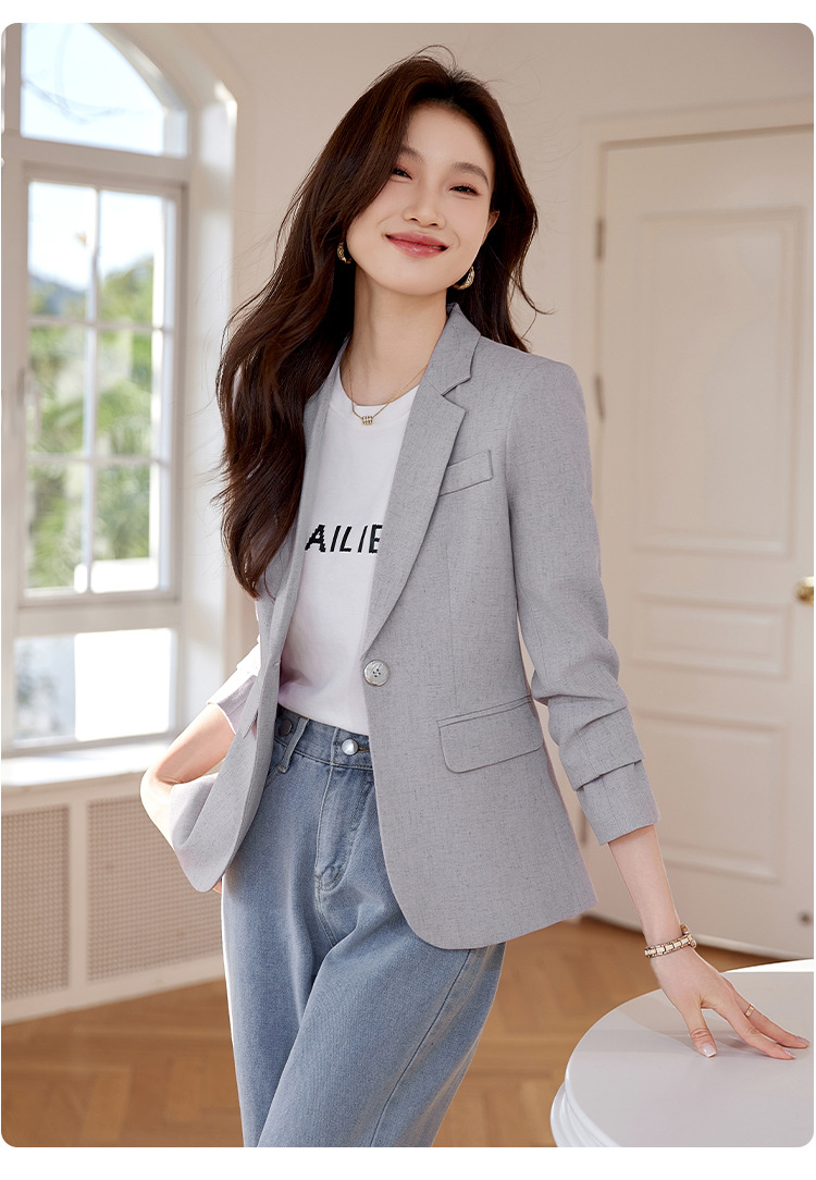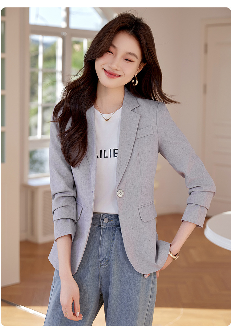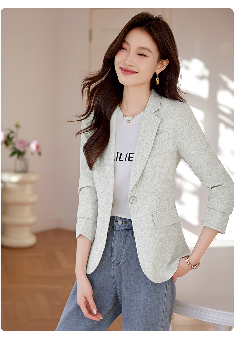 긴 소매 작은 세트 여성 재킷 높은 감각 2025 새로운 봄과 가을 한국 스타일 캐주얼 패션 우아한 리넨 탑스토어 가기