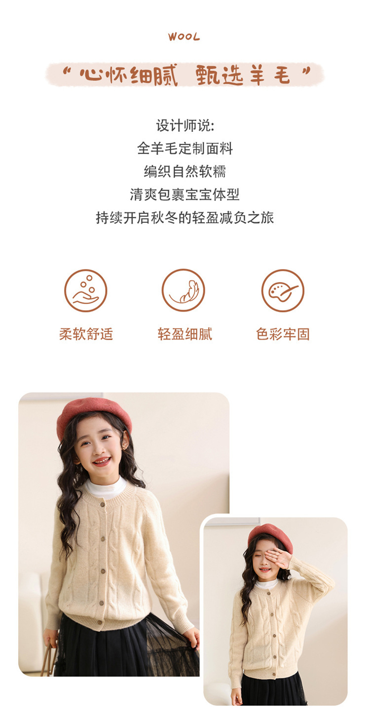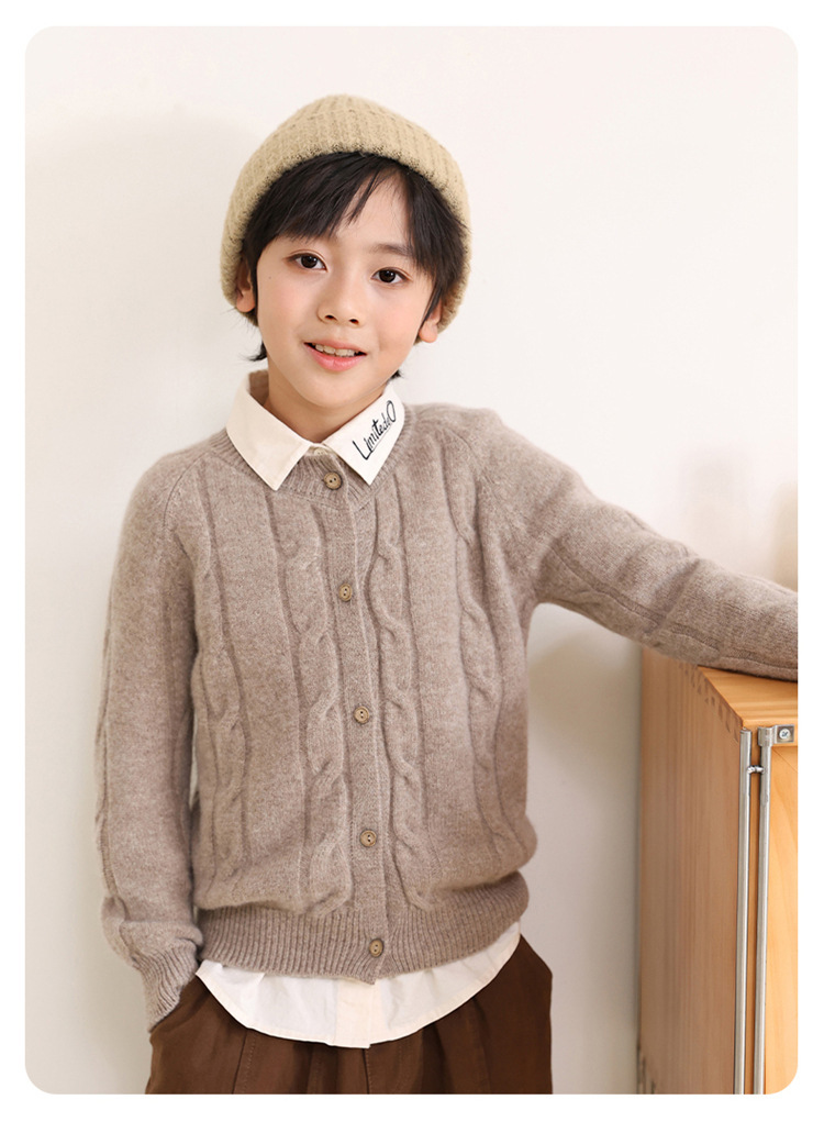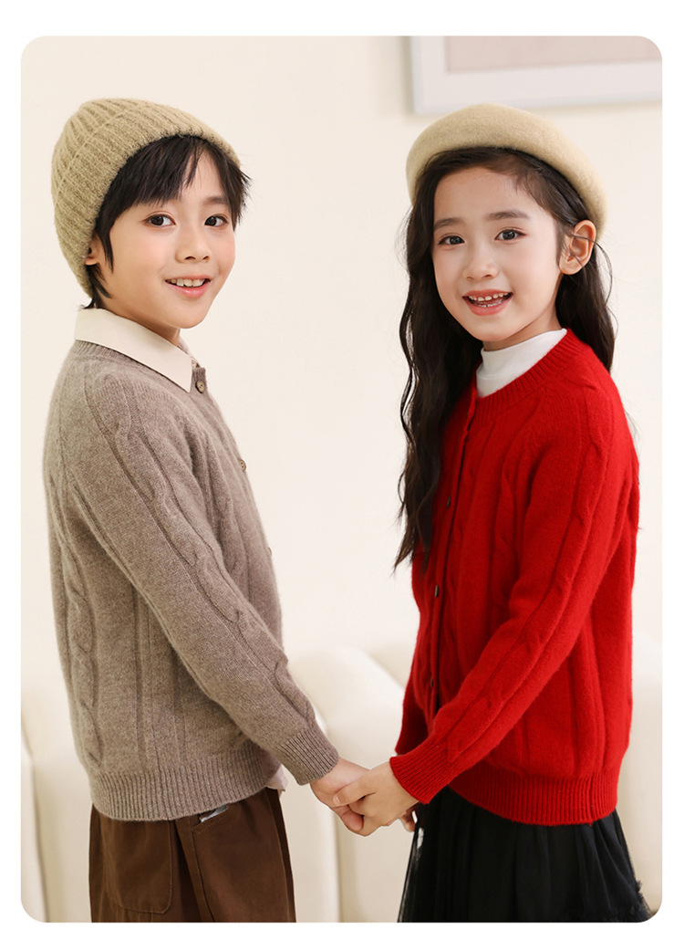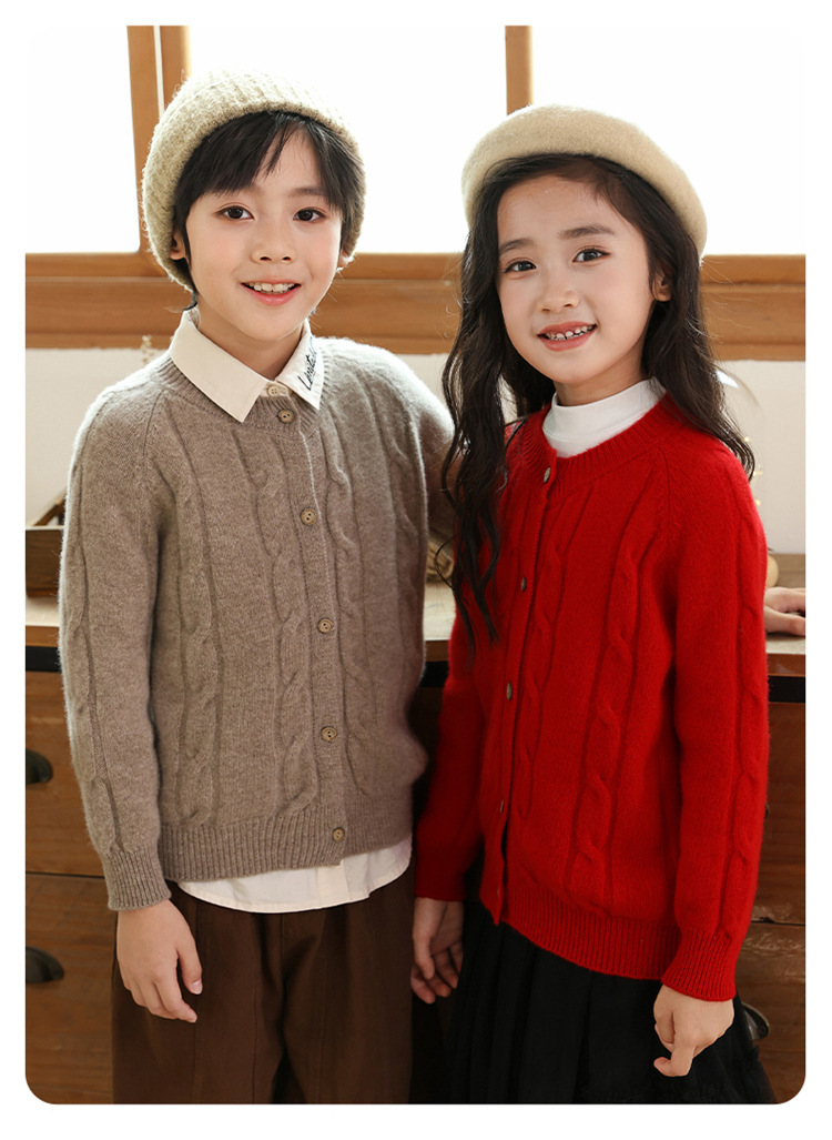 어린이 순수 양모 니트 스웨터 카디건 가을과 겨울 소년 소녀를위한 새로운 두꺼운 빈티지 트위스트 캐시미어 재킷 스웨터