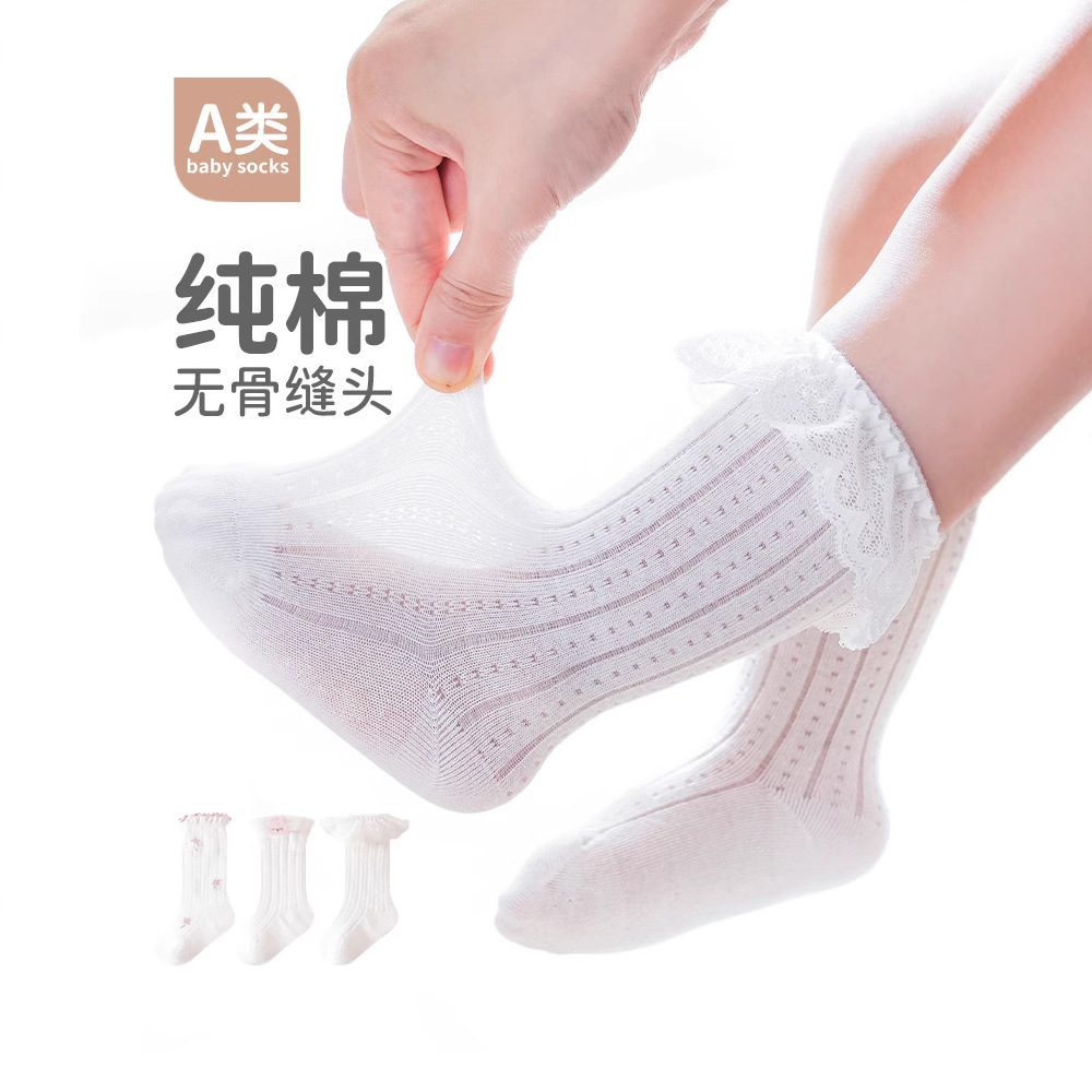 5 면 아기 양말 봄과 여름 얇은 클래스 A 메쉬 양말 아기 면 양말 중간 튜브 걸스 레이스 양말 나비스토어 가기