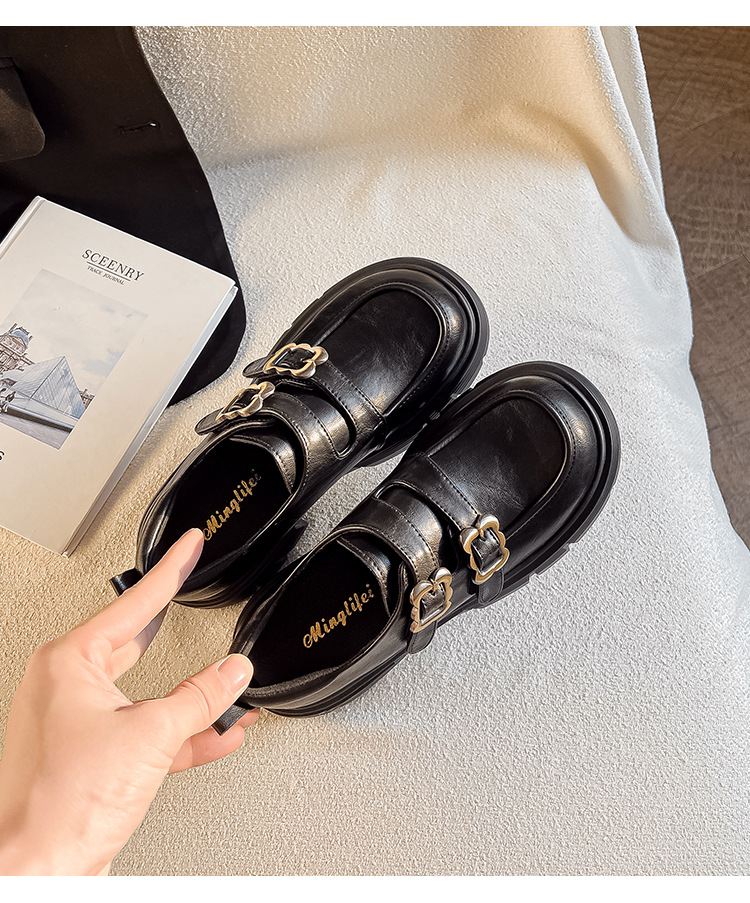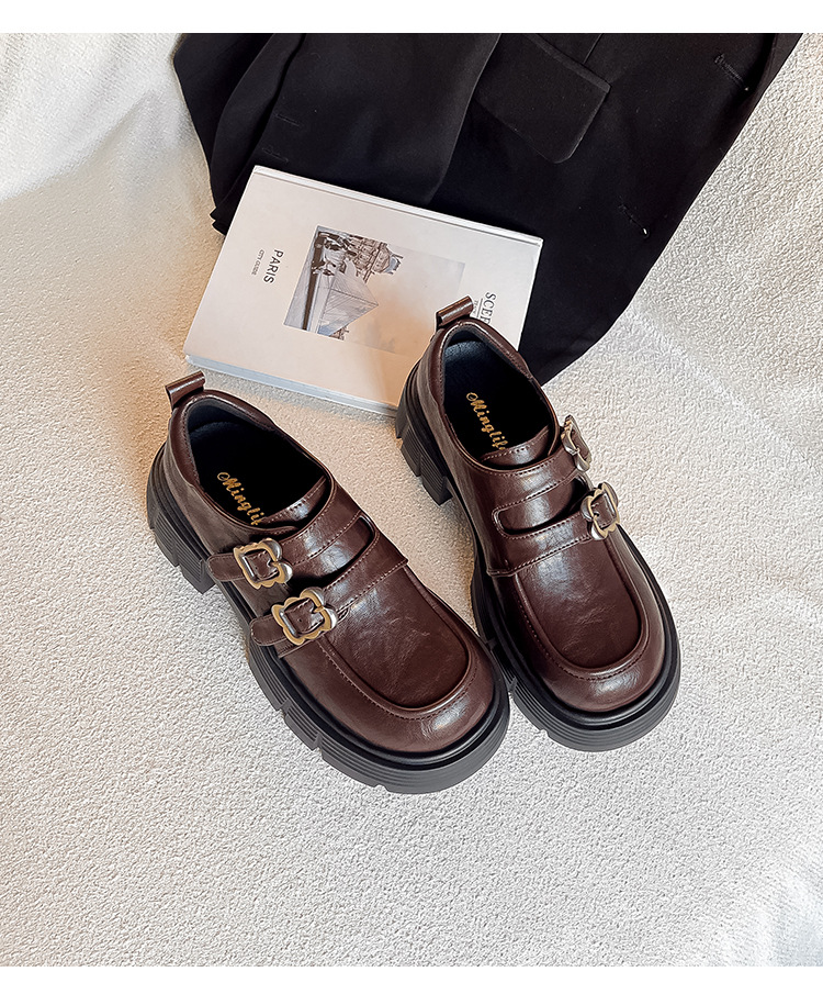 855-2 두꺼운 바닥 로퍼 여성 2025 봄 레트로 영국 가죽 신발 일본 여성의 jk 두꺼운 싱글 신발 플러스 사이즈