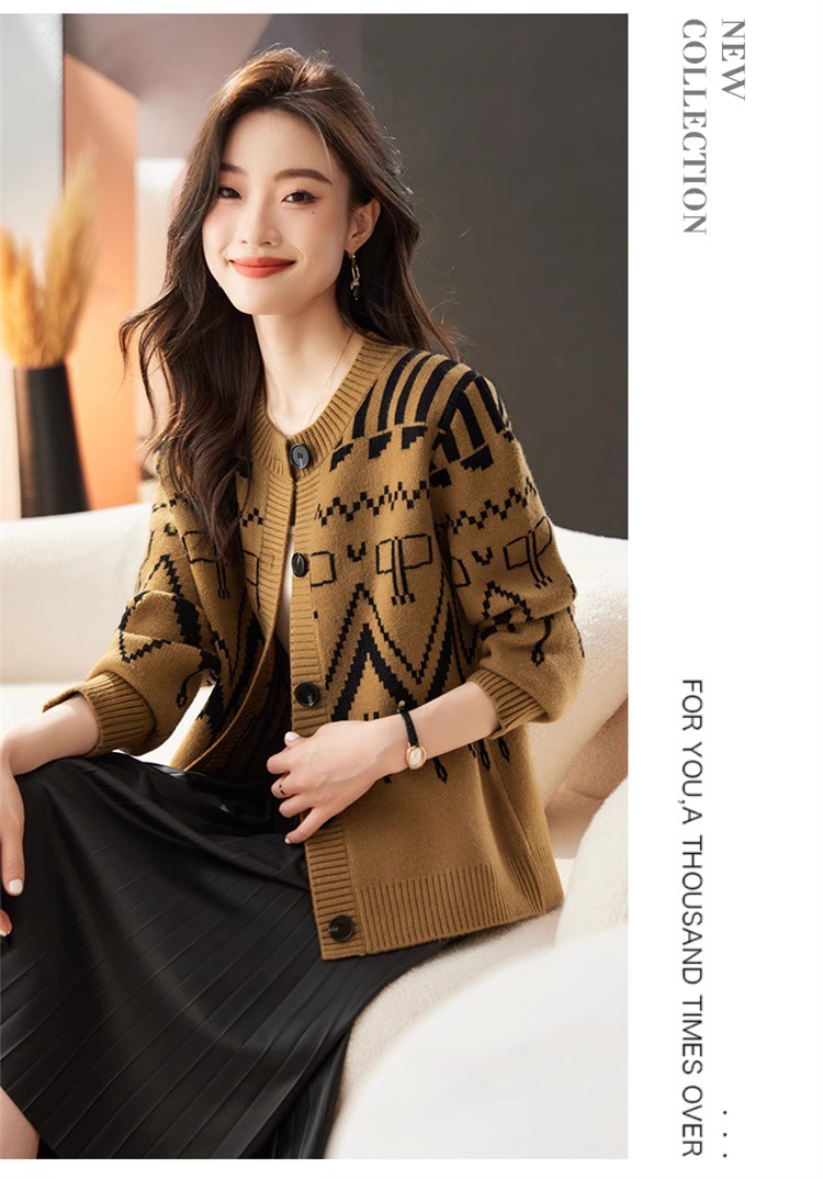 크루 넥 니트 짧은 카디건 여성의 2024 가을과 겨울 새로운 빈티지 자카드 연령 감소 스웨터 코트 소프트 왁스스토어 가기