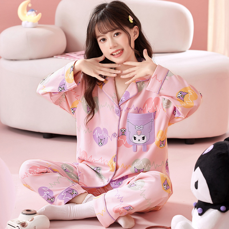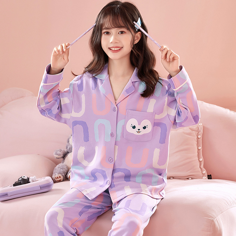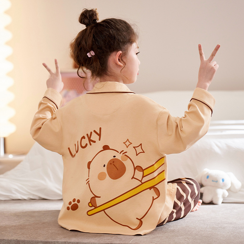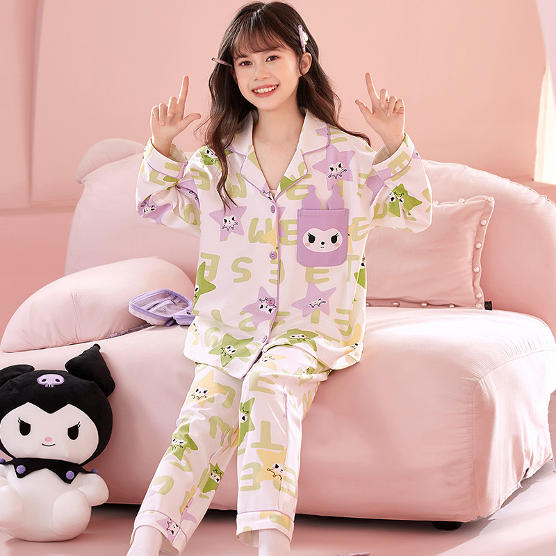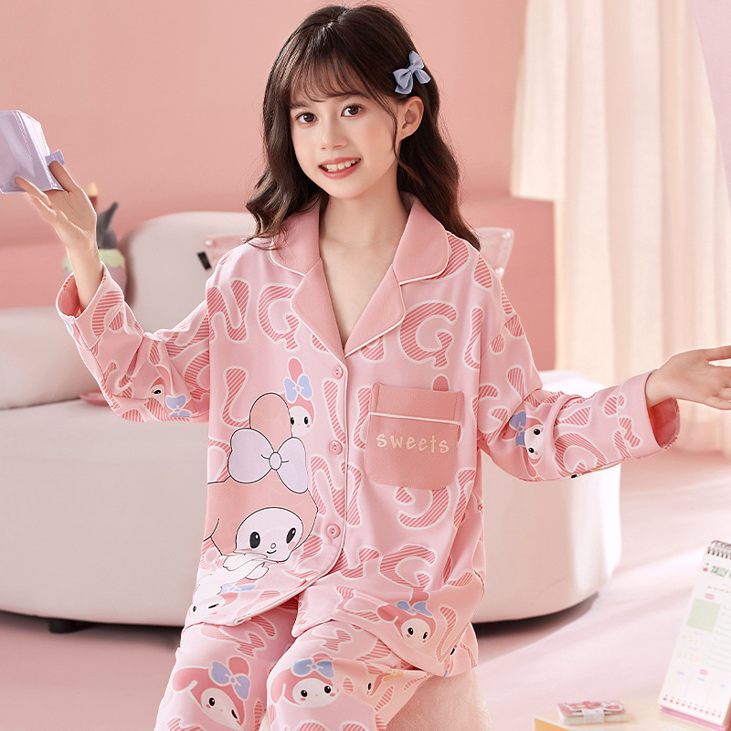 카피 발라 소녀 잠옷 봄과 가을 새로운 긴 소매 면 카디건 만화 홈 의류 세트