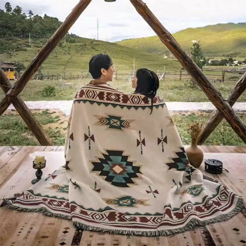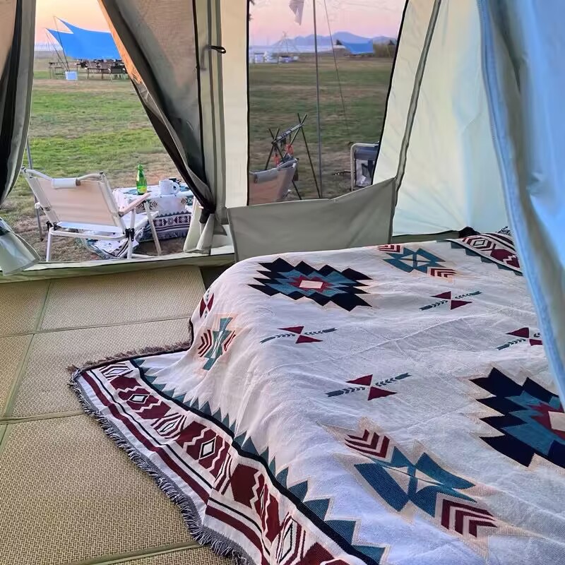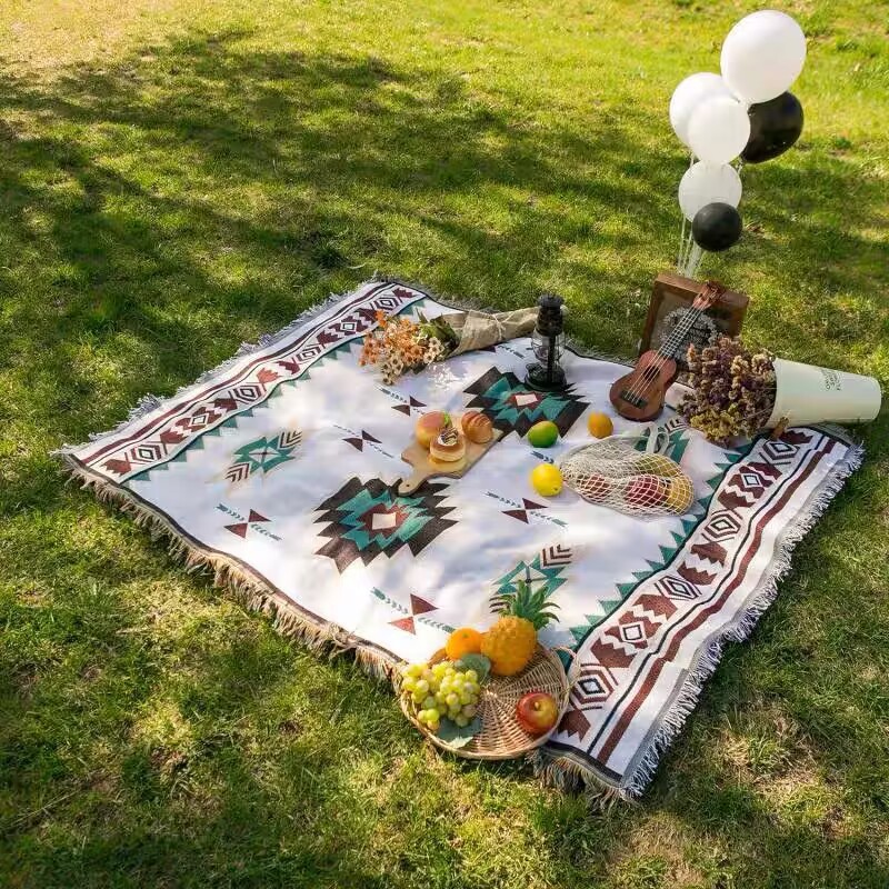 짠 피크닉 담요 수크레 야외 캠핑 담요 소파 커버 천 여름 다기능 라인 담요 보헤미안 담요
