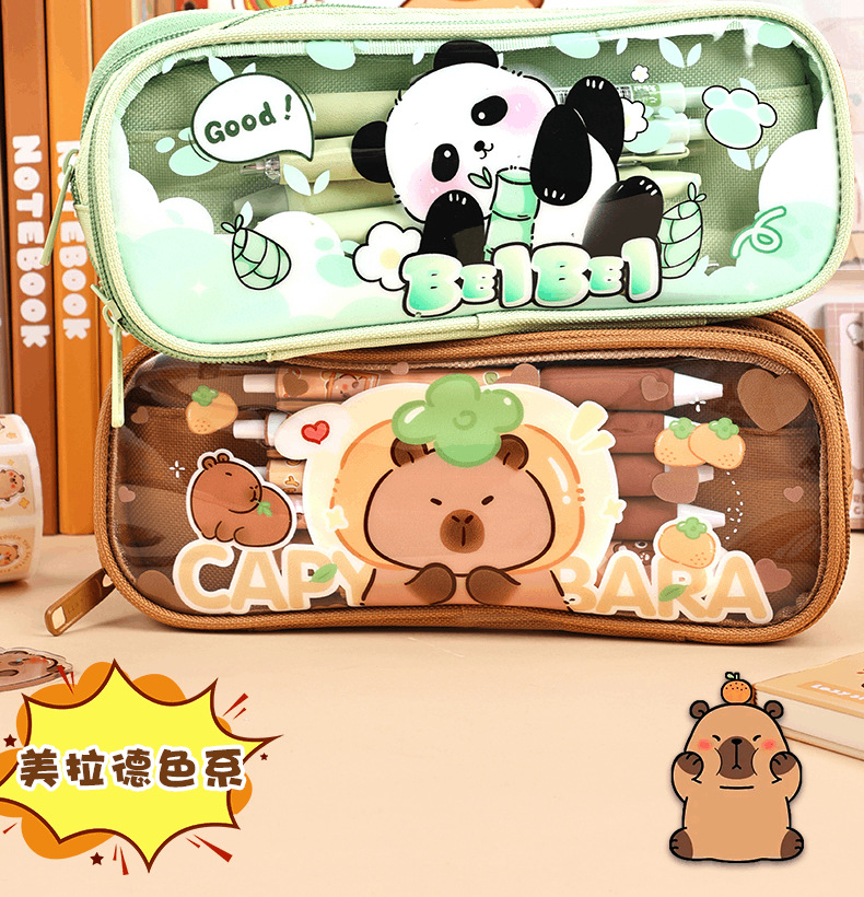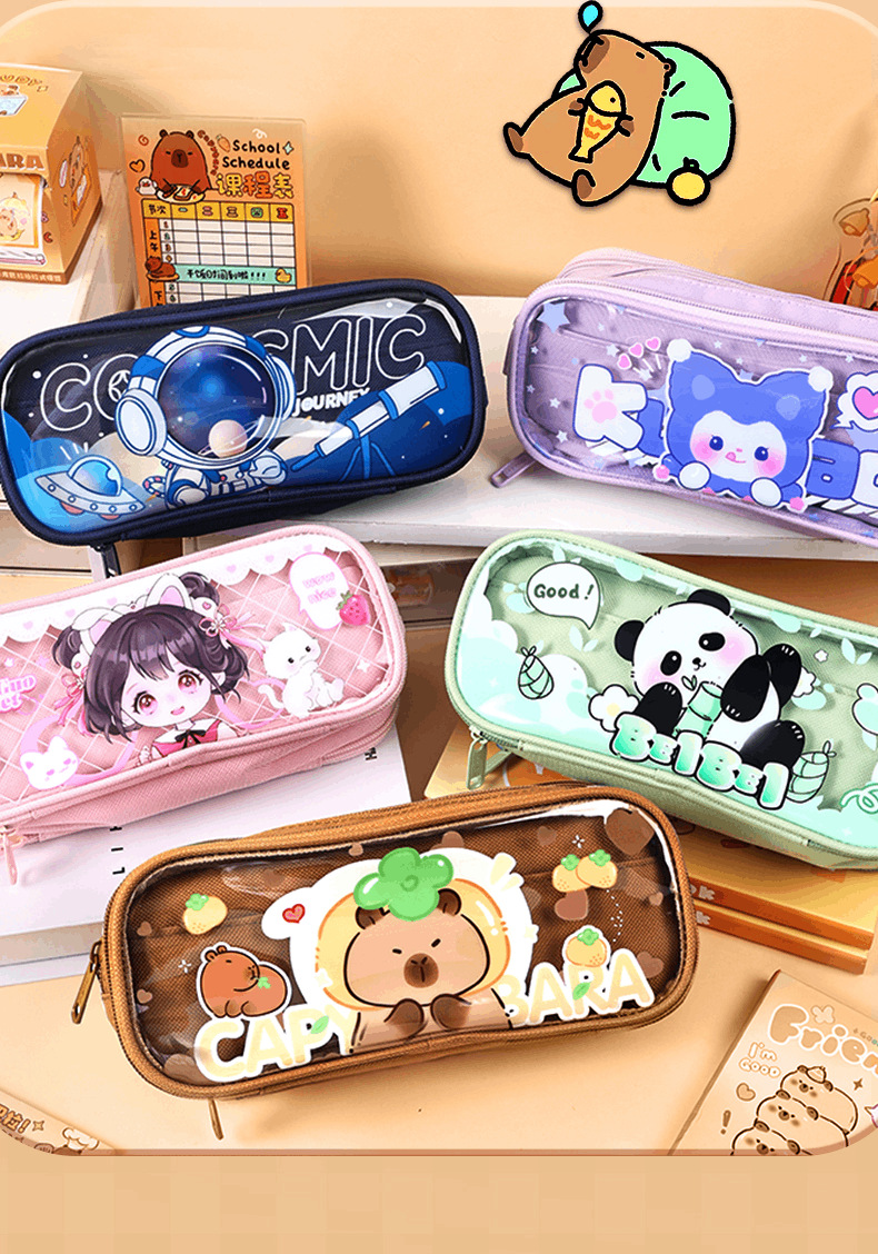 대용량 문구 상자 소녀의 소년의 연필 케이스 여성 초등학교 어린이 2025 새로운 투명 연필 케이스