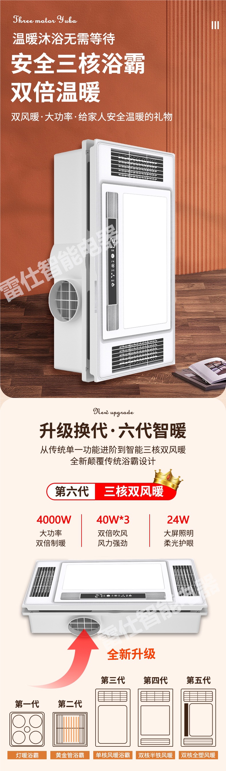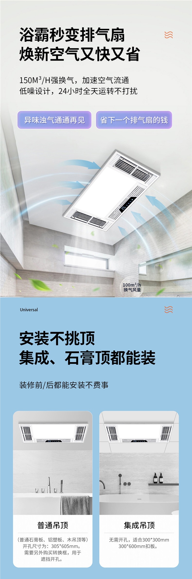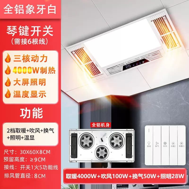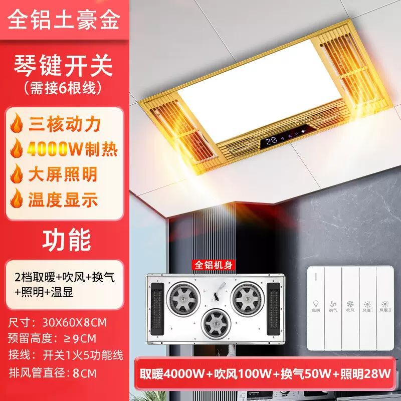 JMHTT Yuba 통합 천장 배기 팬 조명 내장 5 대 1 3 코어 히터스토어 가기