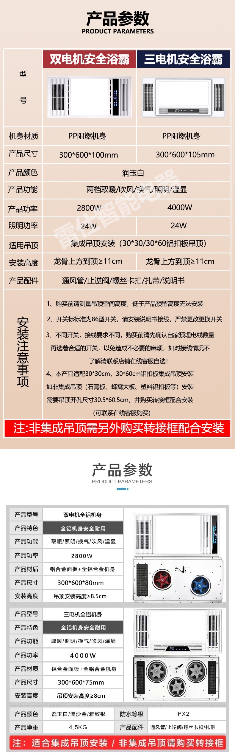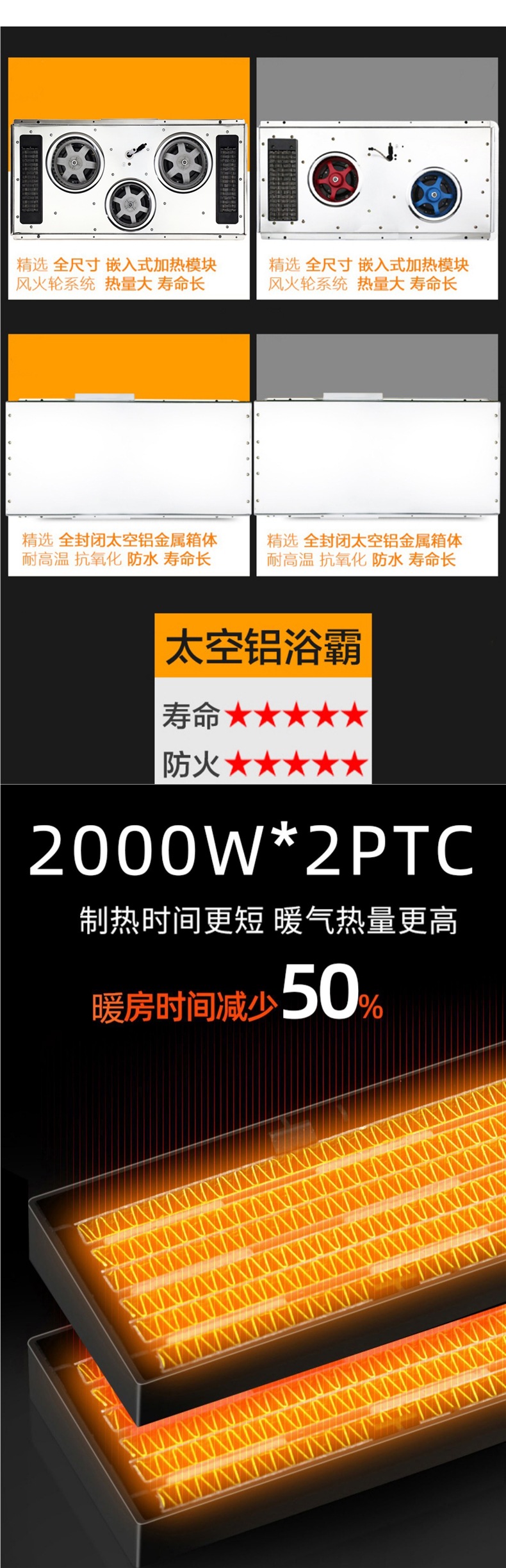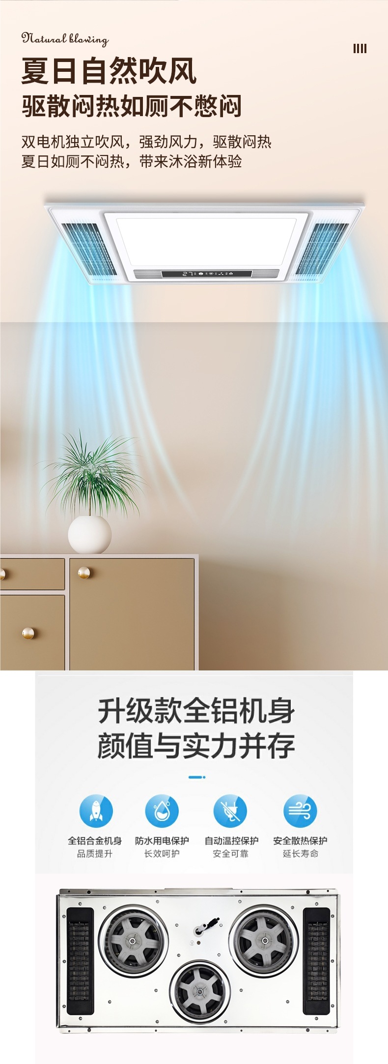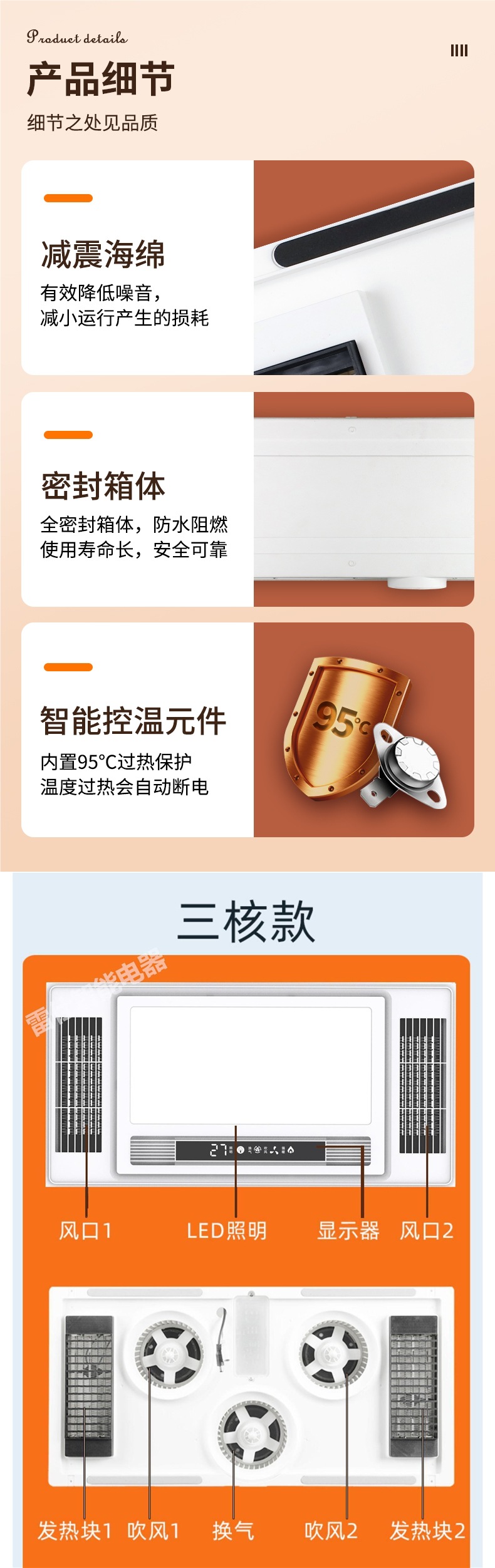 JMHTT Yuba 통합 천장 배기 팬 조명 내장 5 대 1 3 코어 히터스토어 가기