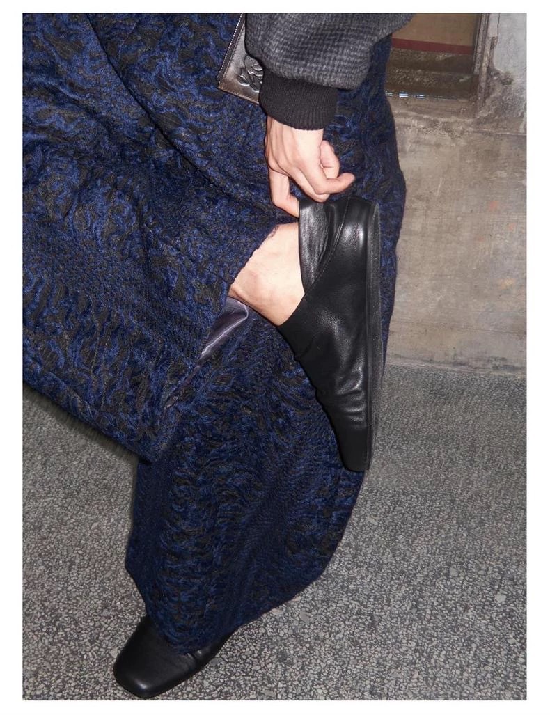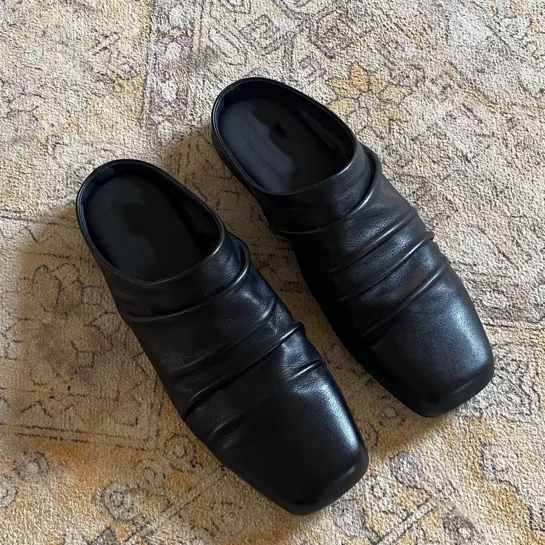 정품 가죽 틈새 Pleated Baotou 하프 슬리퍼 여성 2025 봄 여름 광장 플랫 뮬 신발 작은 가죽 신발 싱글 레이어 신발스토어 가기