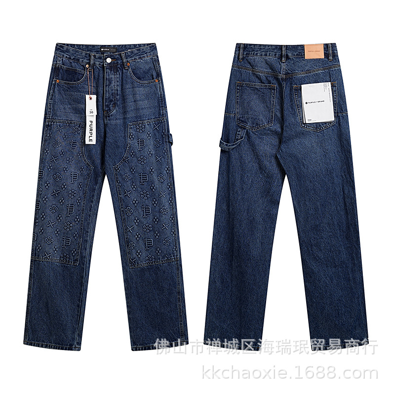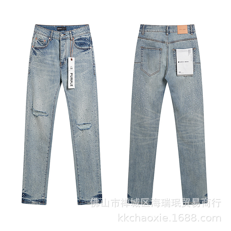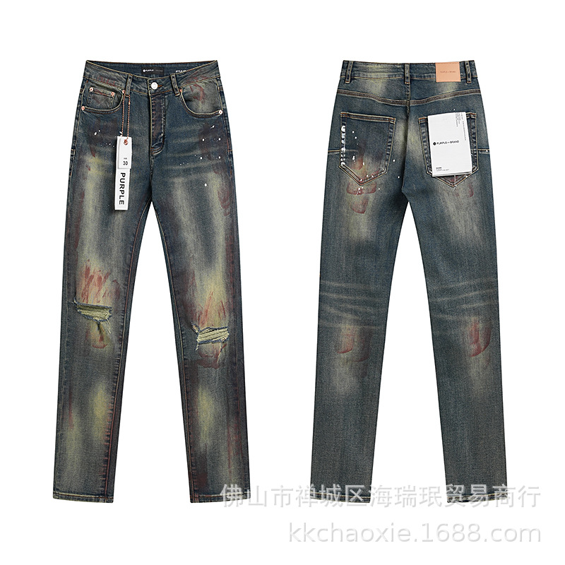 국경 간 대외 무역 도매 보라색 미국 하이 스트리트 찢어진 패치 트렌디 레트로 스트레이트 am 청바지 남성용 바지스토어 가기