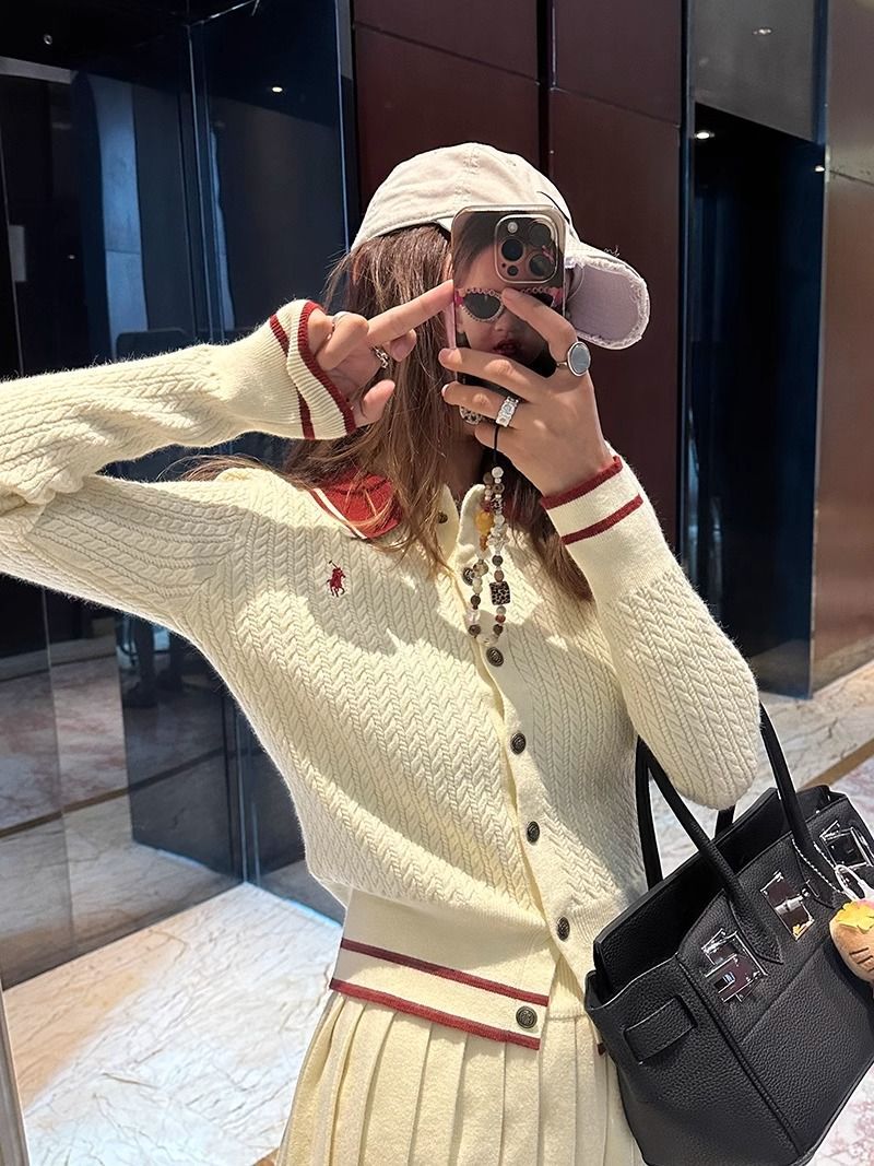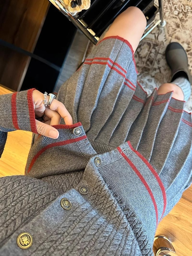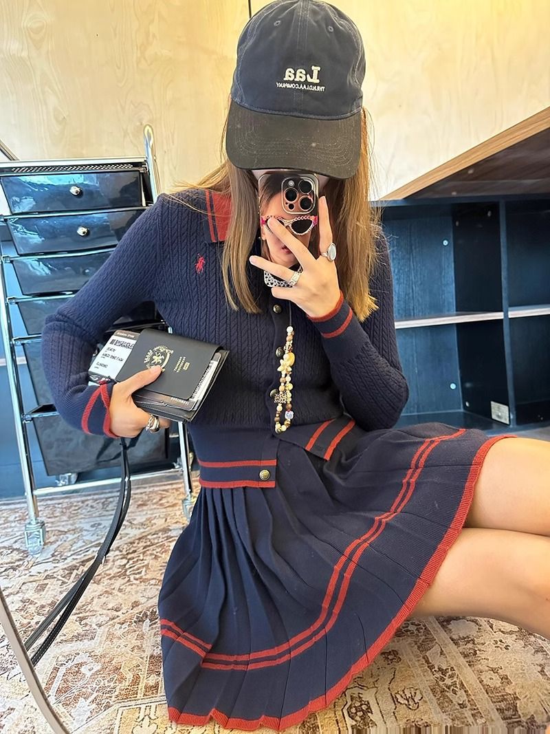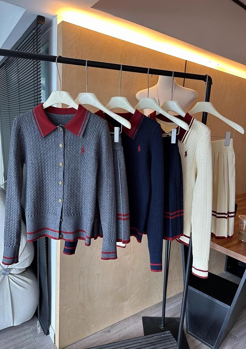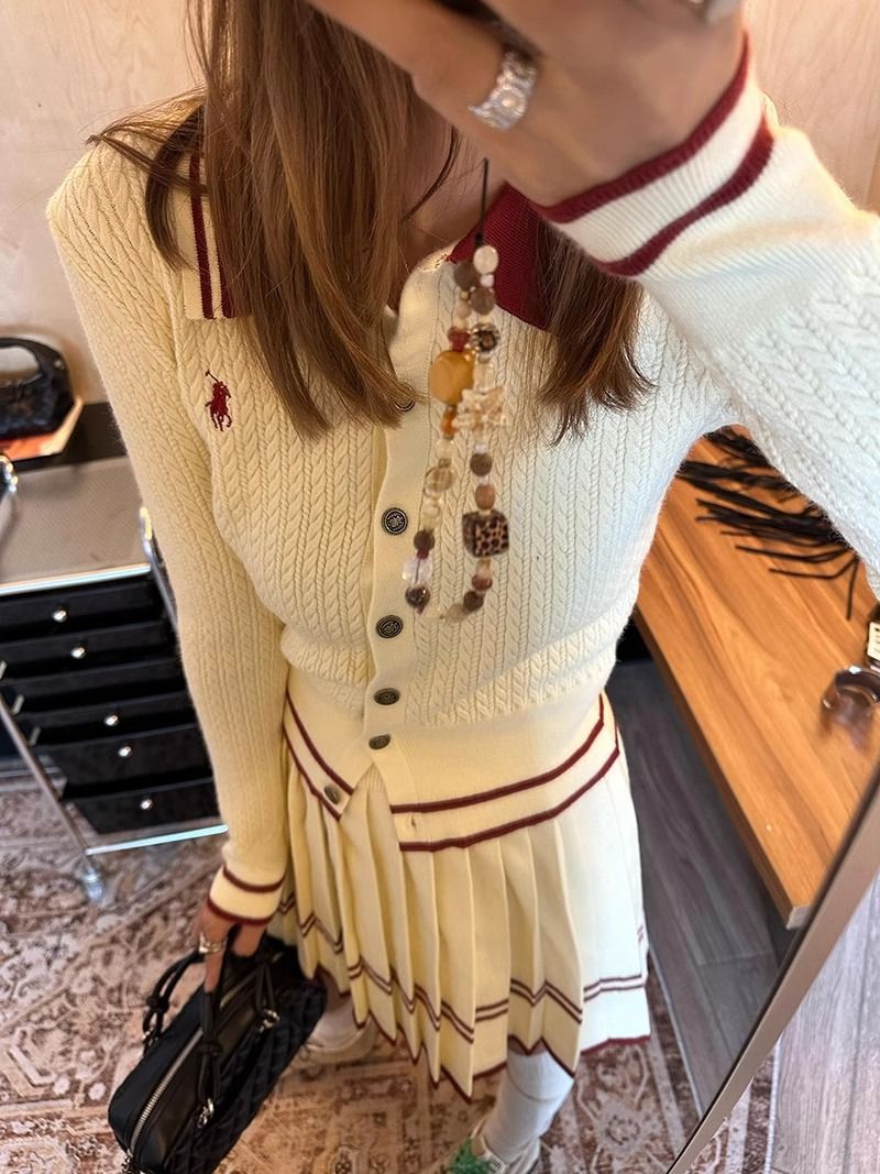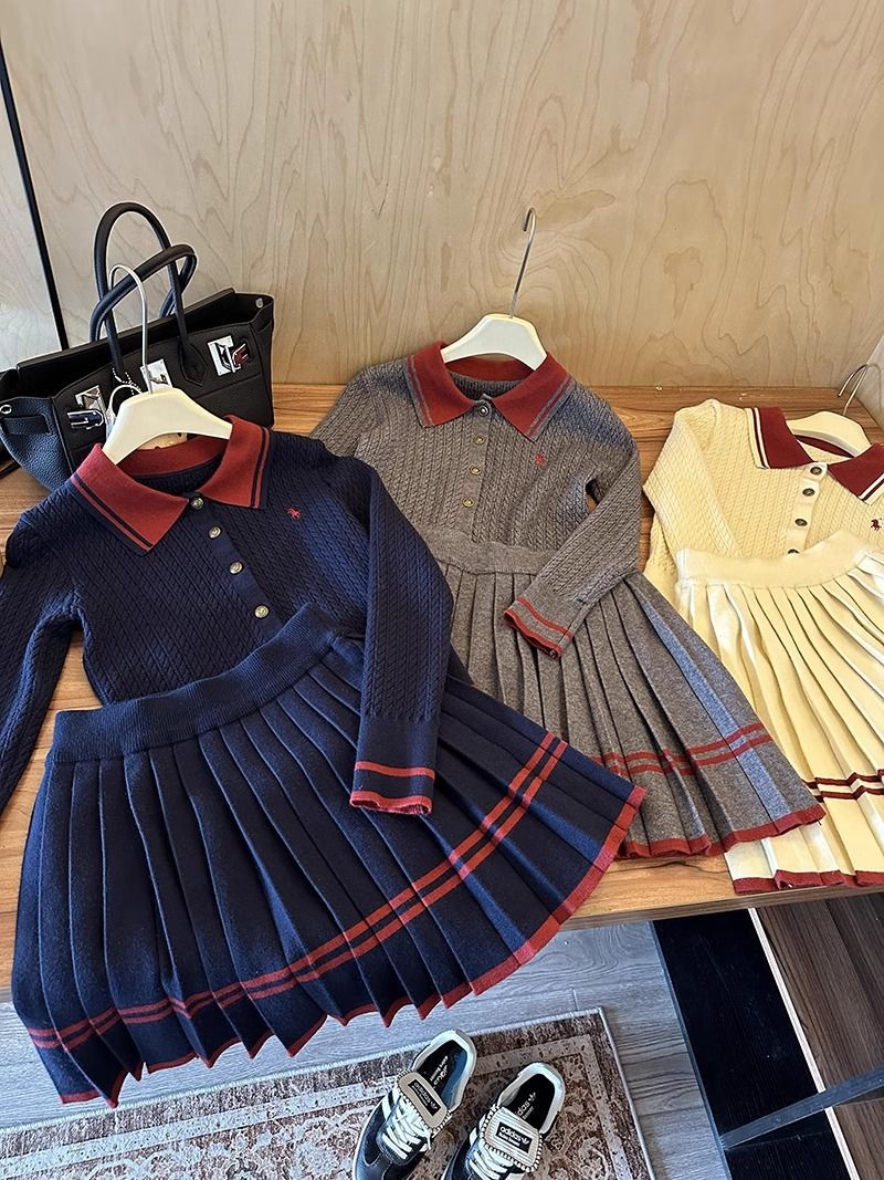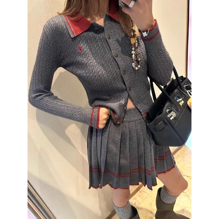 치마 투피스 세트 여성 2025 봄 옷깃 카디건 탑 주름 치마 순수한 욕망 아카데미 스타일 니트웨어스토어 가기