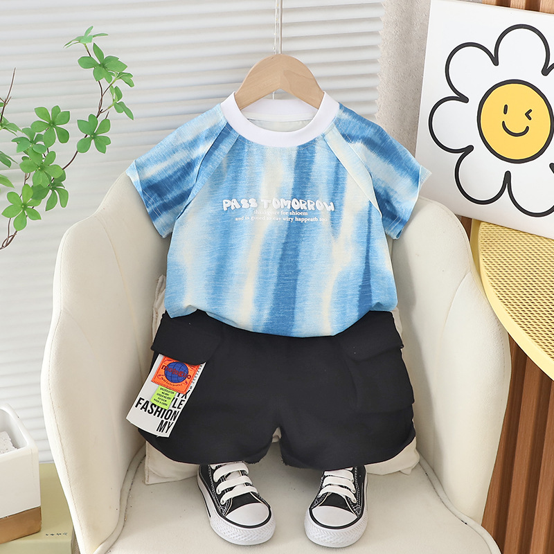 2025 뉴 보이즈 여름 반팔 세트 남학생 여름 유행 어린이 잘 생긴 캐주얼 어린이 투피스 세트