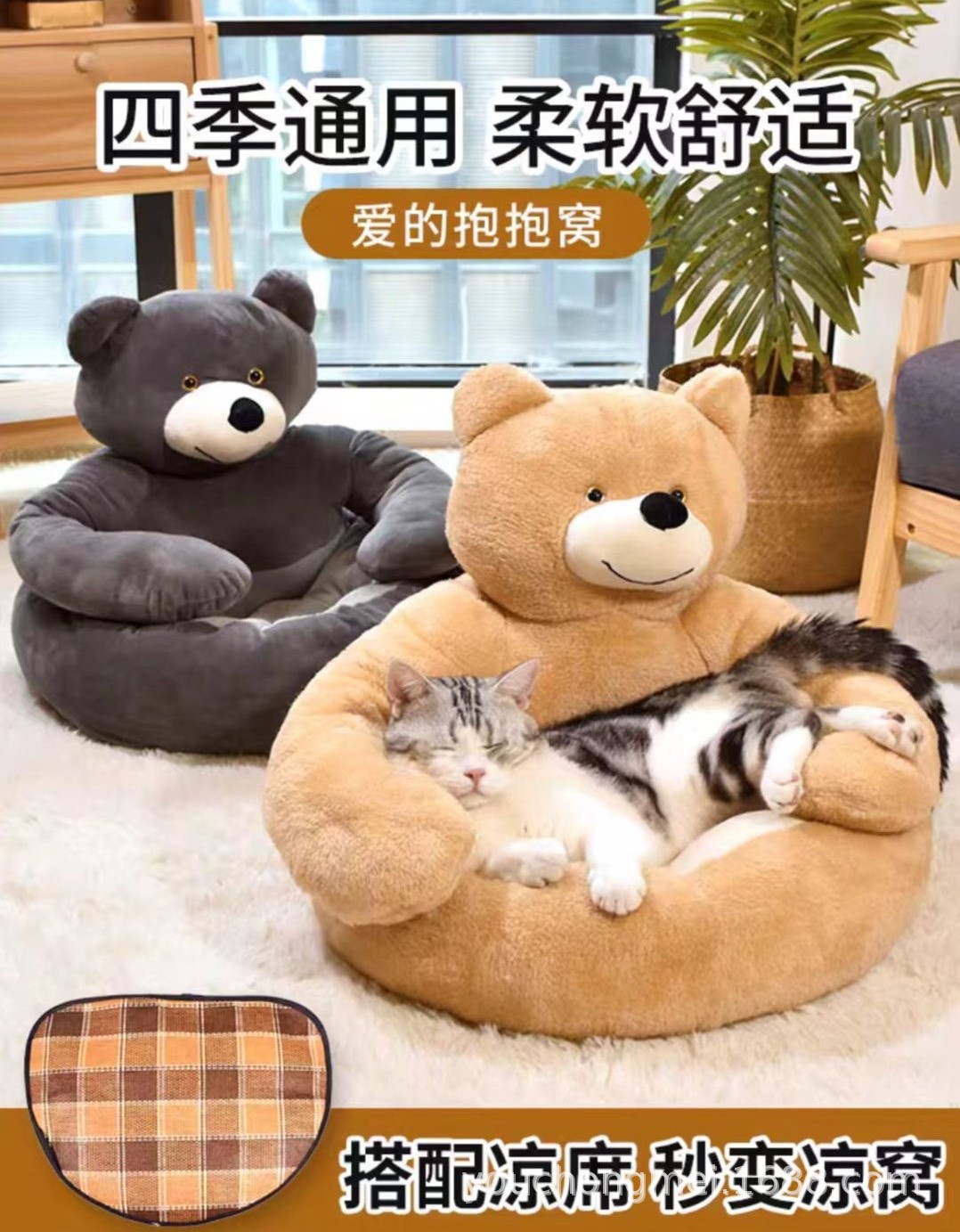Four Seasons Universal Warm Bear Cuddle 반 밀폐 이동식 및 세척 가능한 고양이 둥지 편안한 따뜻한 Kennel Dog Pad Cat Bed스토어 가기