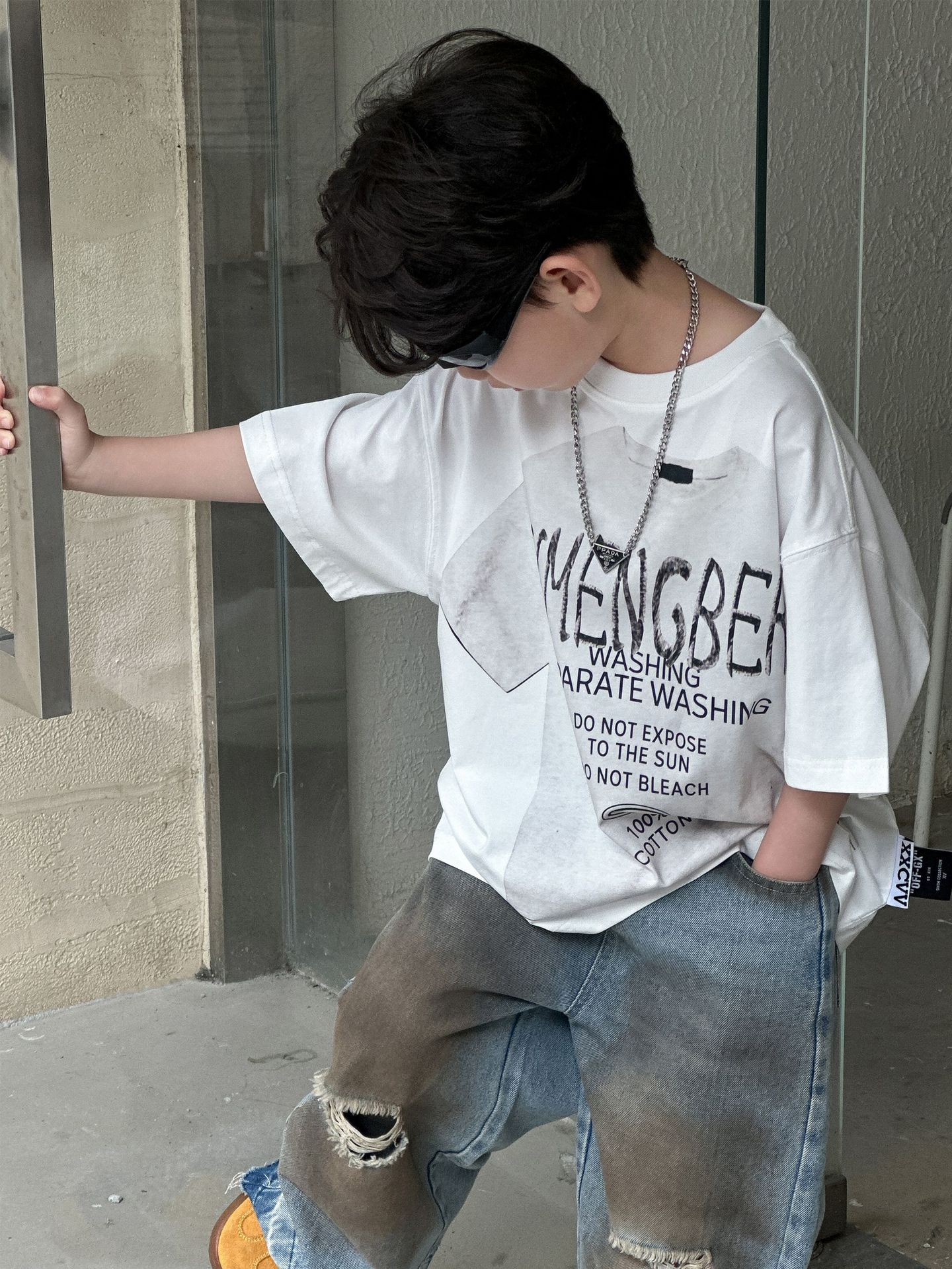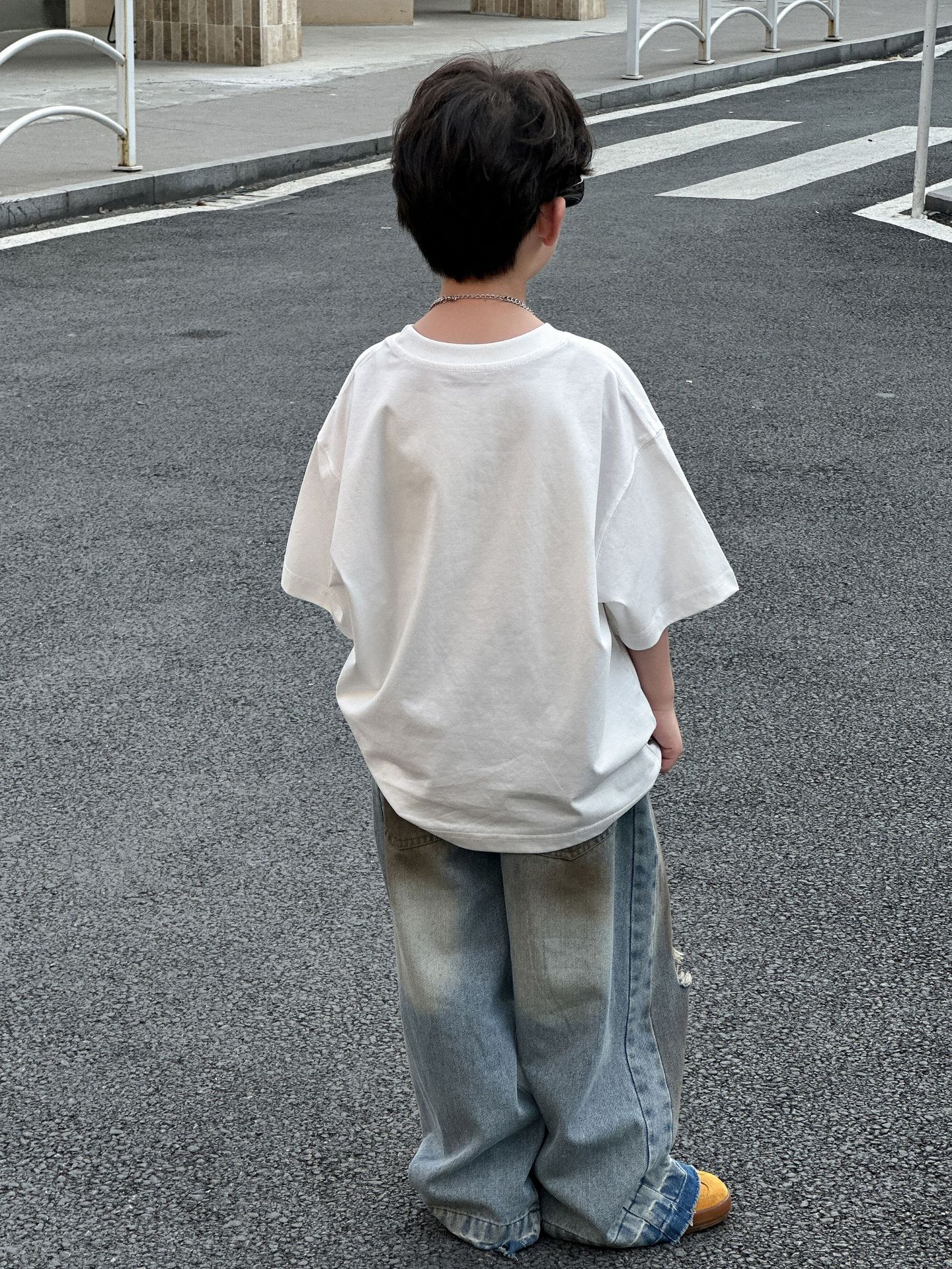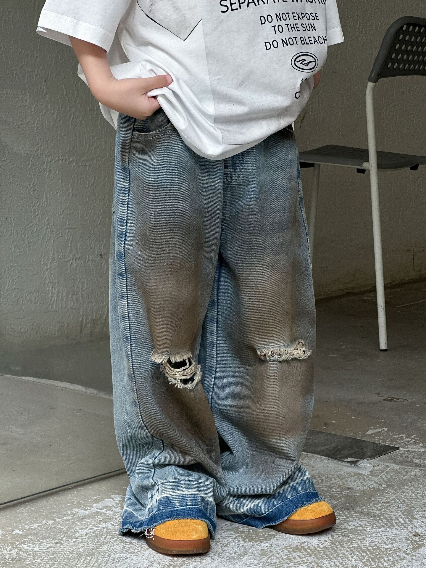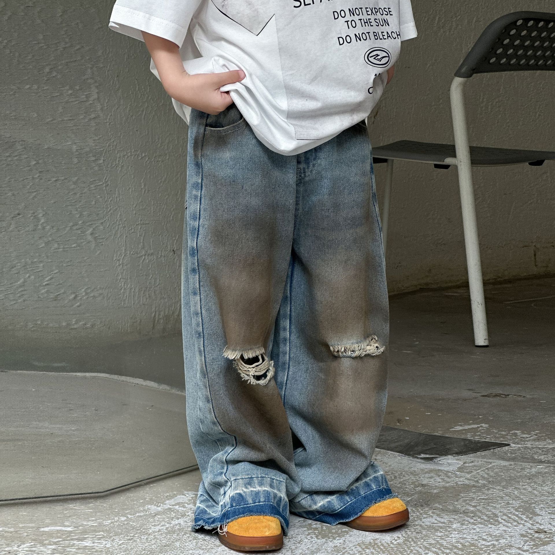 아동복 소년 한국 청바지 2025 봄 신작 아동용 루즈 와이드 팬츠 중소형 소년 스트레이트 팬츠