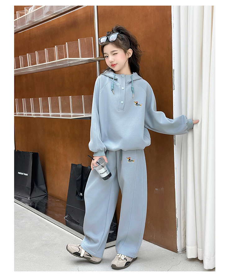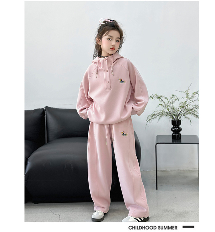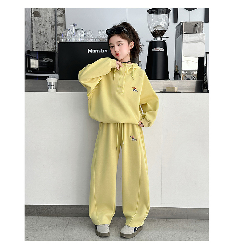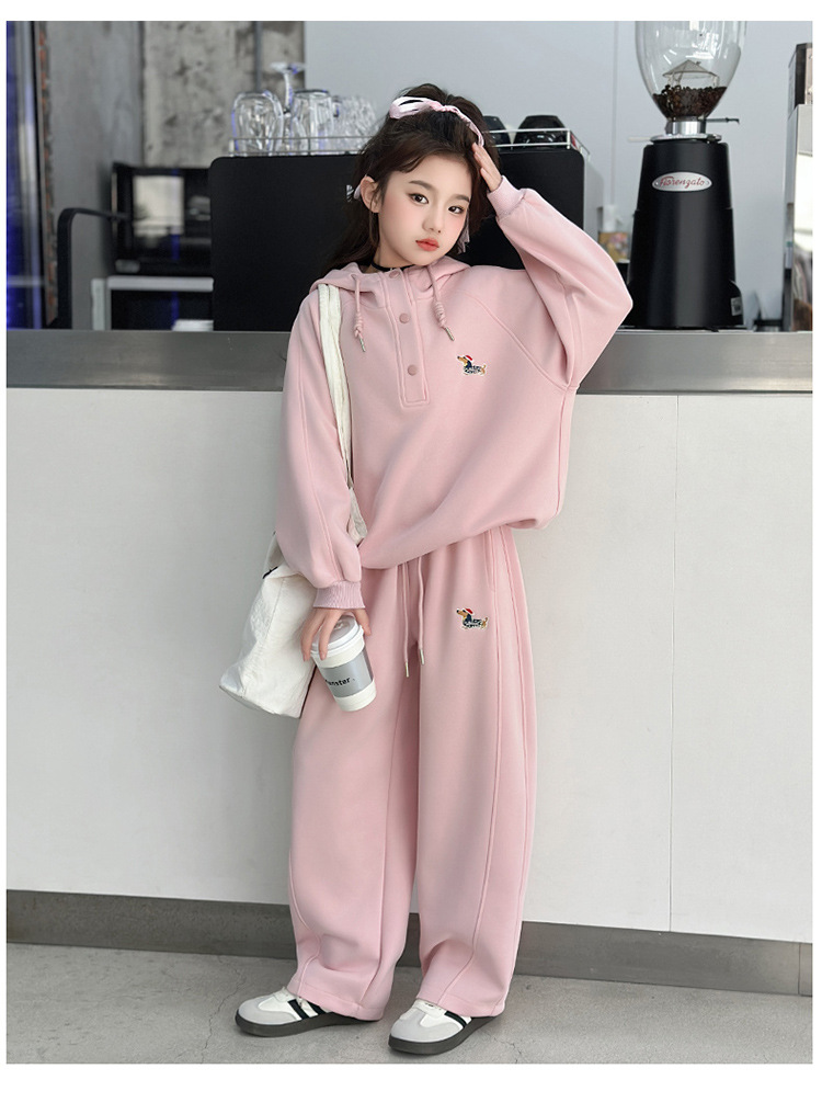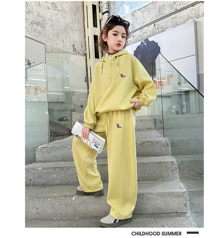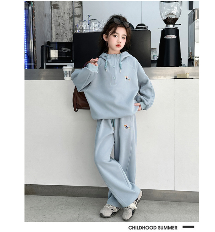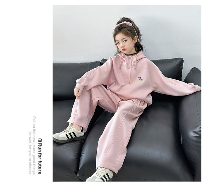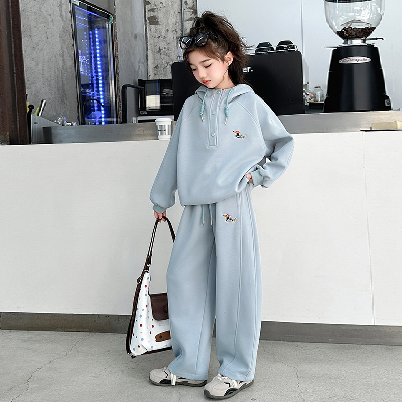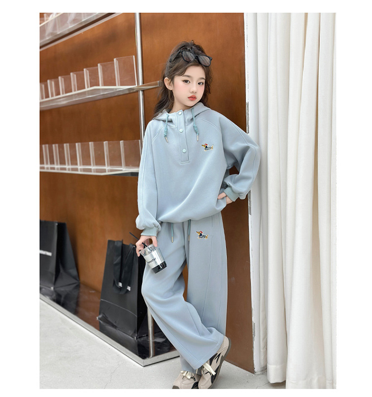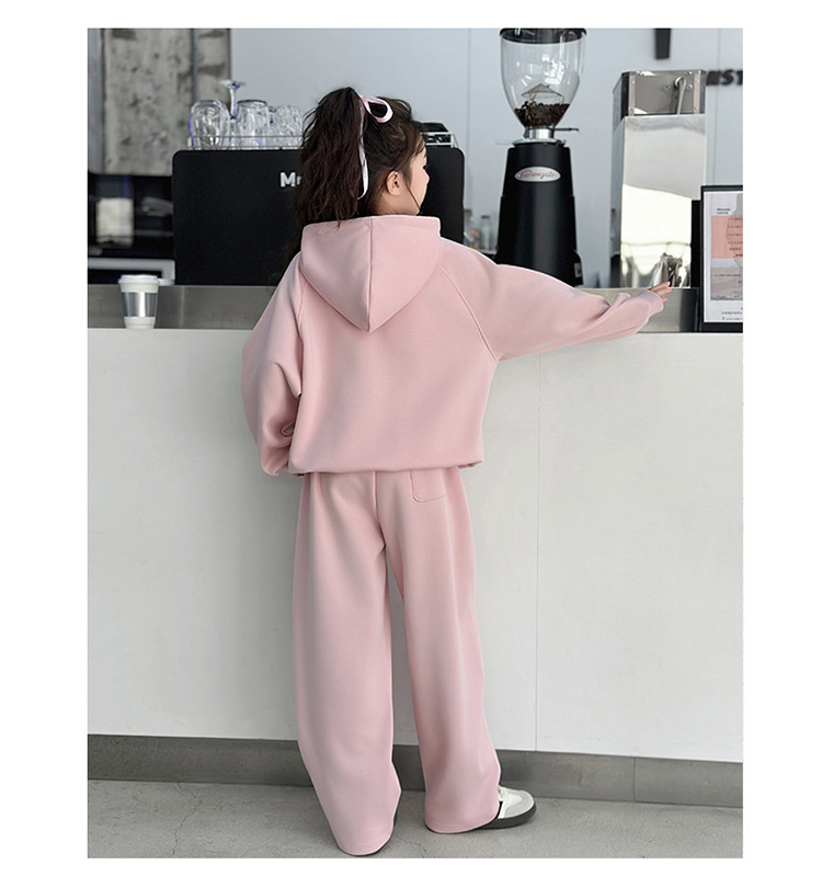 소녀의 봄 가을 세트 2025 새로운 한국 중학생 후드 스웨터 캐주얼 스포츠 와이드 다리 바지 투피스 세트스토어 가기