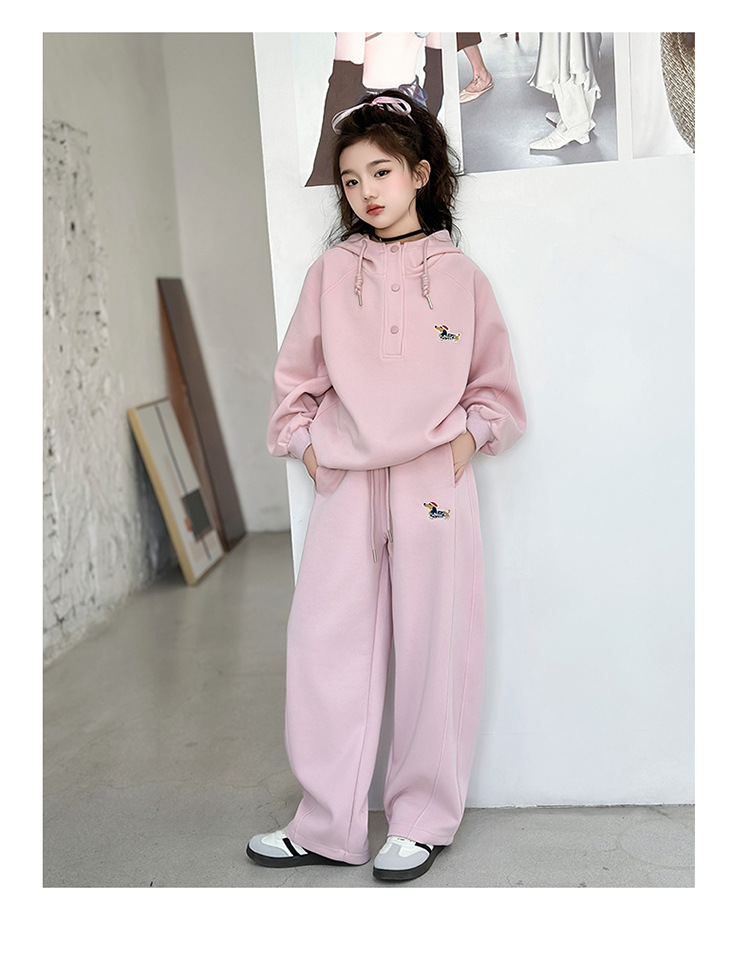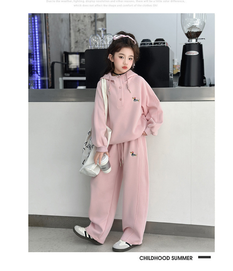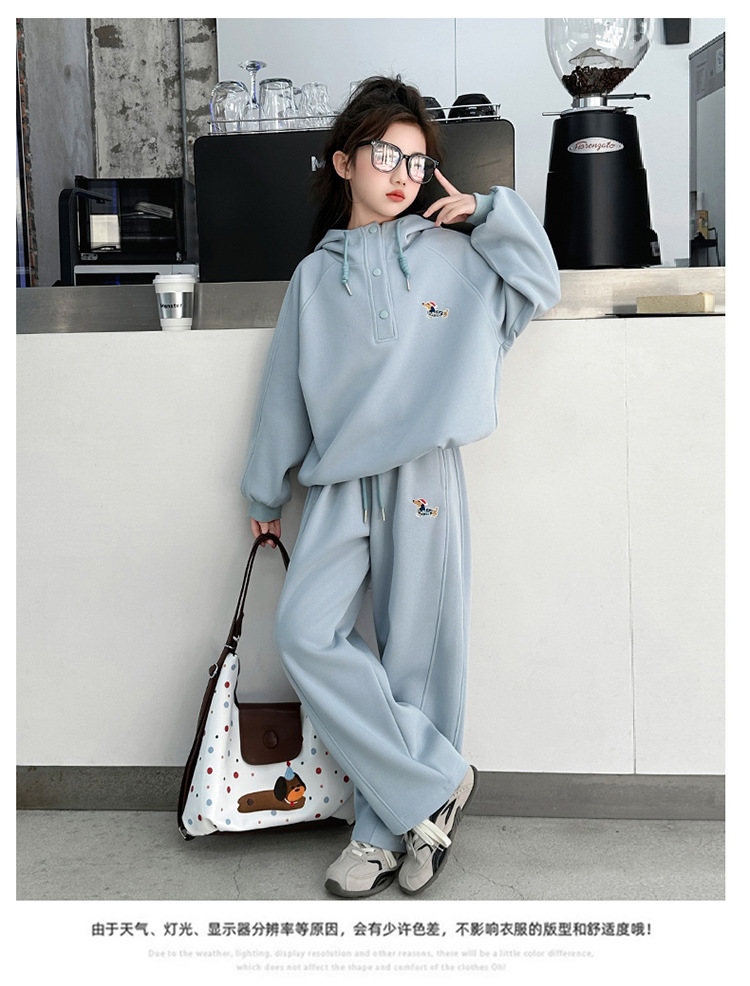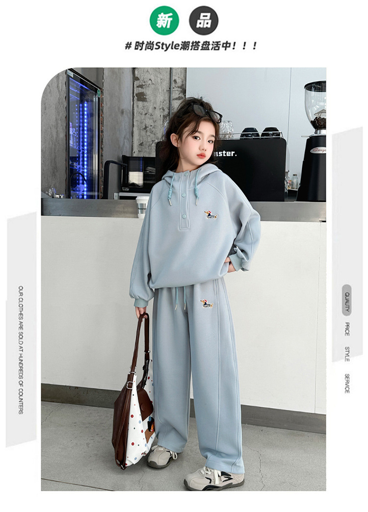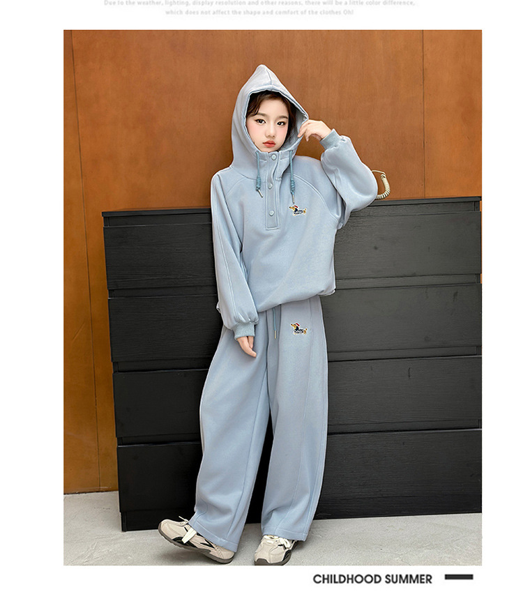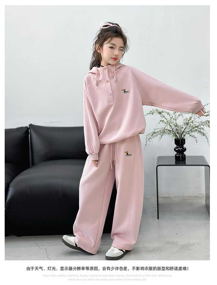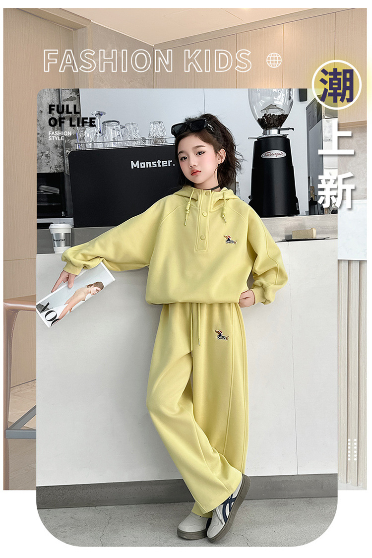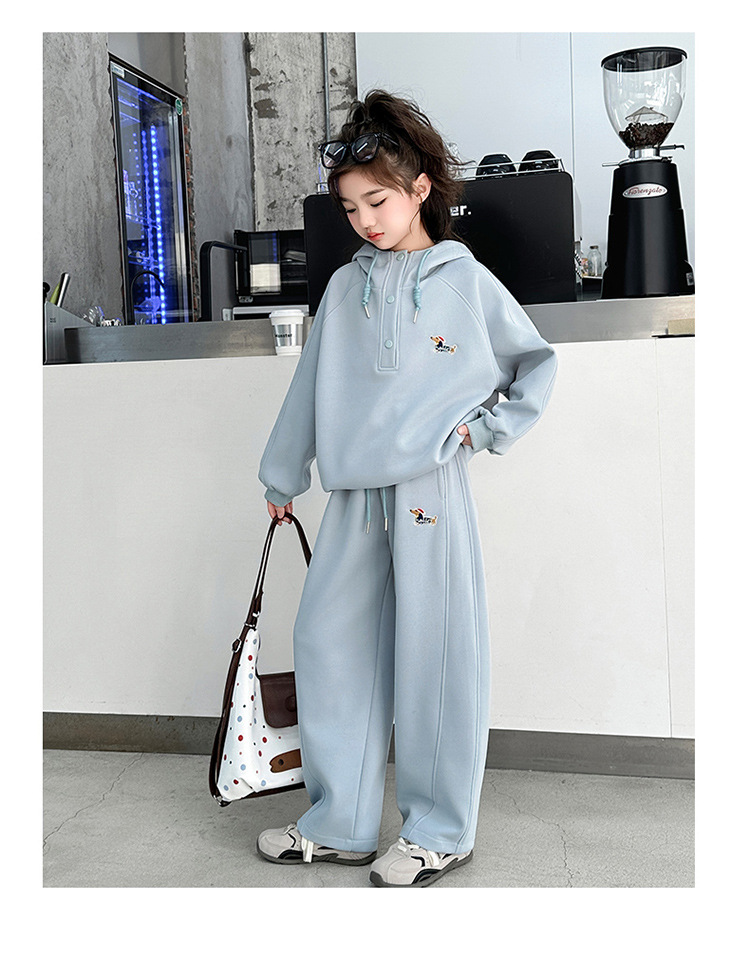 소녀의 봄 가을 세트 2025 새로운 한국 중학생 후드 스웨터 캐주얼 스포츠 와이드 다리 바지 투피스 세트스토어 가기