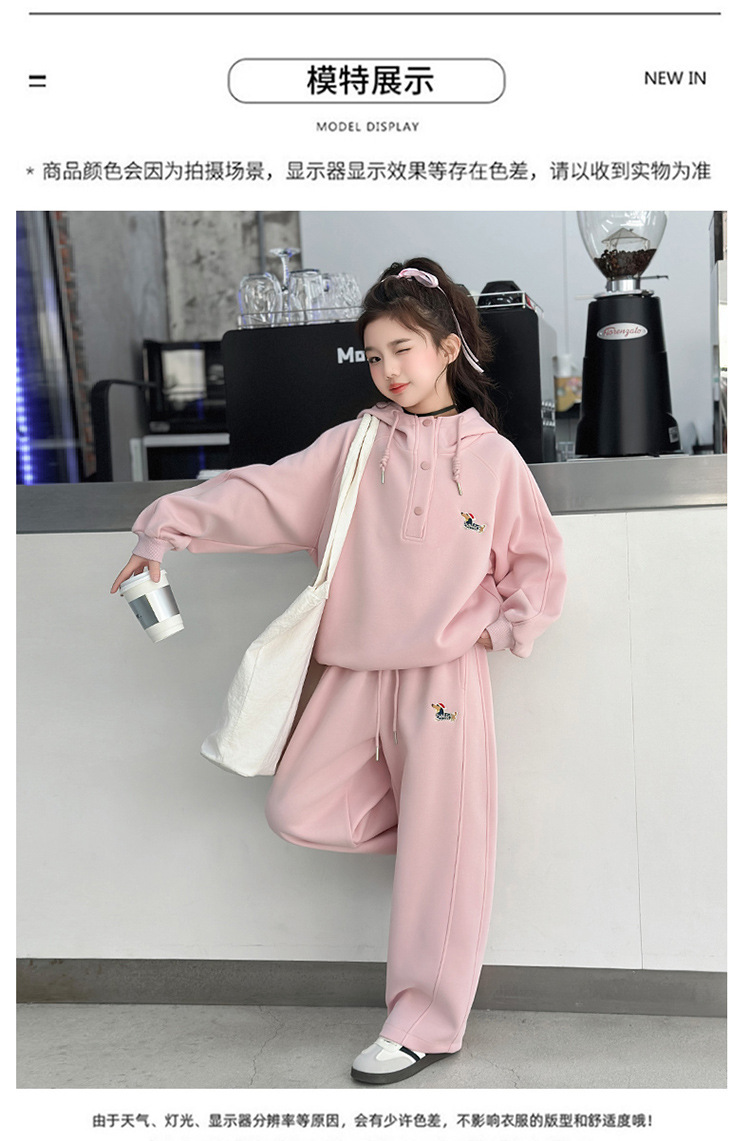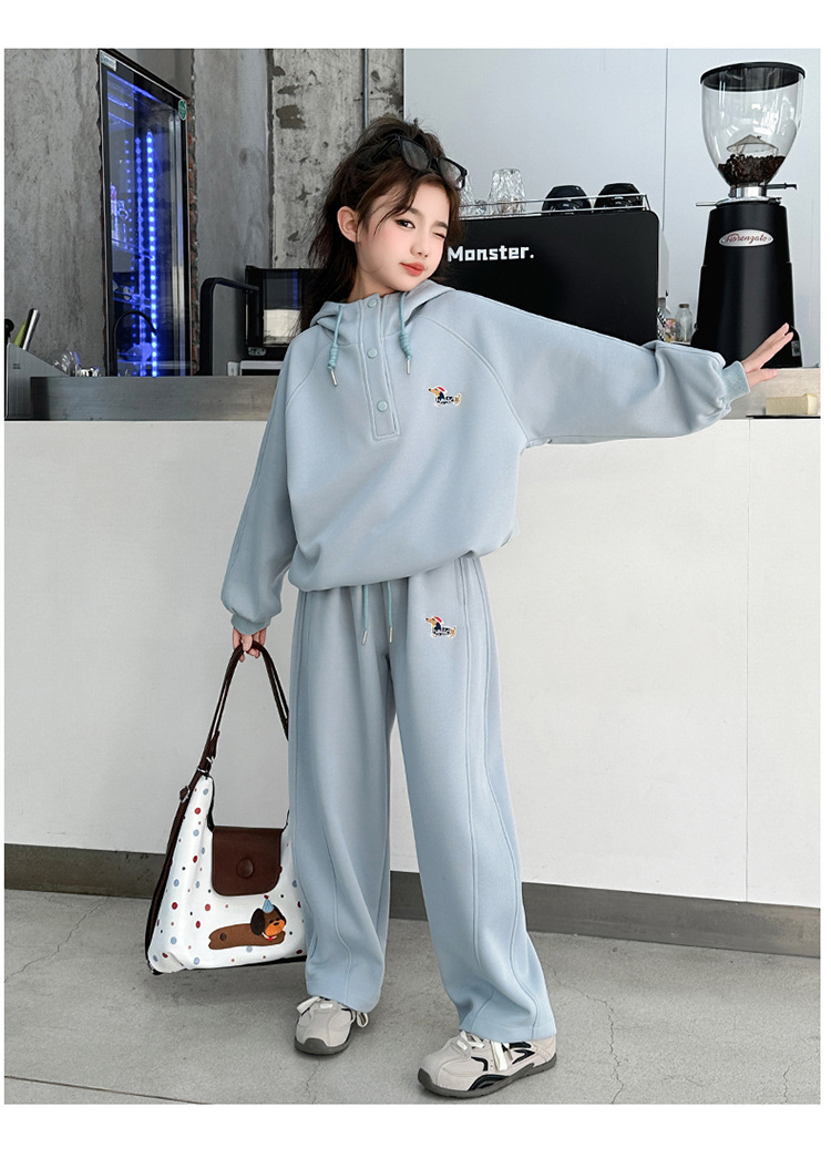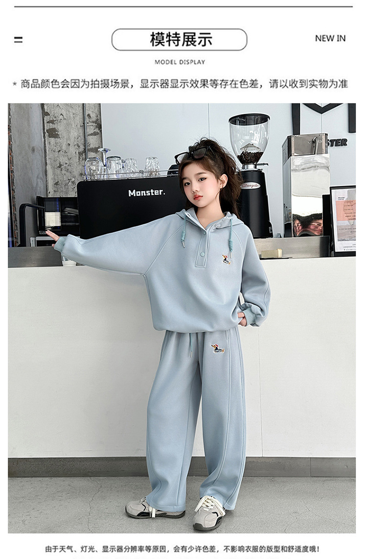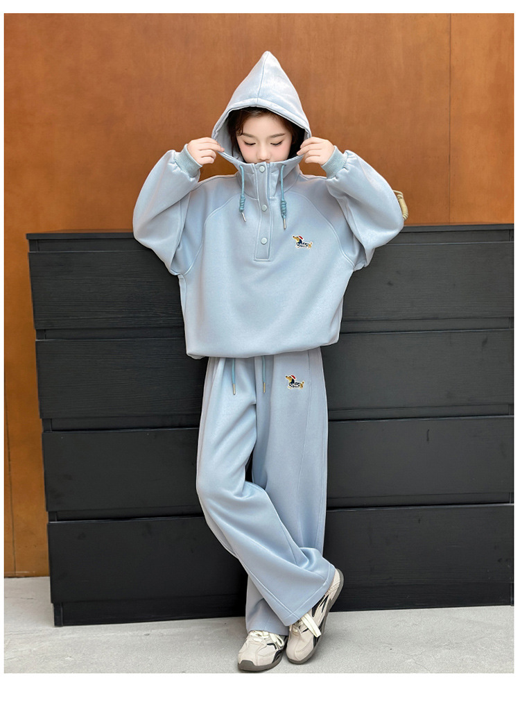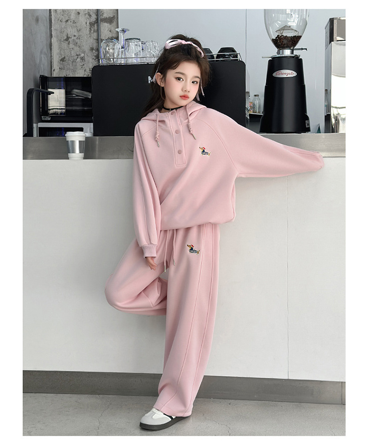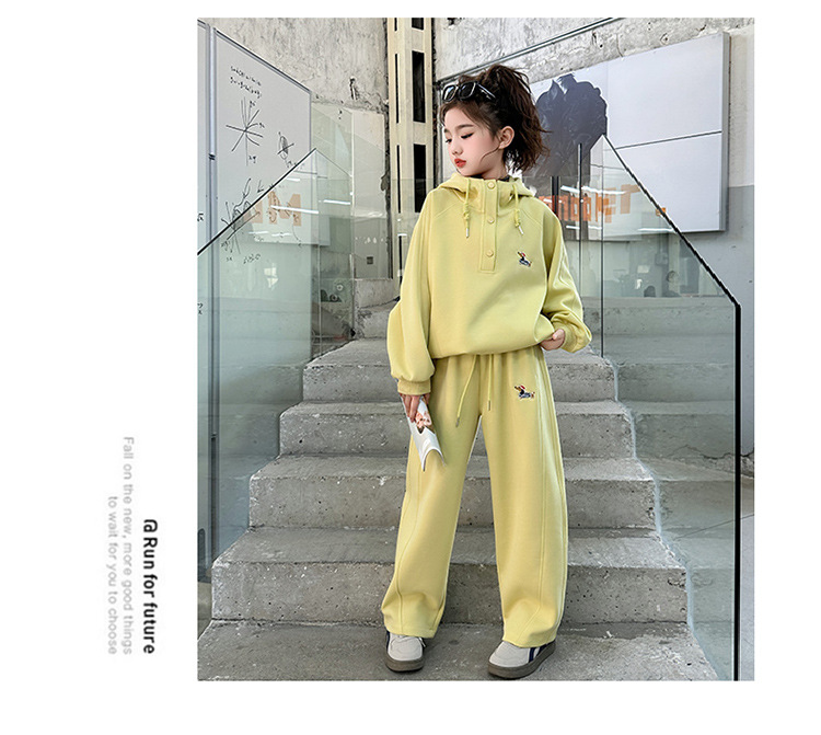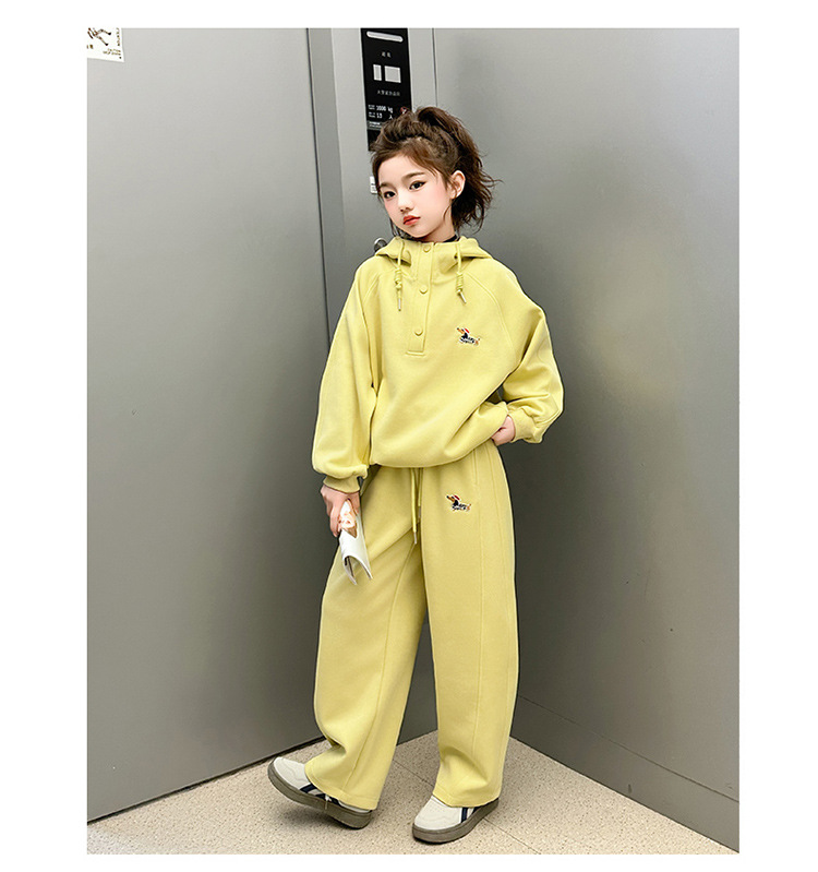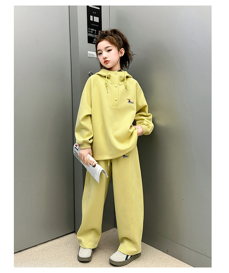소녀의 봄 가을 세트 2025 새로운 한국 중학생 후드 스웨터 캐주얼 스포츠 와이드 다리 바지 투피스 세트스토어 가기
