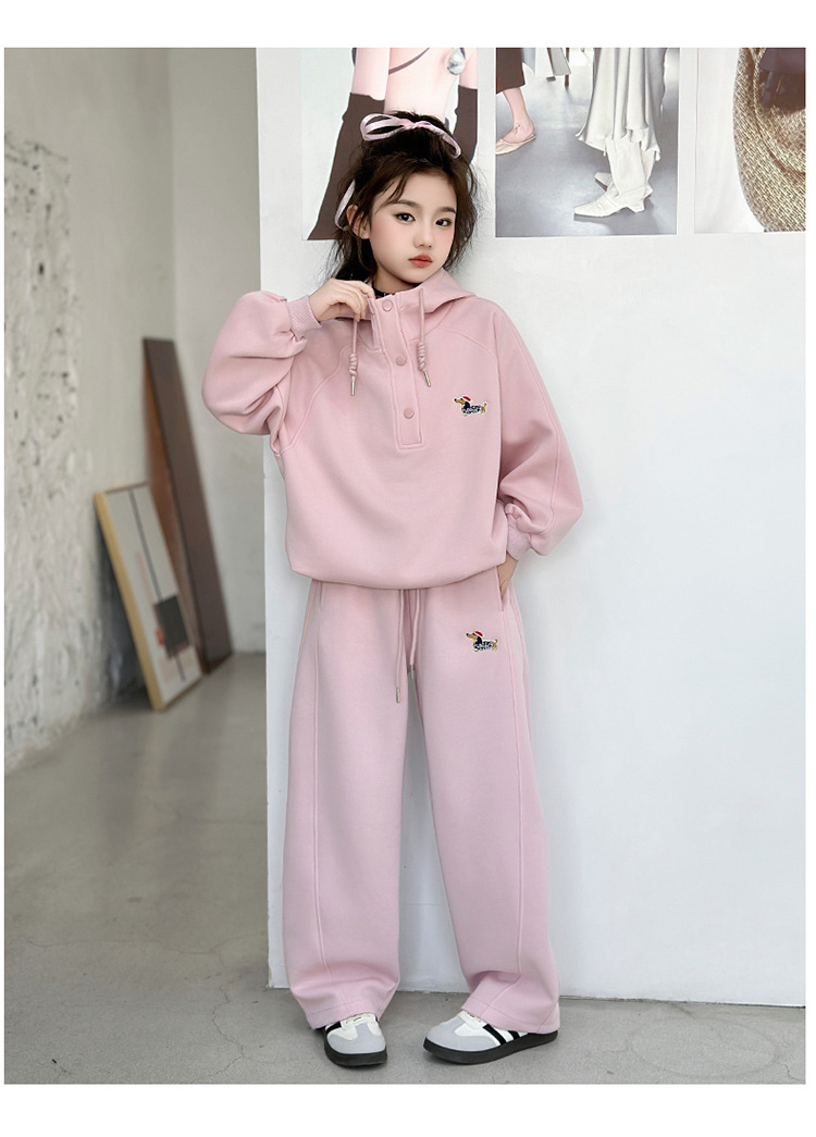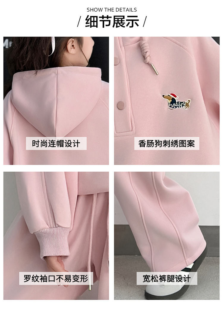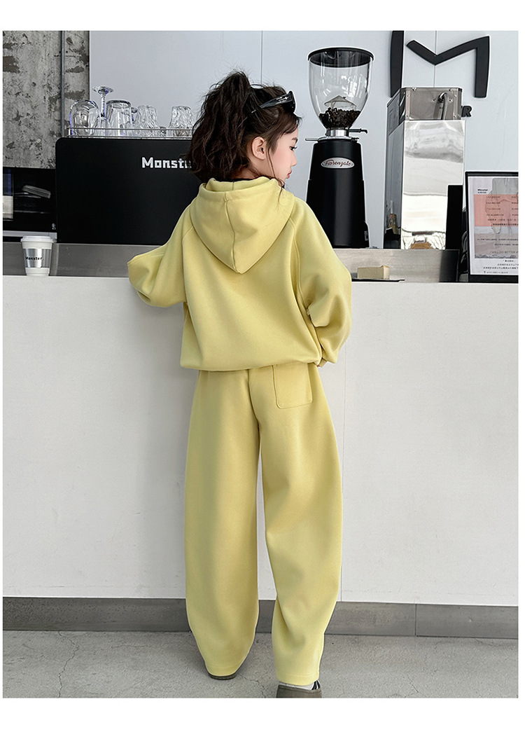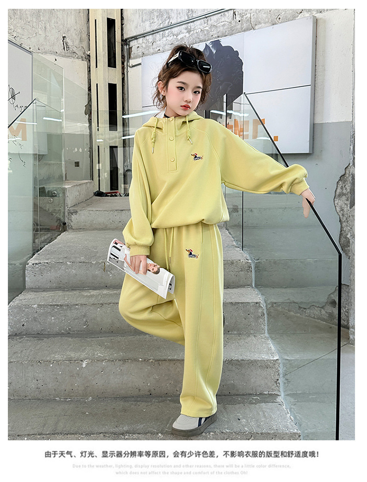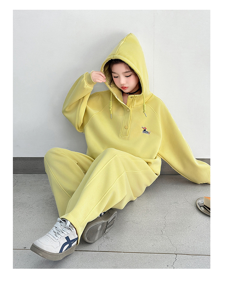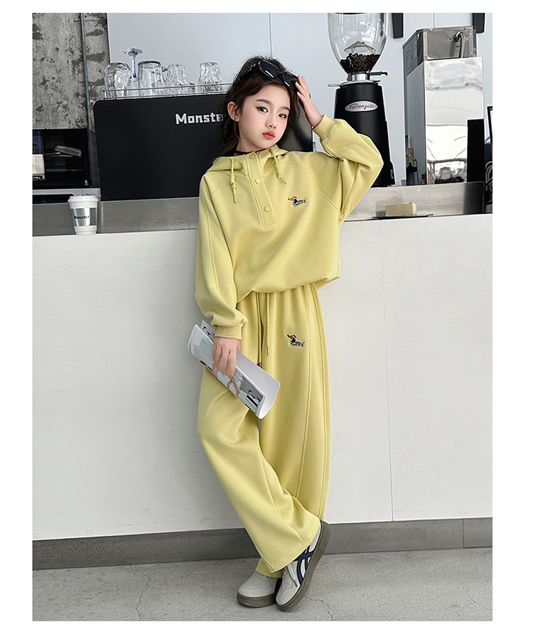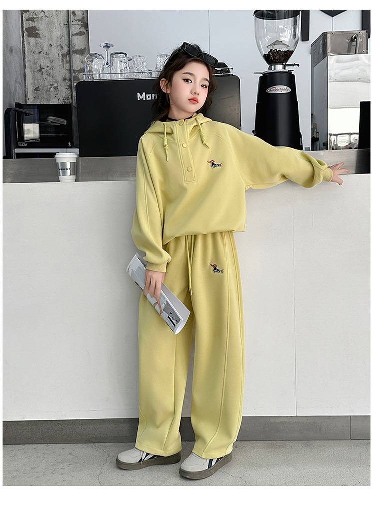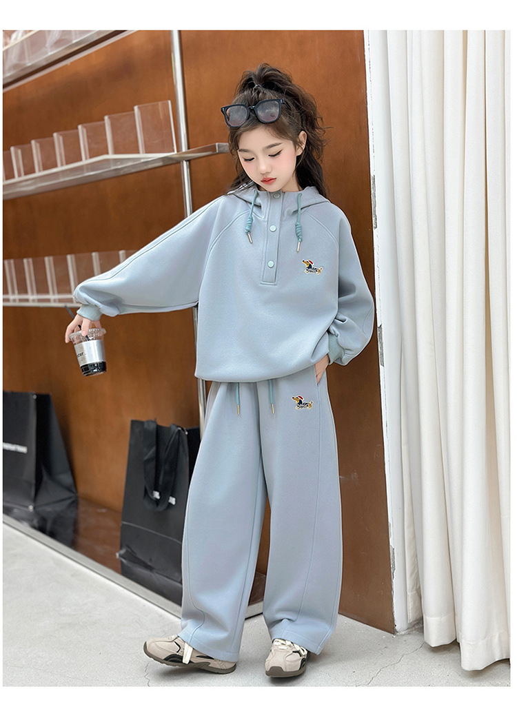 소녀의 봄 가을 세트 2025 새로운 한국 중학생 후드 스웨터 캐주얼 스포츠 와이드 다리 바지 투피스 세트스토어 가기