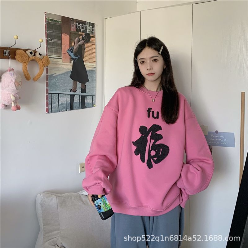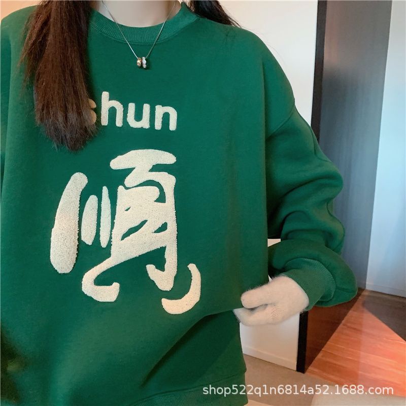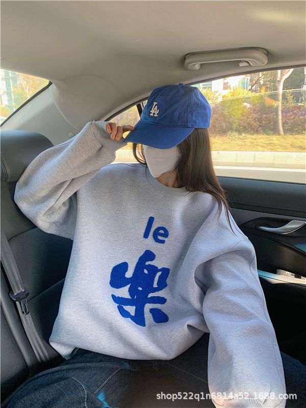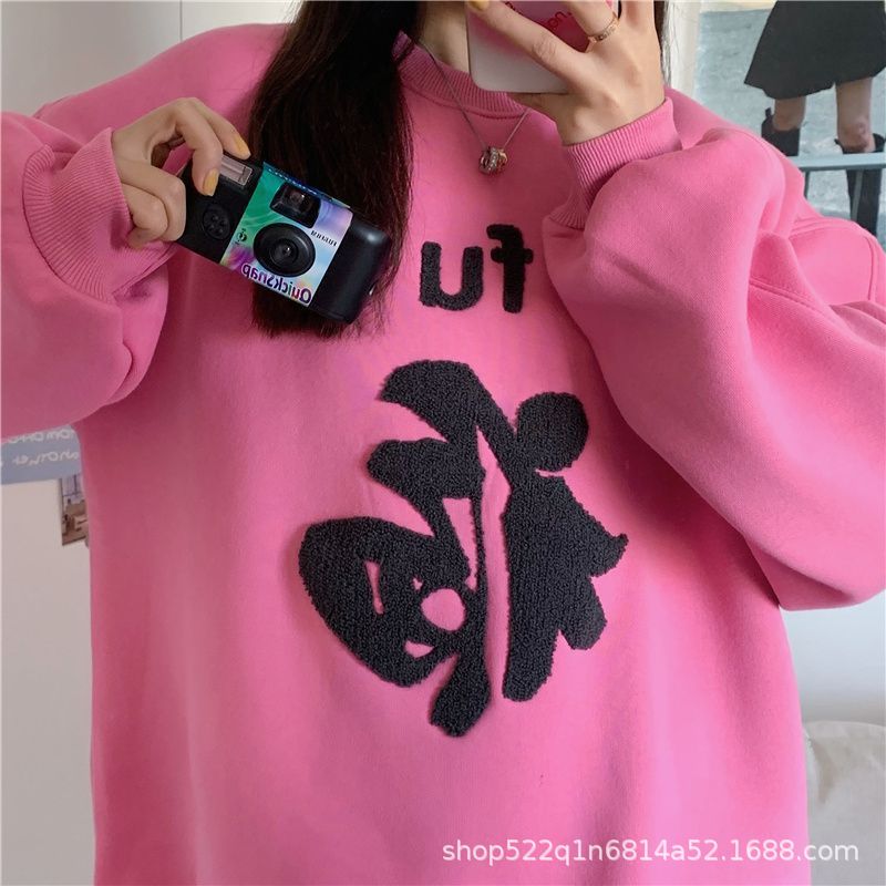 복합 실버 여우 벨벳 패션 디자인 감각 수건 자수 커플 가족 사진 여자 친구 새해 느슨한 스웨터 여성 도매스토어 가기
