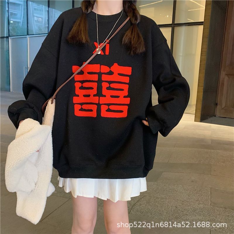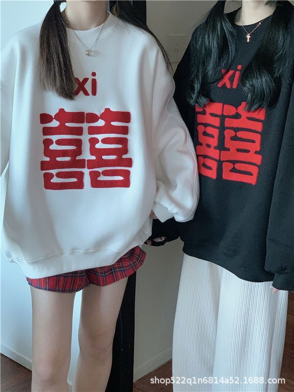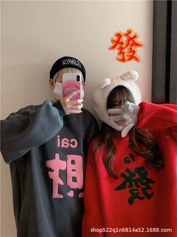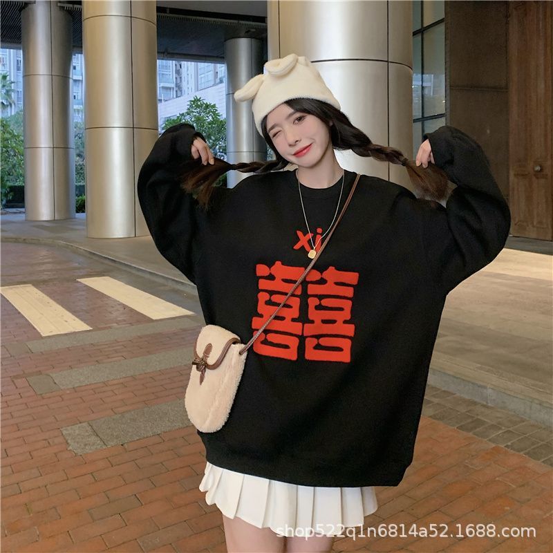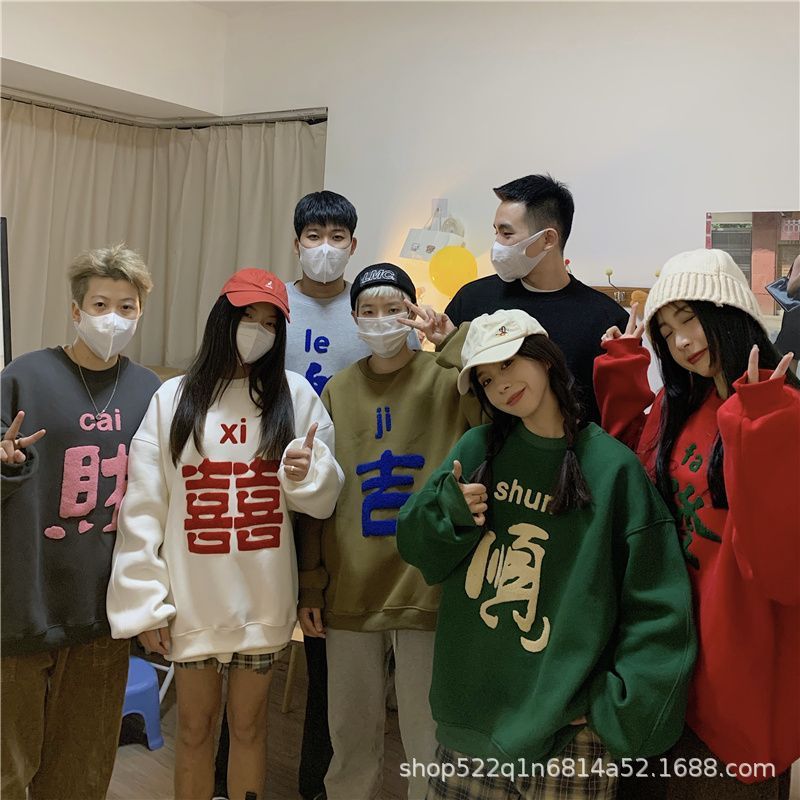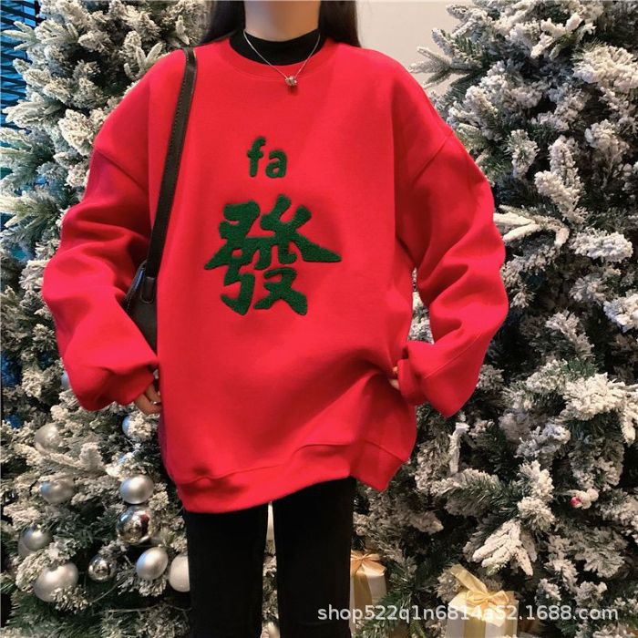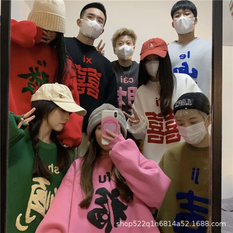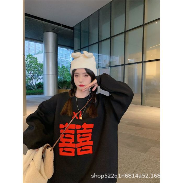 복합 실버 여우 벨벳 패션 디자인 감각 수건 자수 커플 가족 사진 여자 친구 새해 느슨한 스웨터 여성 도매