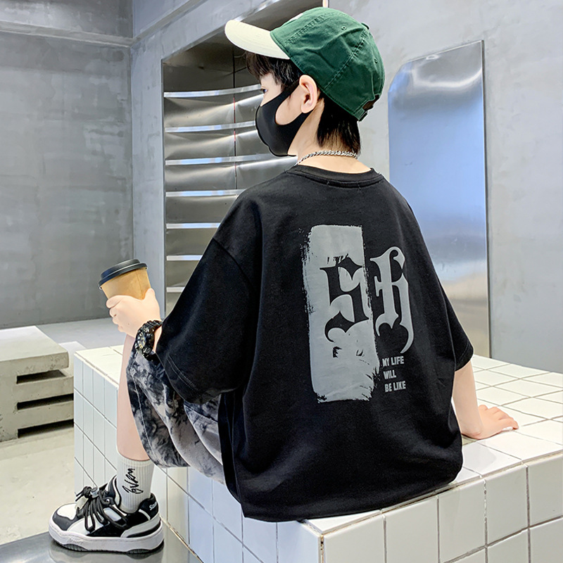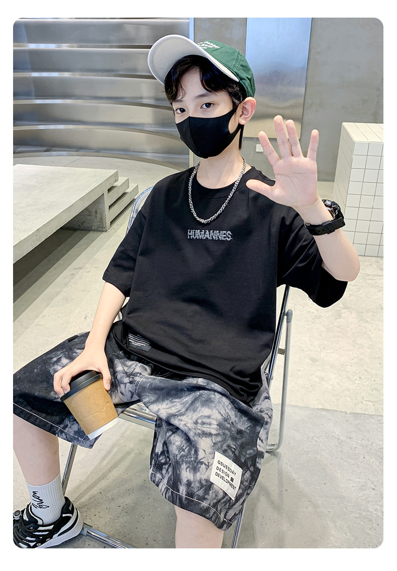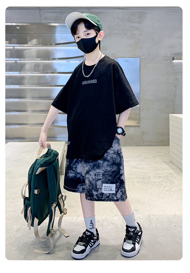 어린이 여름 세트 2025 새로운 소년 트렌디 쿨 캐주얼 어린이 인쇄 반팔 넥타이 염색 반바지 투피스 세트
