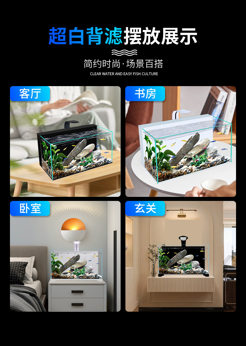 Yut 백 필터 건조하고 습식 분리 백 플레이트 유리 생태 조경 통합 슈퍼 화이트 어항]]