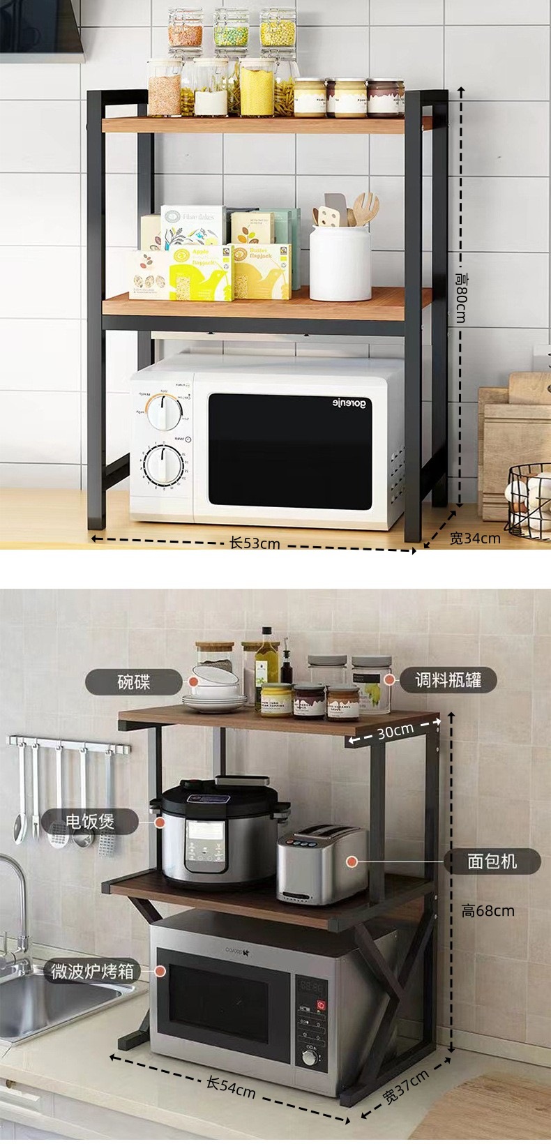 주방 전자레인지 수납 선반 조리대 정리 수납 선반 다층 오븐 양념통 밥솥 수납 선반