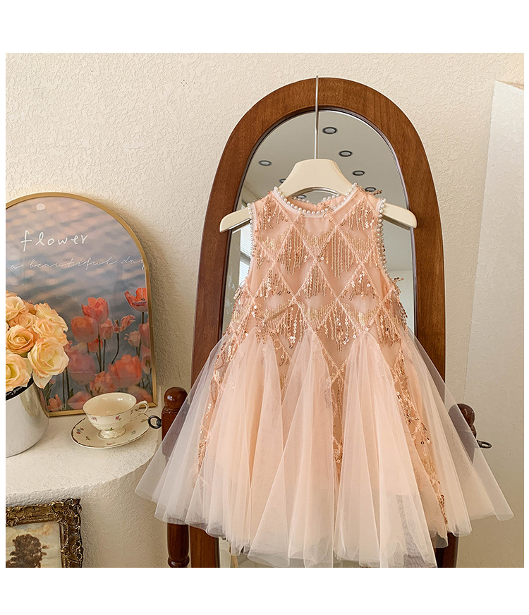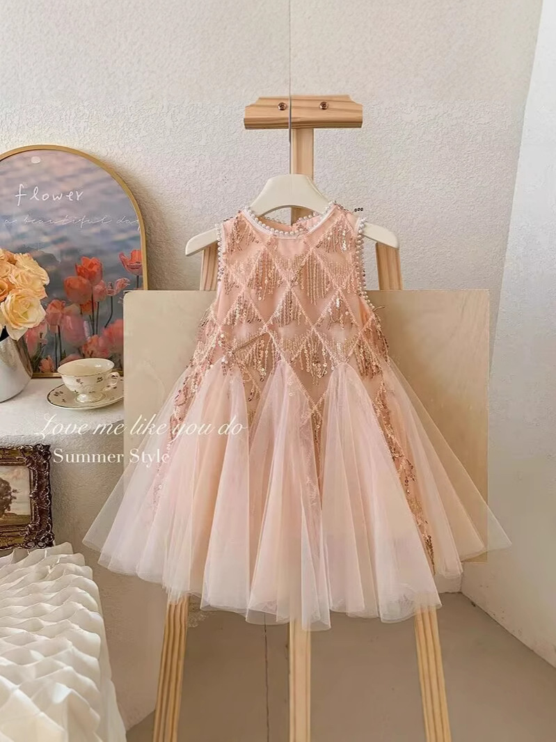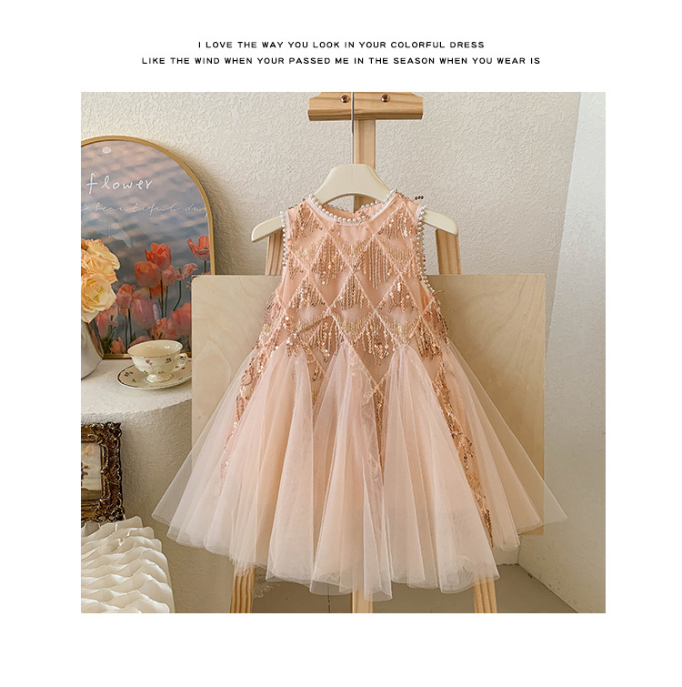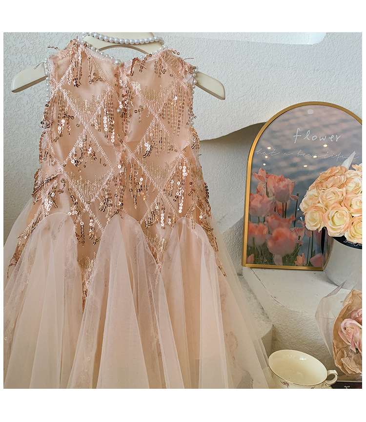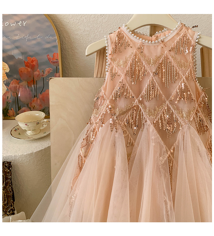 여자 원피스 2025 여름 새 소녀 스퀸 비즈 Vise 원피스 원피스 우아한 민소매 공주 원피스스토어 가기