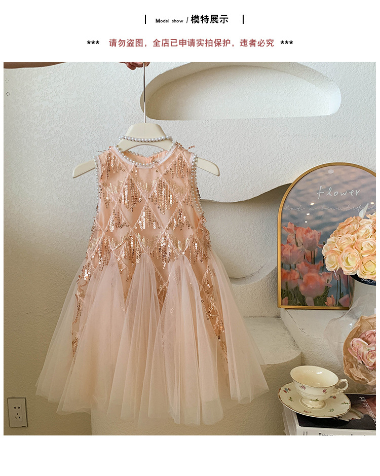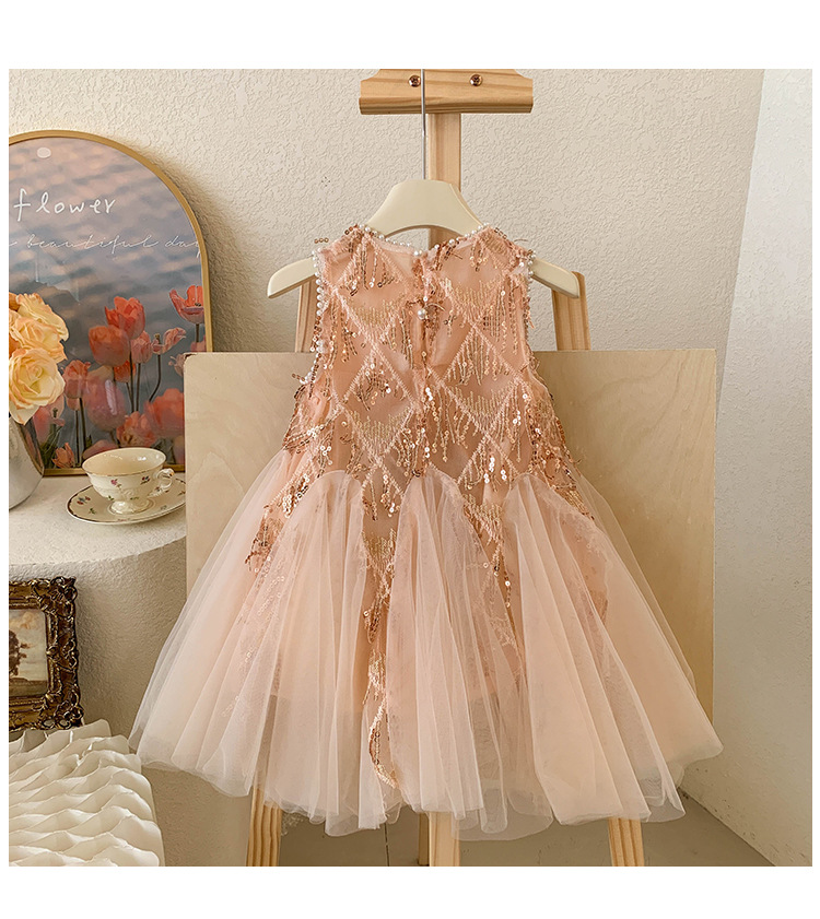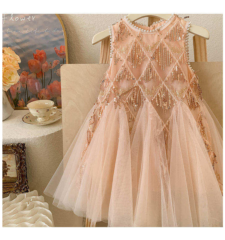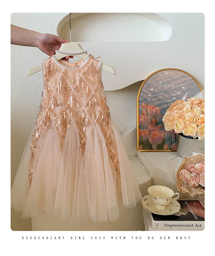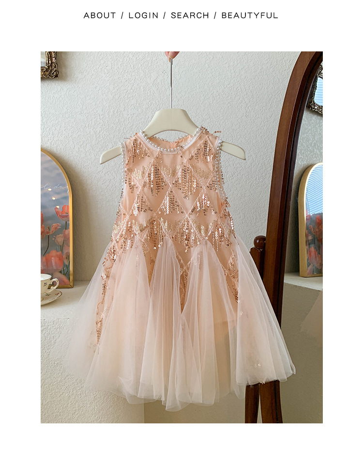 여자 원피스 2025 여름 새 소녀 스퀸 비즈 Vise 원피스 원피스 우아한 민소매 공주 원피스스토어 가기
