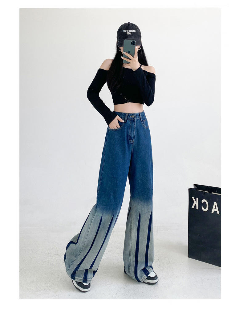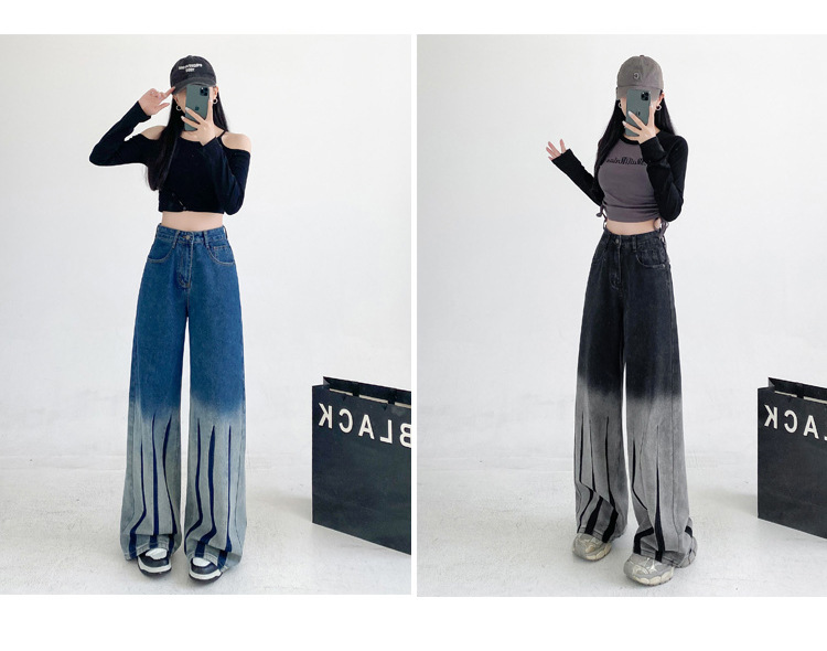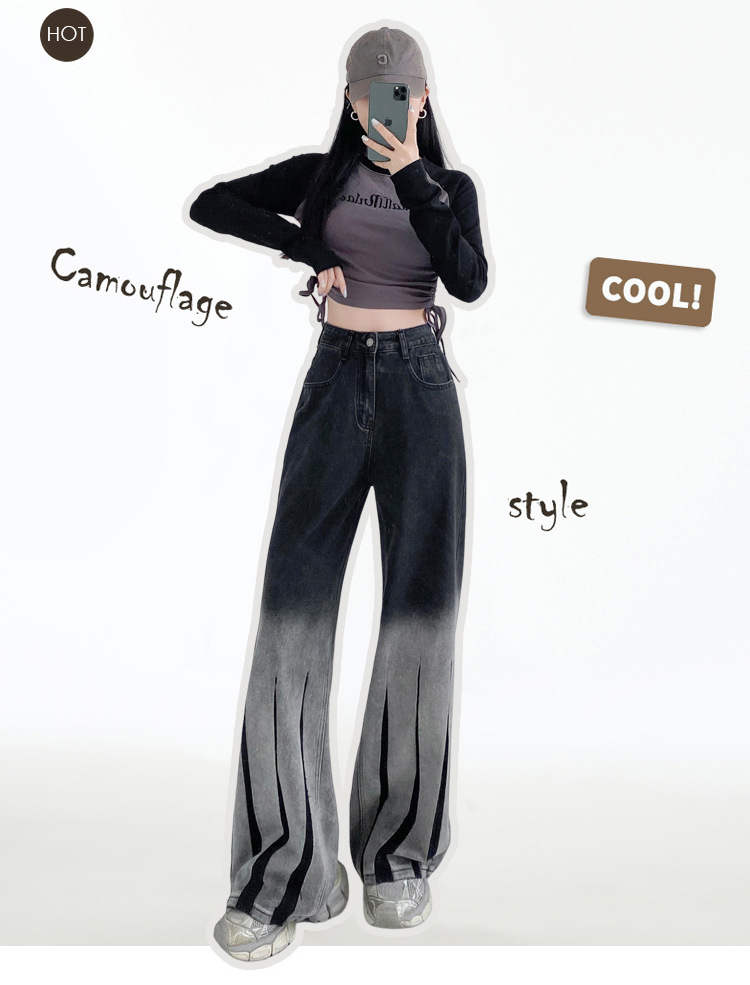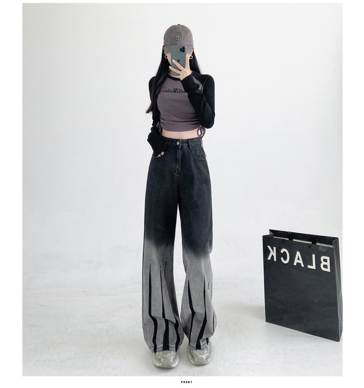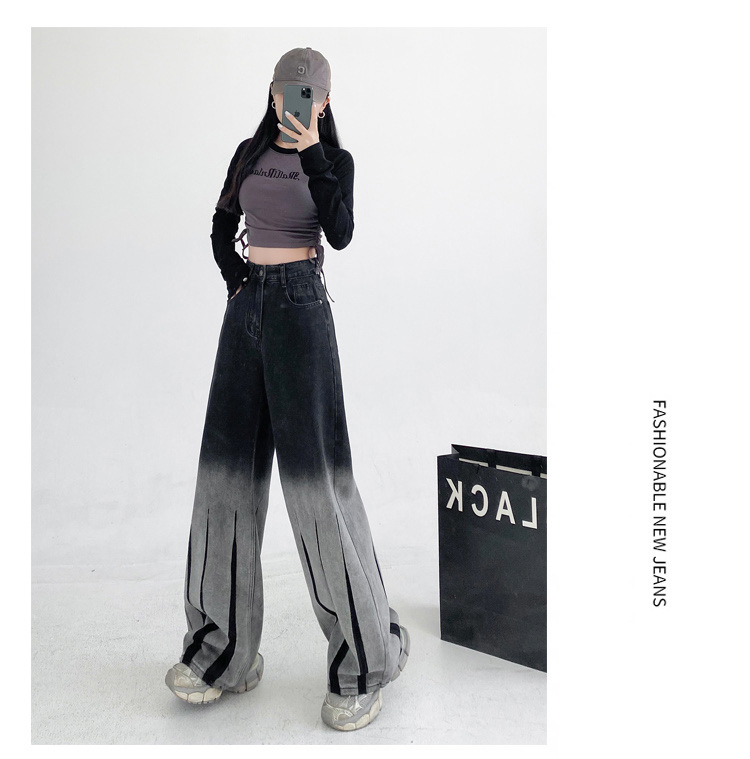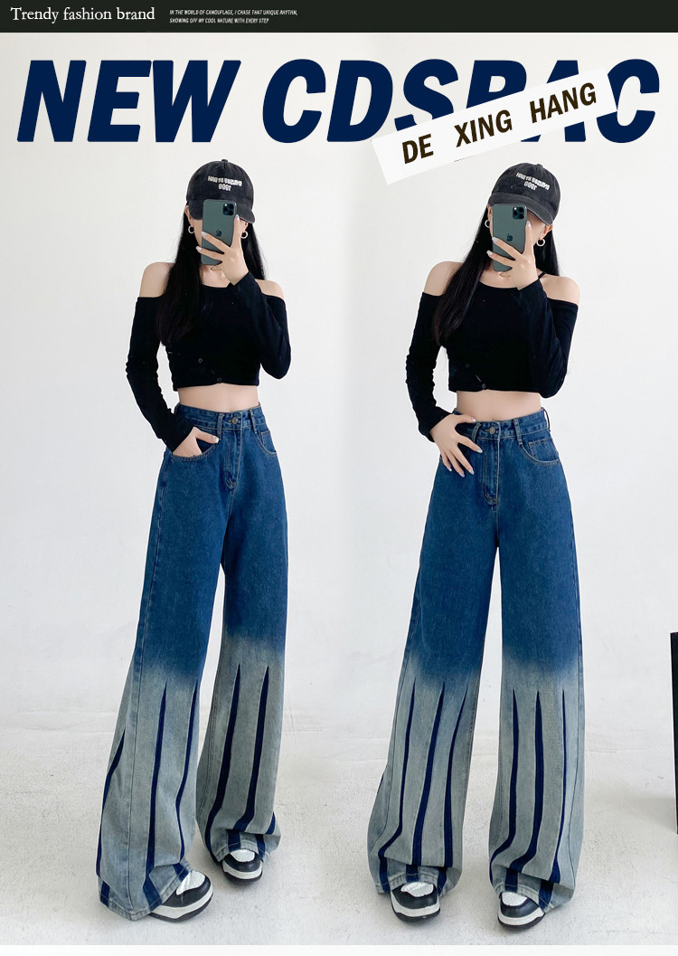 타이 다이 그라디언트 스트리트 스파이스 소녀 와이드 레그 청바지 여성의 2025 봄 디자인 센스 루즈 스트레이트 팬츠스토어 가기
