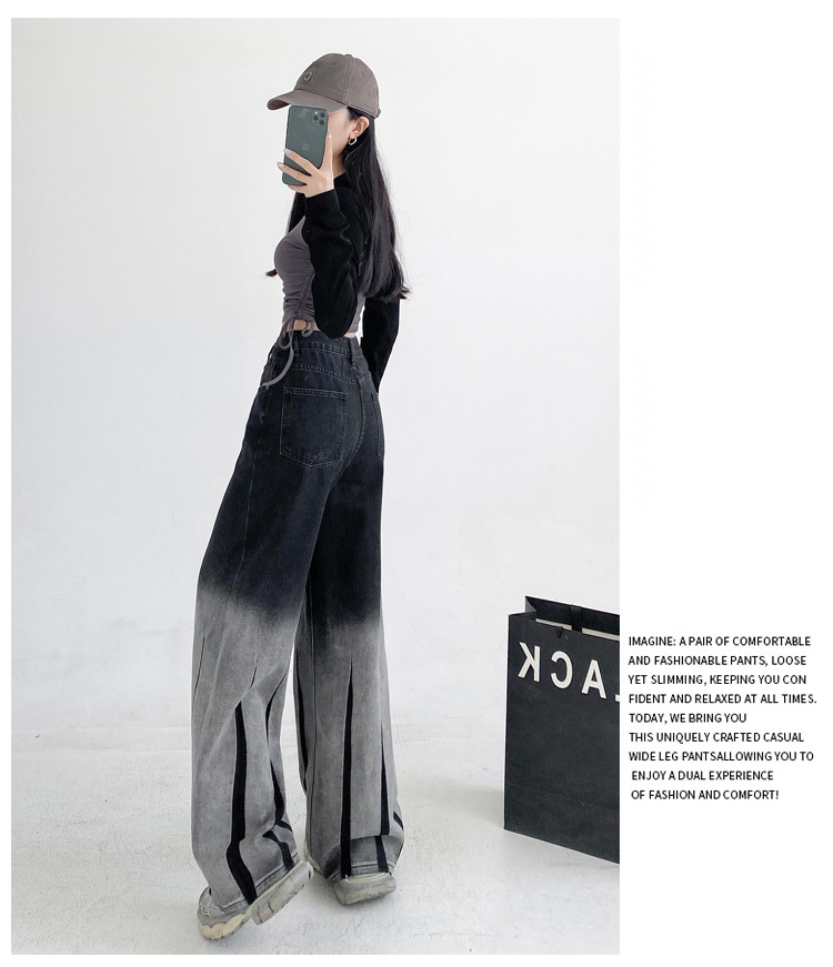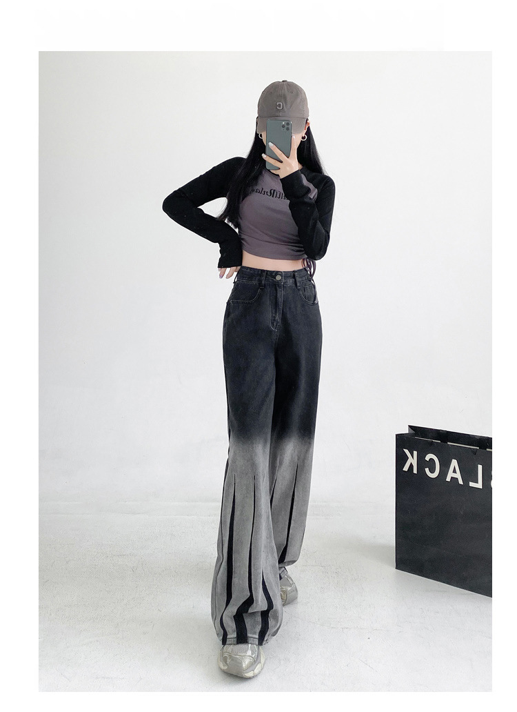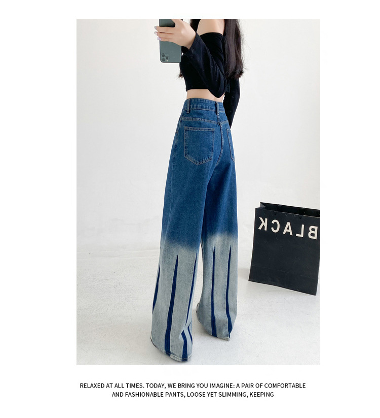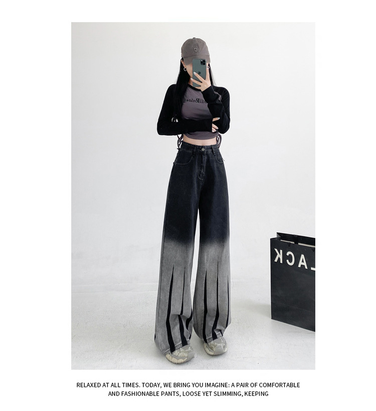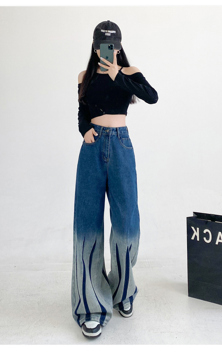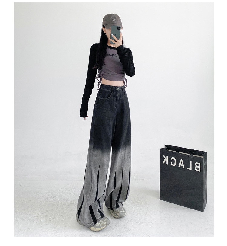 타이 다이 그라디언트 스트리트 스파이스 소녀 와이드 레그 청바지 여성의 2025 봄 디자인 센스 루즈 스트레이트 팬츠스토어 가기