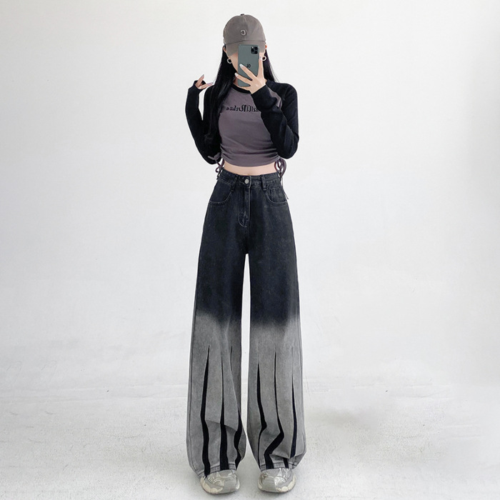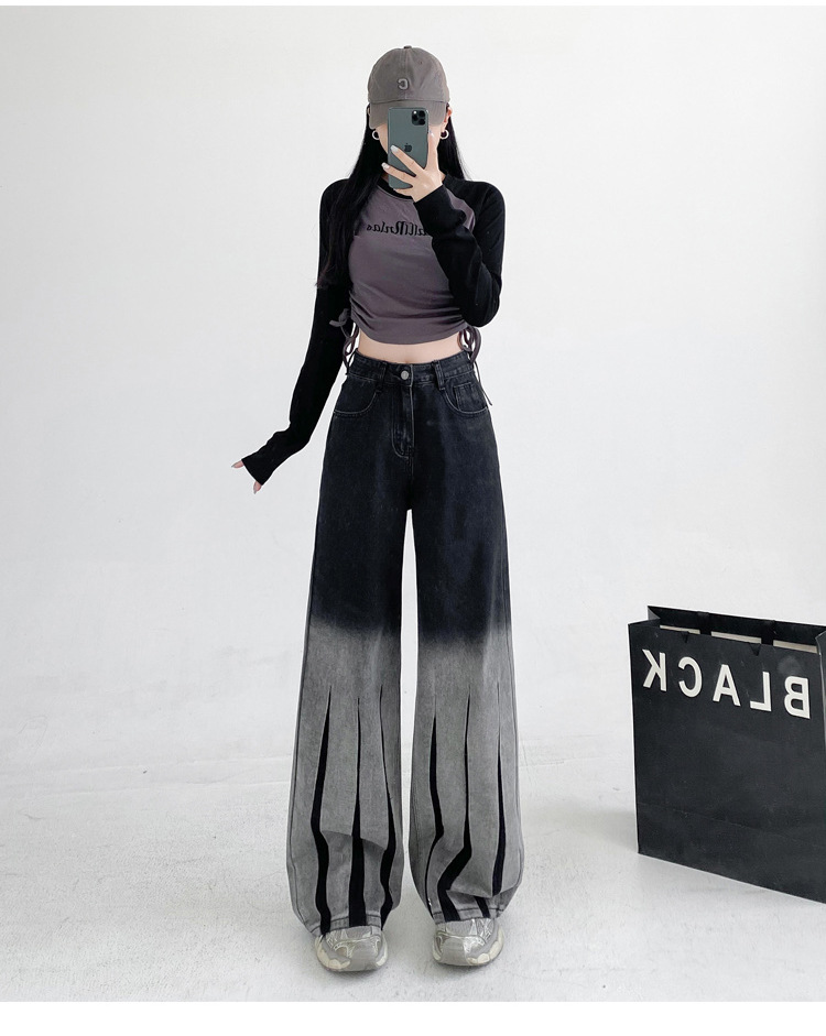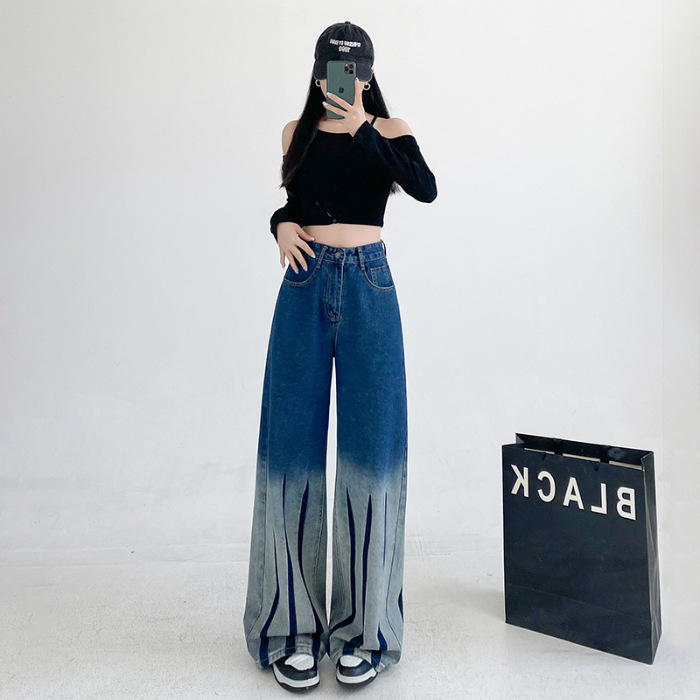 타이 다이 그라디언트 스트리트 스파이스 소녀 와이드 레그 청바지 여성의 2025 봄 디자인 센스 루즈 스트레이트 팬츠