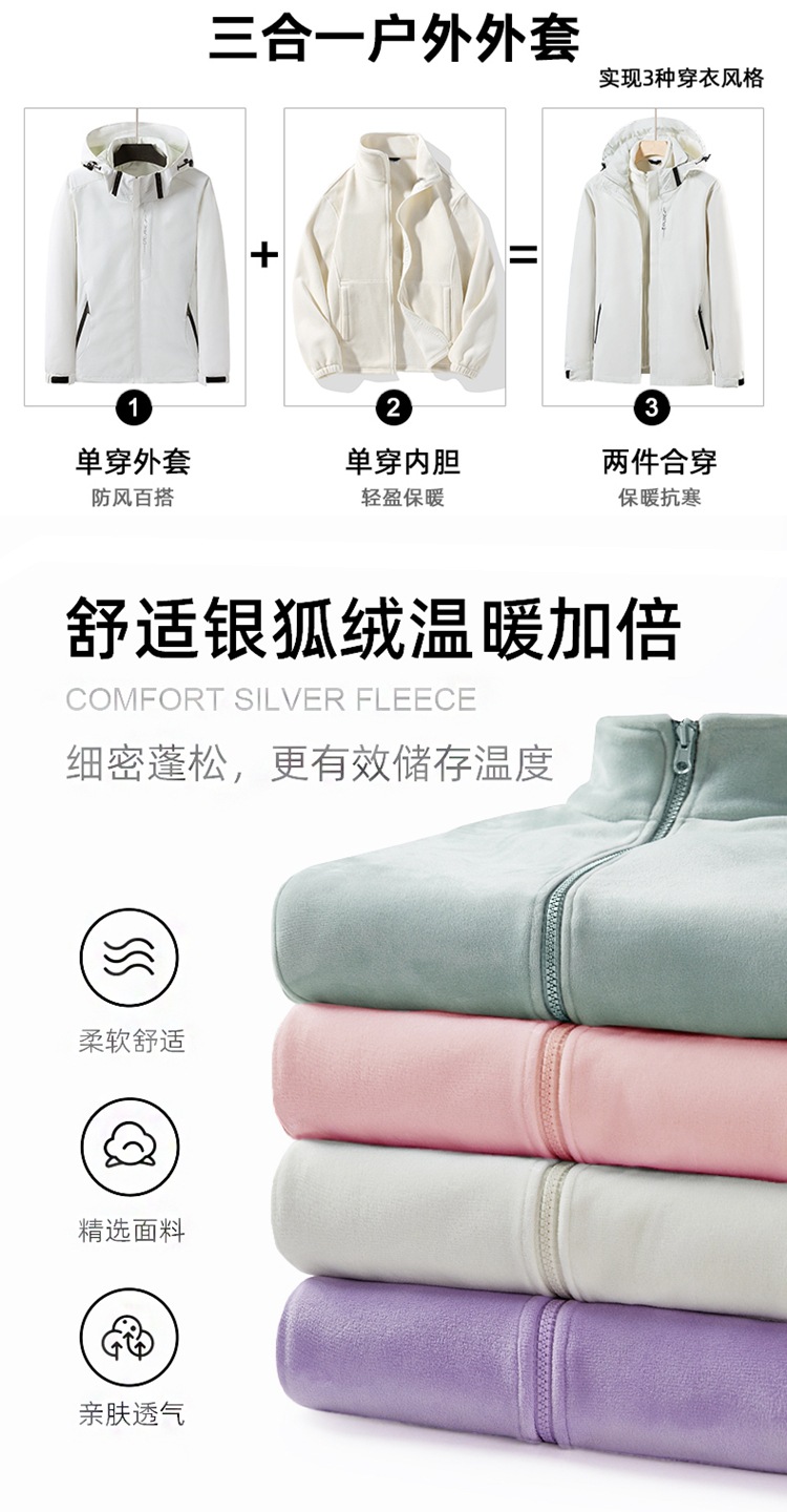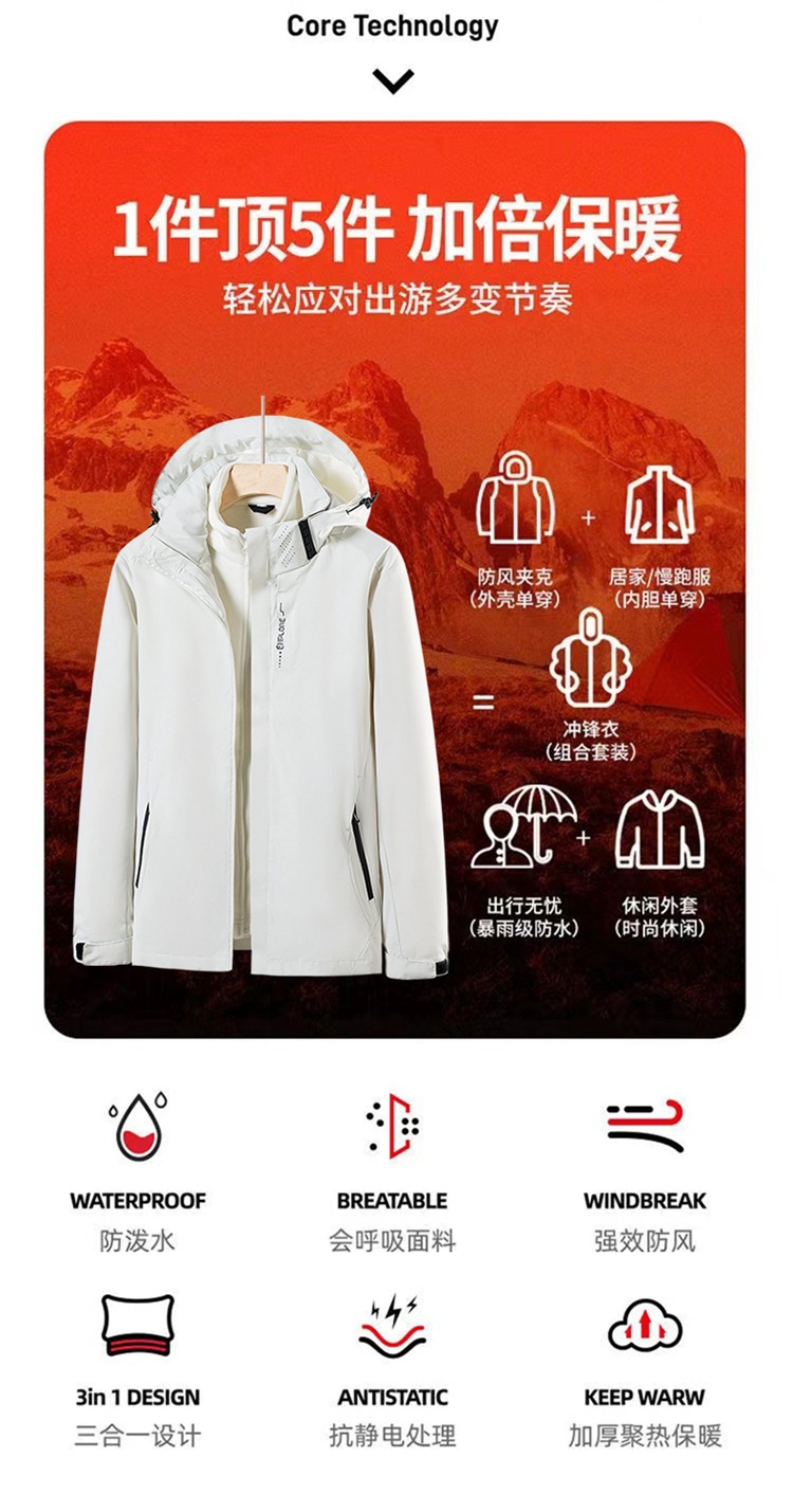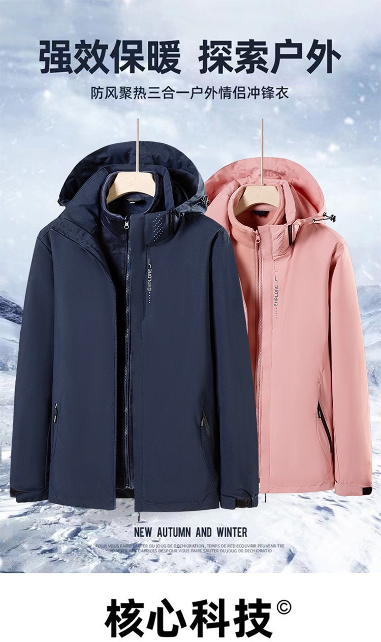 국경 간 라이브 커플 러시 재킷 남녀 가을과 겨울 3 대 1 기모 등산 재킷 코트 트렌드